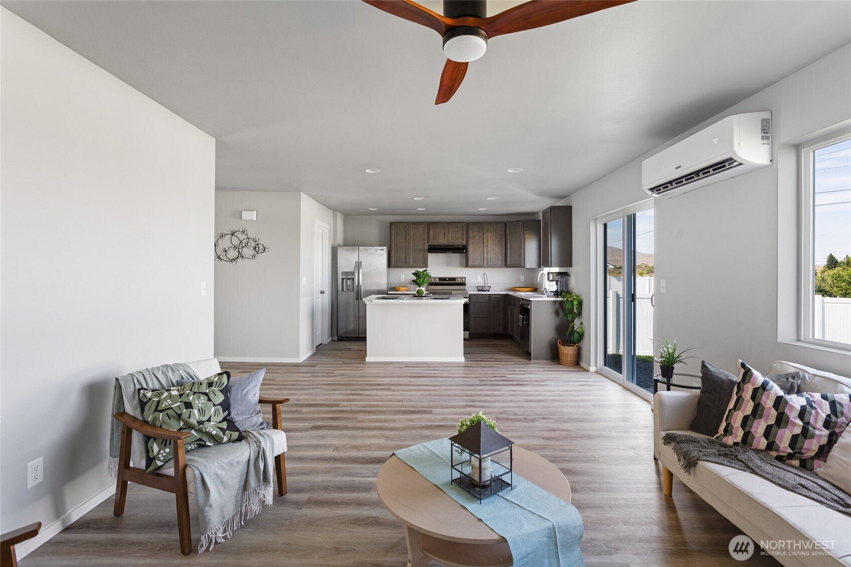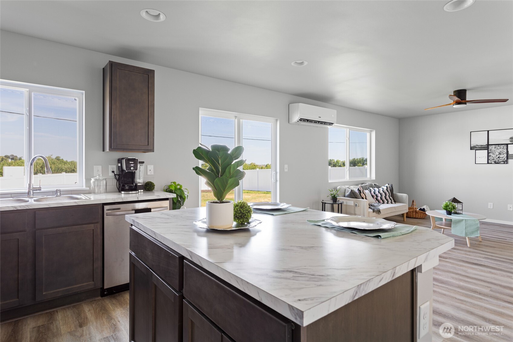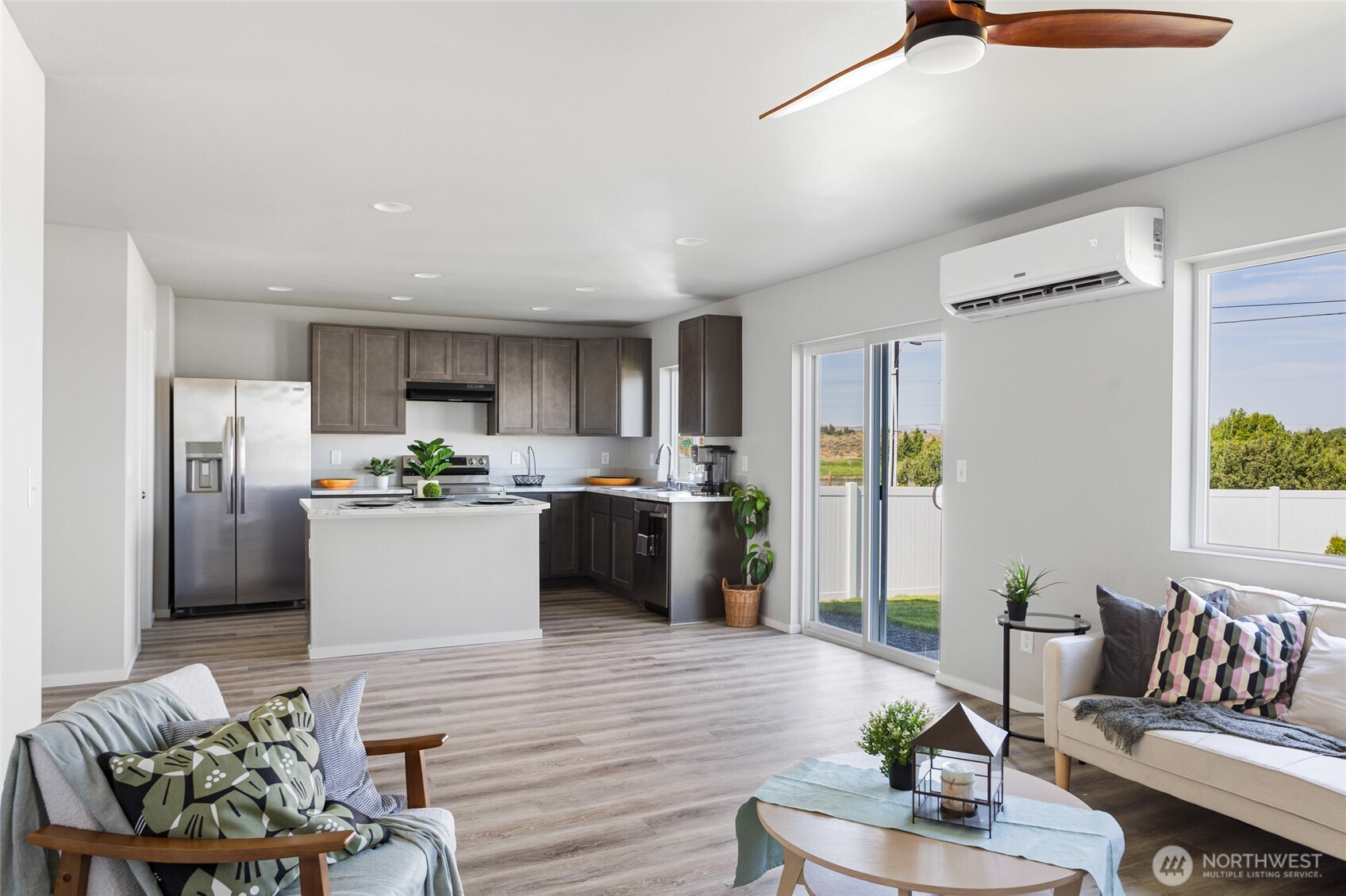 Introducing phase 2 of Chinook winds! The sought after 2 story Ponderosa Plan offers 1,485 sq ft, 8' ceilings, white trim & 2 1/3'' white bboards, 6-pound pad in bdrms, LVP floors in kitchen/hallways/baths/utility room, 50-gallon electric Hot water tank, ductless mini-split heat/cooling, & gray interior walls! Open living & dining area that flow into the chefs' kitchen showcasing High-Definition laminate counters, Ash Brown cabinets, WI Pantry, SS apps, 6" tile backsplash, & top mounted sink(w/option for single/double bowl)! 1/2 bath on main. Primary ft WI closet & full bath w/tile bcksplsh. 3 addtl. bdrms & full bath upstairs. Fully landscaped front yard w/sod. *Closing Cost Assistance Program with the use of the preferred lender