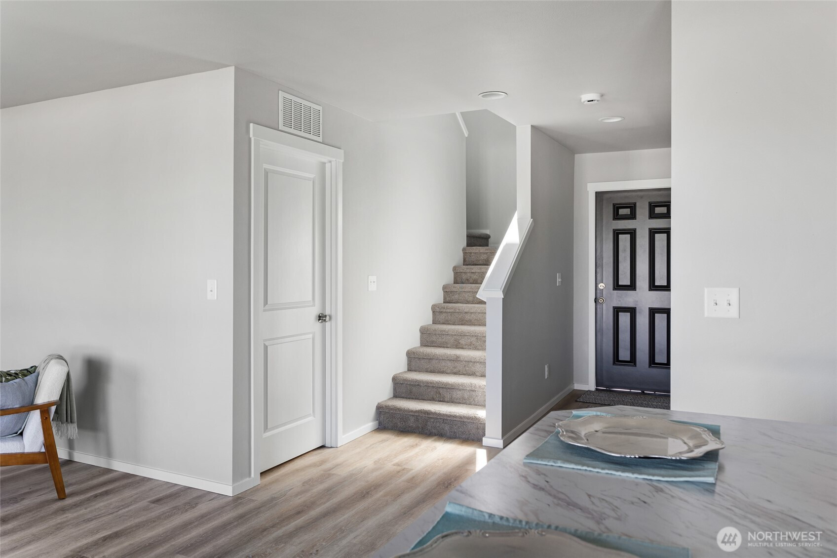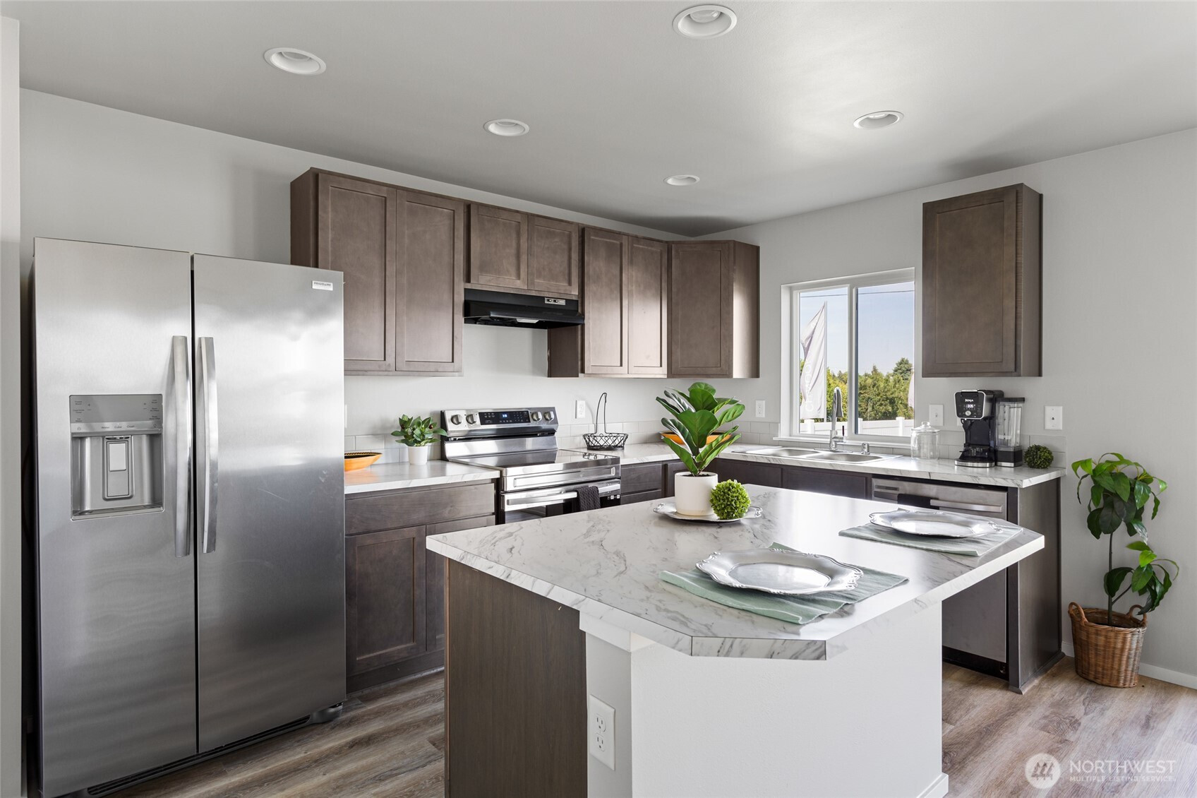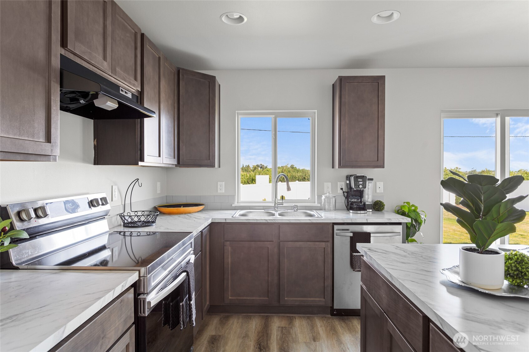 Introducing phase 2 of Chinook winds! The sought after 2 story Ponderosa Plan offers 1,485 sq ft, 8' ceilings, white trim & 2 1/3'' white bboards, 6-pound pad in bdrms, LVP floors in kitchen/hallways/baths/utility room, 50-gallon electric Hot water tank, ductless mini-split heat/cooling, & gray interior walls! Open living & dining area that flow into the chefs' kitchen showcasing High-Definition laminate counters, Ash Brown cabinets, WI Pantry, SS apps, 6" tile backsplash, & top mounted sink(w/option for single/double bowl)! 1/2 bath on main. Primary ft WI closet & full bath w/tile bcksplsh. 3 addtl. bdrms & full bath upstairs. Fully landscaped front yard w/sod. *Closing Cost Assistance Program with the use of the preferred lender