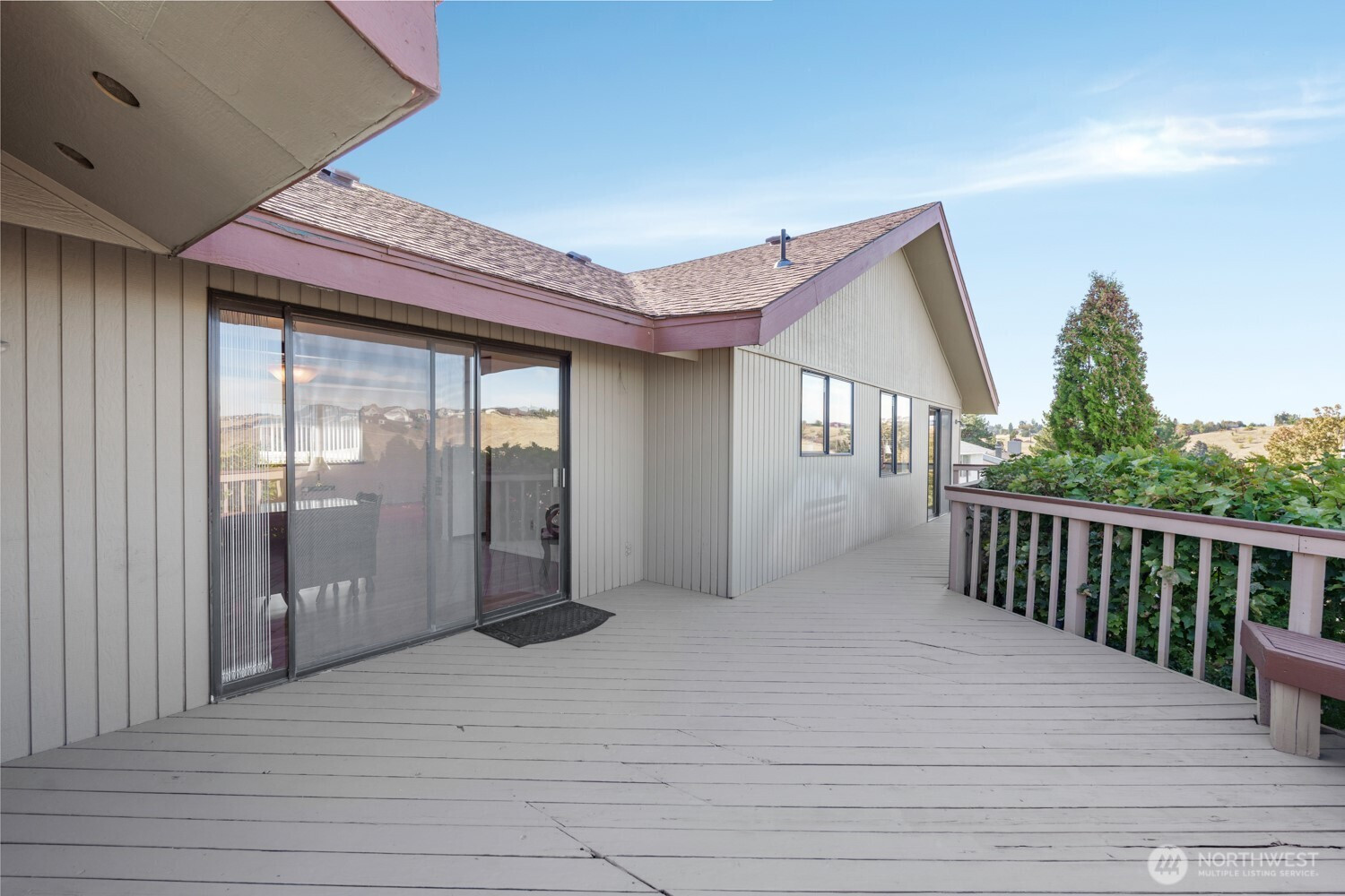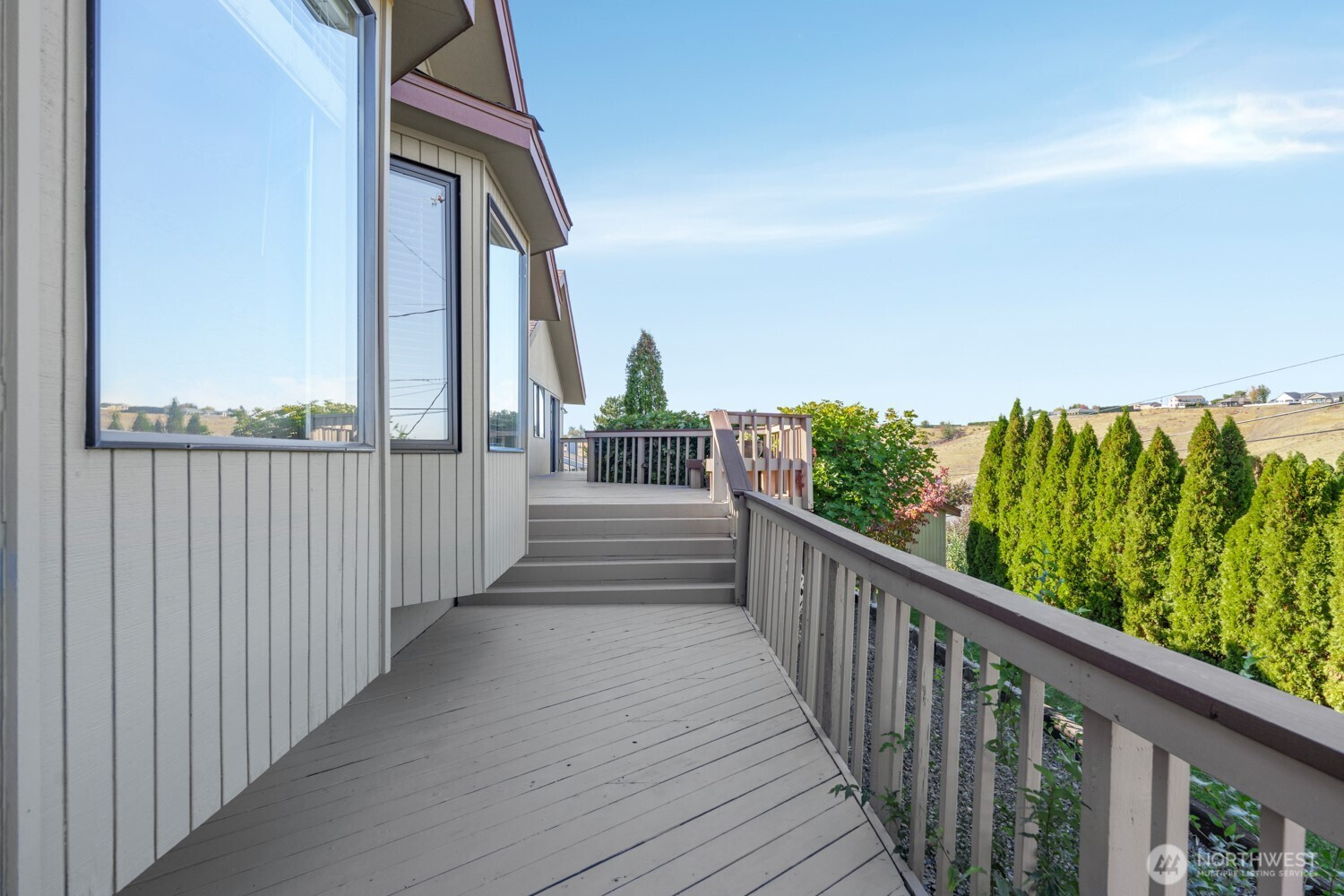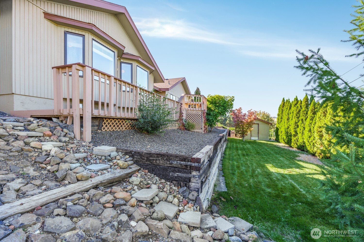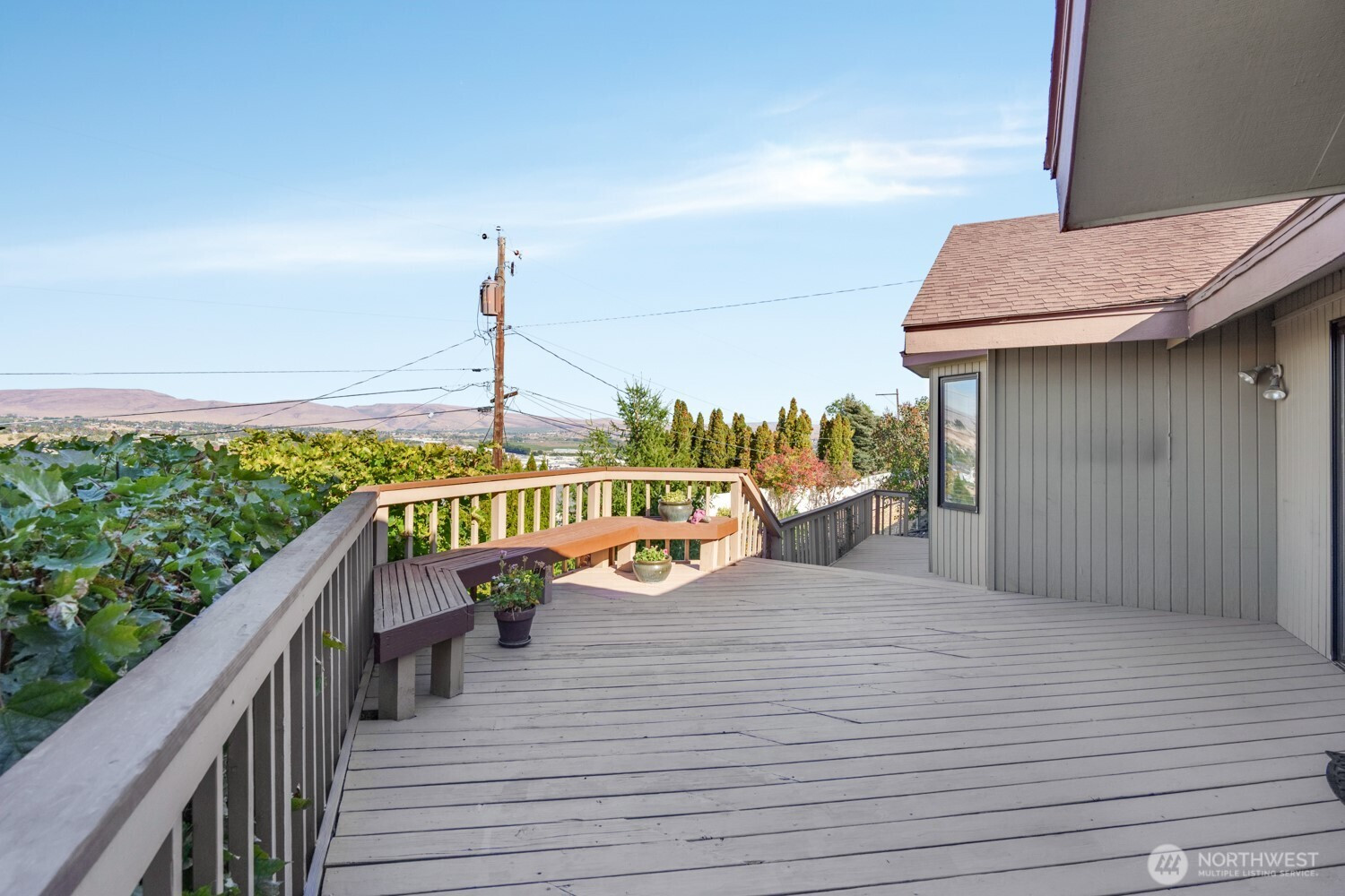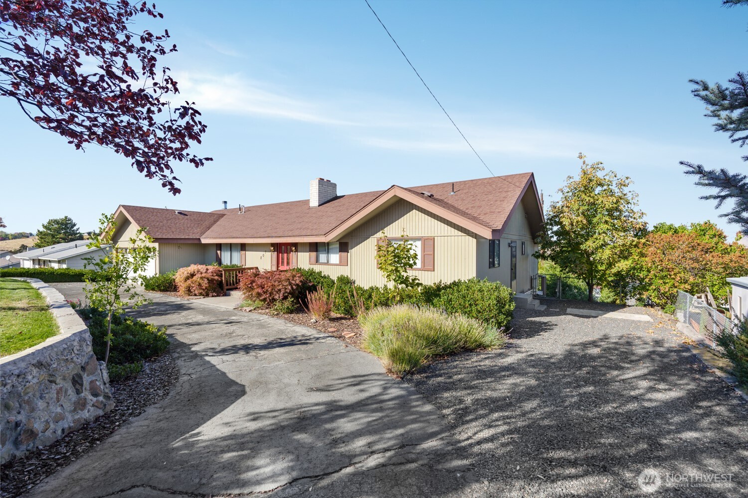 Stunning residence w/ gorgeous city and mountain views. 3 bedrooms & 2 full baths. Newly painted large deck for morning coffee. Fully fenced backyard w/ terraced lawn, powered storage shed on foundation & space for a garden. Home has laminate wood flooring in main space & vinyl in bathrooms, making it great for pets or allergy-friendly living. Formal living room w/ wood-burning fireplace. Family room w/ wood stove. Kitchen w/ island, pantry & built-in desk for working from home. Dining w/ sliders to deck. Primary suite w/ dual walk-in closets, private bath w/ jetted tub, double sinks, shower & water closet. Circular drive w/ RV space & 1,000 sqft loft above garage for storage, gym or studio. New gas furnace in Dec. 2024 for efficiency.