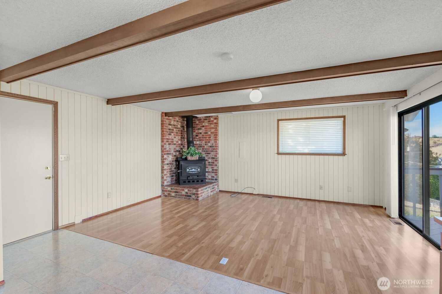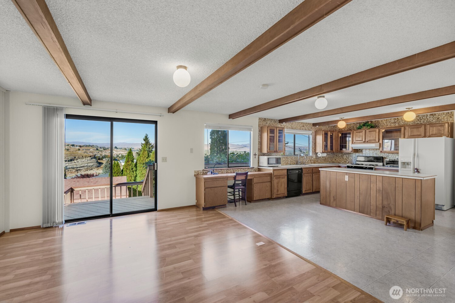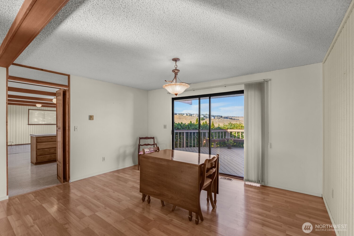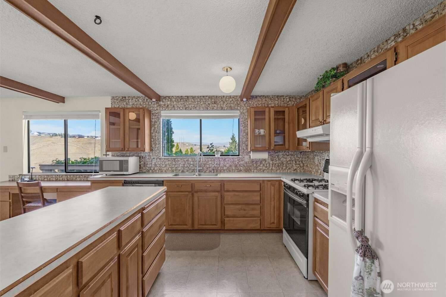 Stunning residence w/ gorgeous city and mountain views. 3 bedrooms & 2 full baths. Newly painted large deck for morning coffee. Fully fenced backyard w/ terraced lawn, powered storage shed on foundation & space for a garden. Home has laminate wood flooring in main space & vinyl in bathrooms, making it great for pets or allergy-friendly living. Formal living room w/ wood-burning fireplace. Family room w/ wood stove. Kitchen w/ island, pantry & built-in desk for working from home. Dining w/ sliders to deck. Primary suite w/ dual walk-in closets, private bath w/ jetted tub, double sinks, shower & water closet. Circular drive w/ RV space & 1,000 sqft loft above garage for storage, gym or studio. New gas furnace in Dec. 2024 for efficiency.