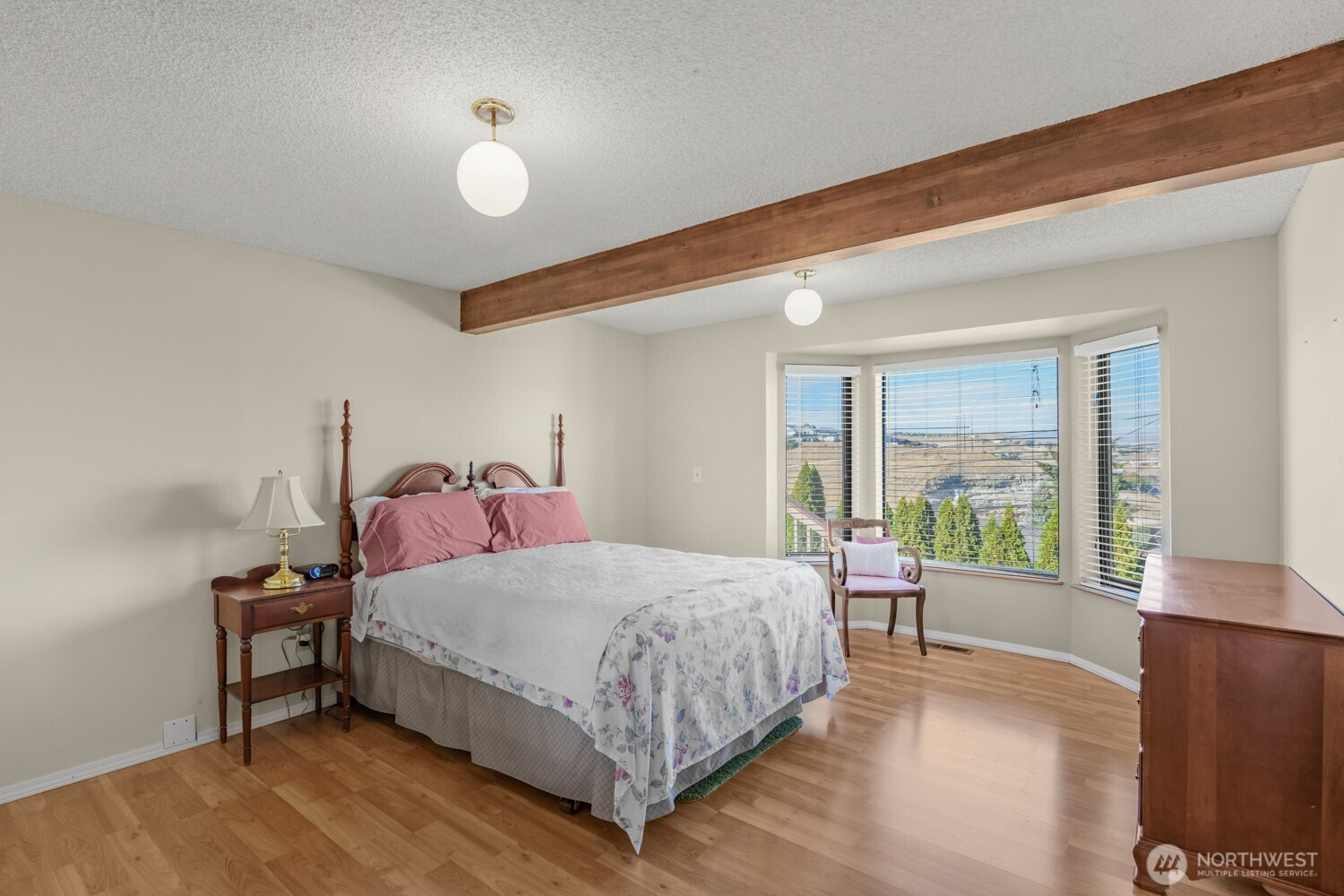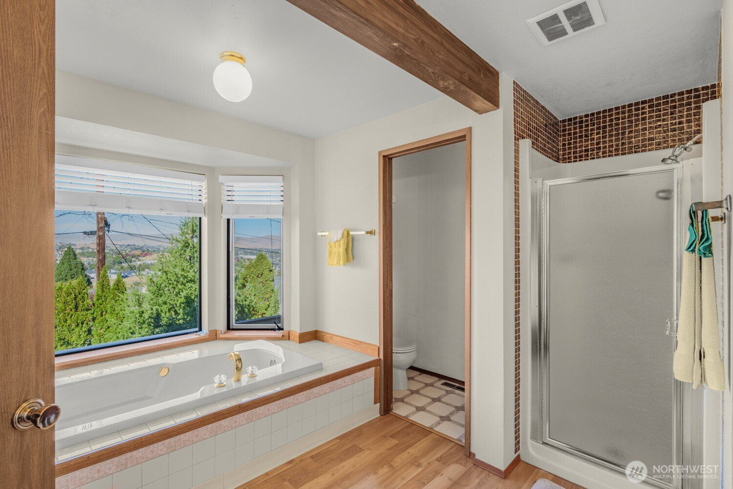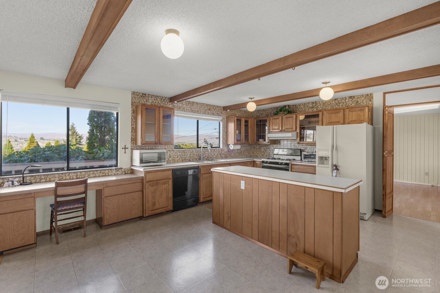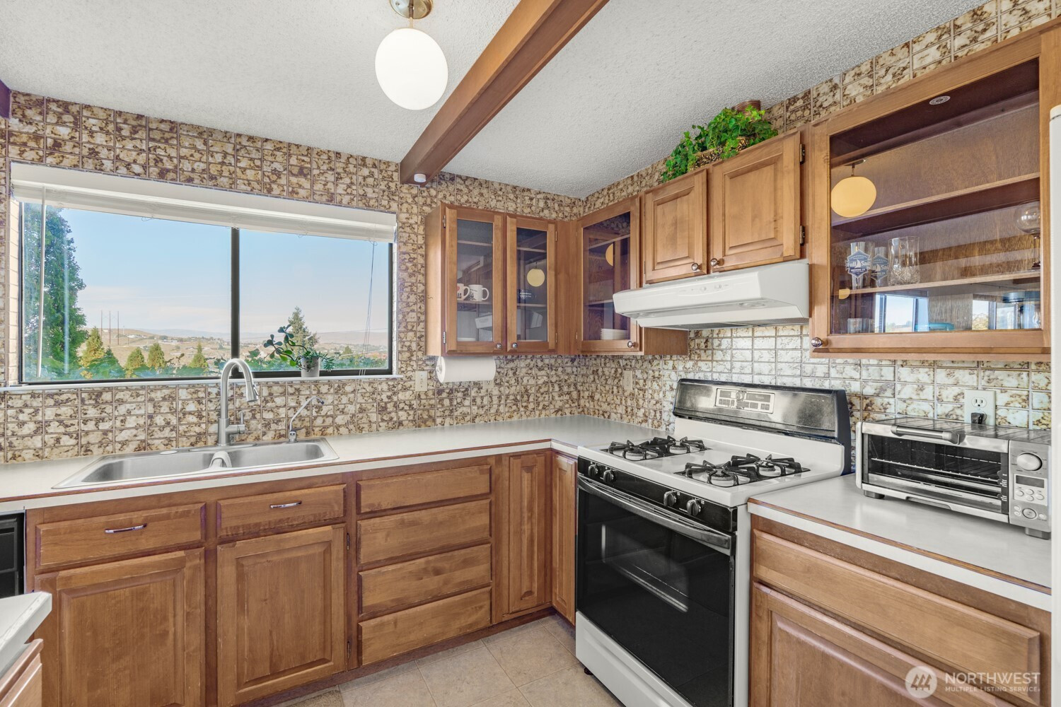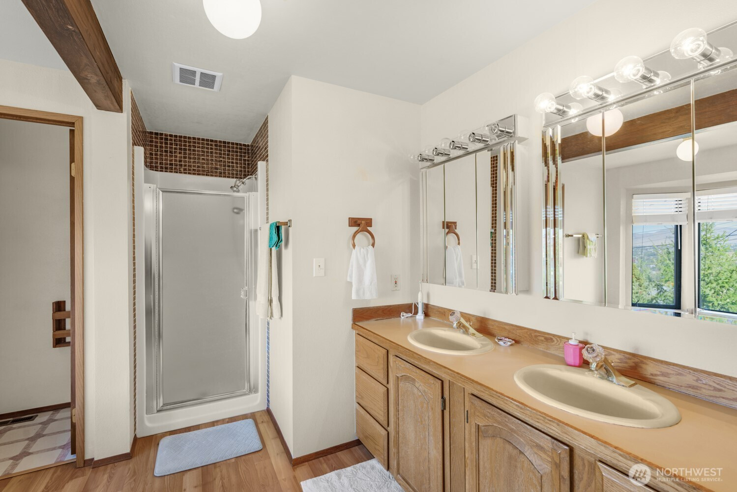 Stunning residence w/ gorgeous city and mountain views. 3 bedrooms & 2 full baths. Newly painted large deck for morning coffee. Fully fenced backyard w/ terraced lawn, powered storage shed on foundation & space for a garden. Home has laminate wood flooring in main space & vinyl in bathrooms, making it great for pets or allergy-friendly living. Formal living room w/ wood-burning fireplace. Family room w/ wood stove. Kitchen w/ island, pantry & built-in desk for working from home. Dining w/ sliders to deck. Primary suite w/ dual walk-in closets, private bath w/ jetted tub, double sinks, shower & water closet. Circular drive w/ RV space & 1,000 sqft loft above garage for storage, gym or studio. New gas furnace in Dec. 2024 for efficiency.