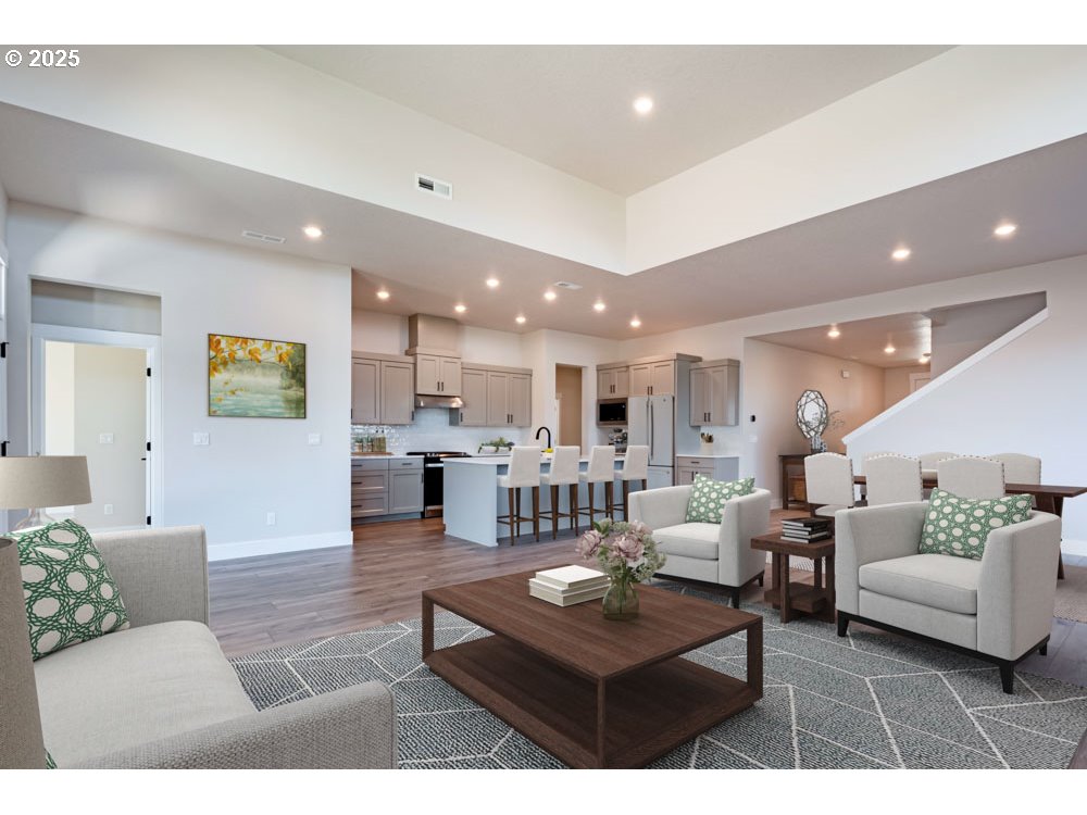 The Siskiyou is a spacious, extremely livable home that offers plenty of room to spread out. With four bedrooms — including two on the main floor plus two more bedrooms upstairs that are situated between a wonderful loft space, this layout gives you options no matter what life throws your way. A large, spacious kitchen opens to the great room with tall ceilings that flows into a large dining space, perfect for entertaining. Thoughtful finish selections include 8 foot interior doors, wood shelving throughout, composite kitchen sink, 5 piece appliance package, open stair railing and frameless swing primary shower door. In Collina, you'll also enjoy amenities like a pool, clubhouse, fitness center, and front yard landscaping included with every home. Nestled near Newberg’s wineries, shops, and schools, the neighborhood makes it easy to unwind, connect, and enjoy the Oregon lifestyle. Concessions available, please contact agent. Model home at 1318 E Luna St open Friday thru Monday from 11-4. Photos of similar homes.