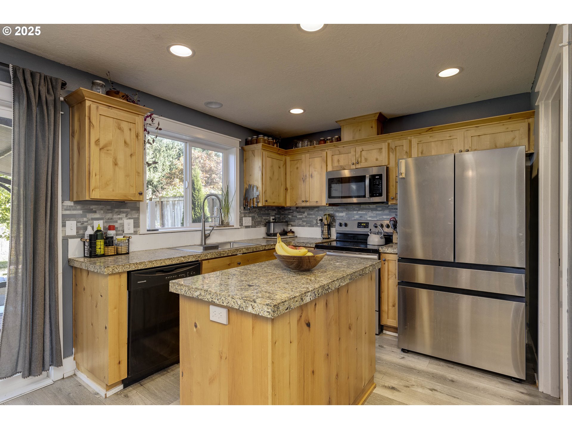 This thoughtfully designed 3-bedroom, 2.5-bathroom residence, built in 2014, spans 1,235 square feet on a generous 5,227-square-foot lot. The backyard features many producing garden plants. Step inside to a popular open layout where the large great room flows seamlessly from the kitchen, creating an inviting heart for gatherings and everyday moments. You'll appreciate the custom cabinets, elegant granite tile counters, durable laminate flooring, and warm oil-rubbed bronze fixtures that add a touch of sophistication. The exterior charms with stone accents and beautifully landscaped front yard, offering a welcoming curb appeal that's low-maintenance yet full of potential for your personal touch. An attached 2-car garage provides practical storage and convenience, while the composition roof and efficient heat pump heating with evaporative cooling ensure year-round comfort. Nestled close to a neighborhood city park, this home invites you to connect with nature and community, staying in touch with the simple joys of outdoor play and relaxation. It's a space where you can start fresh, see projects through to completion, and accomplish daily life. Please note: Refrigerators, washer/dryer and large mirror on upstairs landing excluded from sale.