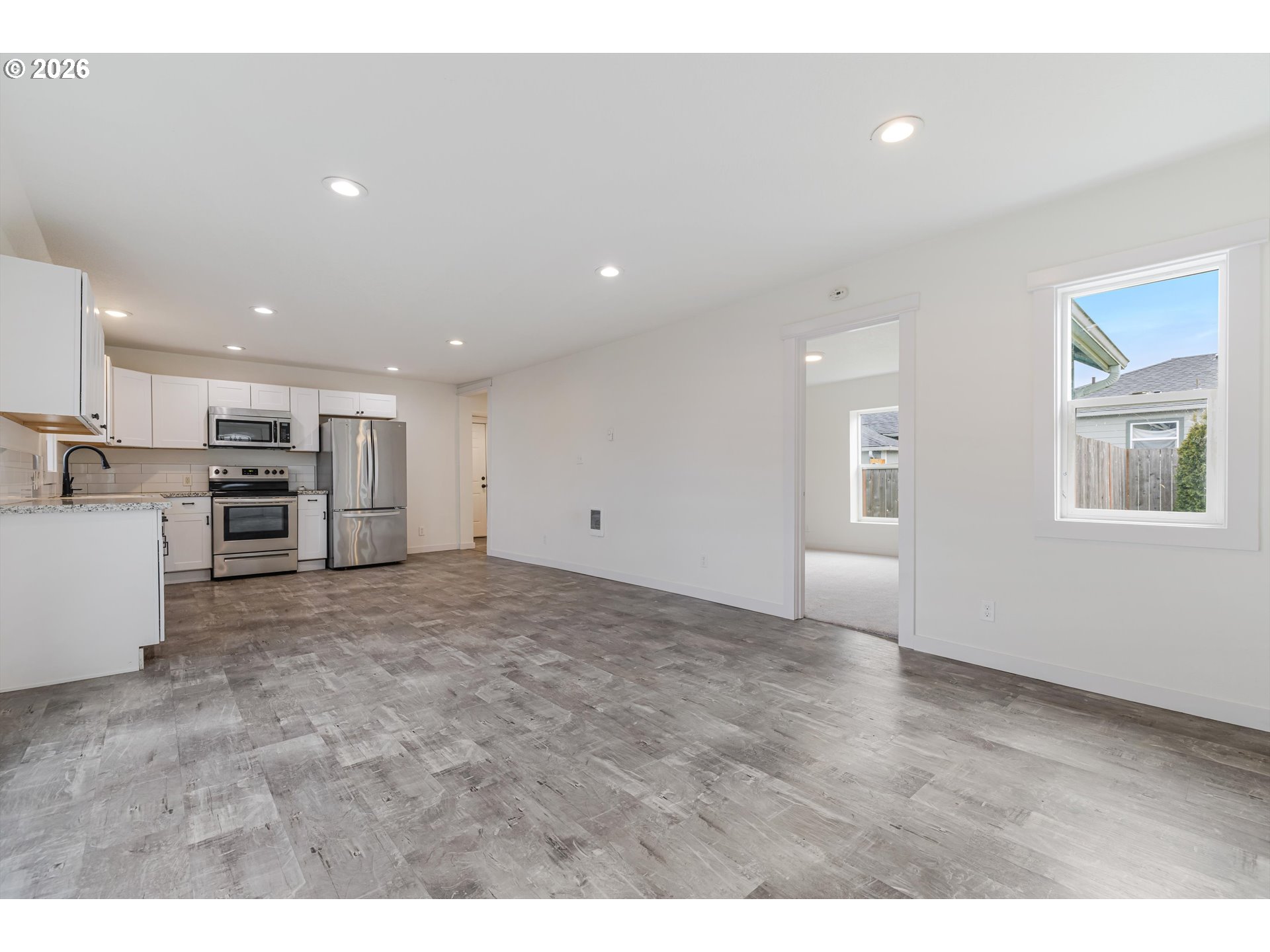 Single-level home with recent updates located within walking distance of Downtown Newberg, restaurants, a grocery store, and coffee shops. The home received several updates in 2022, including a new roof, siding, exterior paint, and gutters. The interior was also redone, including a new kitchen with quartz countertops and stainless steel appliances, as well as a new bathroom with a tiled shower. The interior paint and carpet were just replaced in 2026. You will enjoy a large front and back yard space that is completely fenced, in addition to a large storage shed with a concrete foundation.