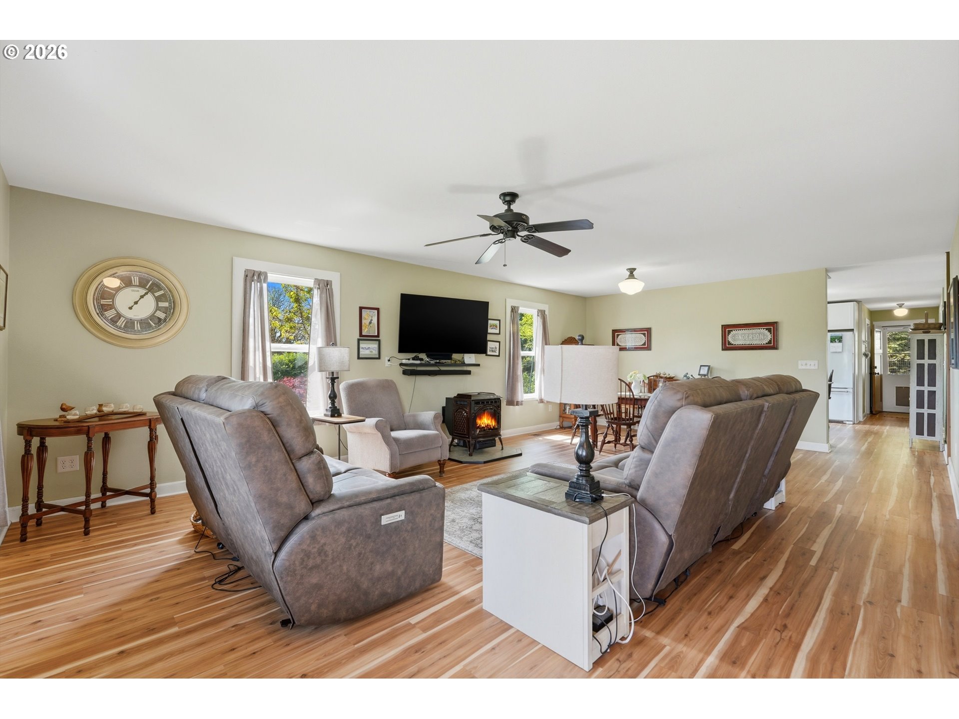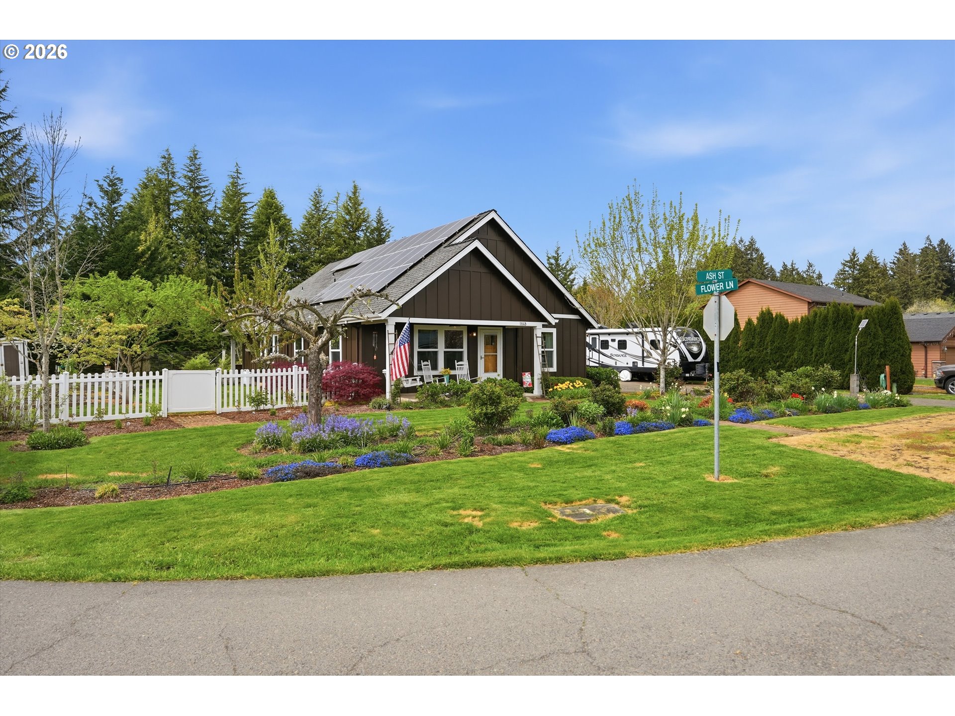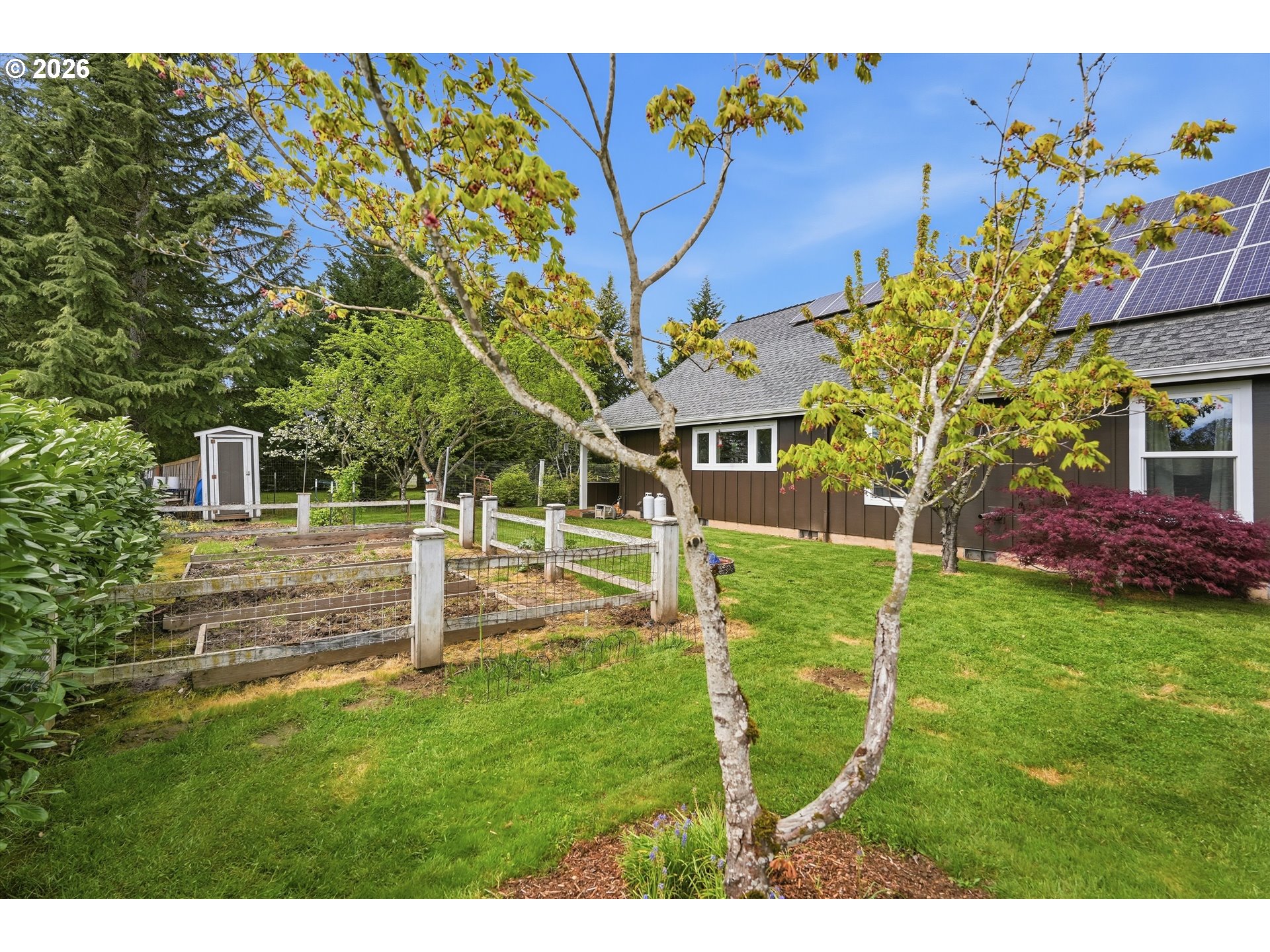 Honey. stop the car! I want to see this one! And you will be glad you did! This exceptional custom built home truly reflects pride of ownership at every turn. With so many thoughtful upgrades and improvements, a full list is available upon request- there's simply too much to include here! Ideally located within easy driving distance to both the mountains and the coast, or wine tasting, this home offers the best of the Pacific Northwest lifestyle- while providing everything you need right at home. Step outside to a serene backyard retreat featuring a garden area, mature fruit trees, and a charming outdoor pizza oven- perfect for entertaining or relaxing evenings. Inside you will find a a beautiful remodeled primary bathroom, coy pellet stove, ceiling fans, and a well-appointed kitchen with a pantry. Above the garage is additional living space that includes a bedroom and full bath (this is not included in square footage, but was permitted) offering flexibility for guests, hobbies, or a private retreat. (Mancave?) And to top it off, solar panels,