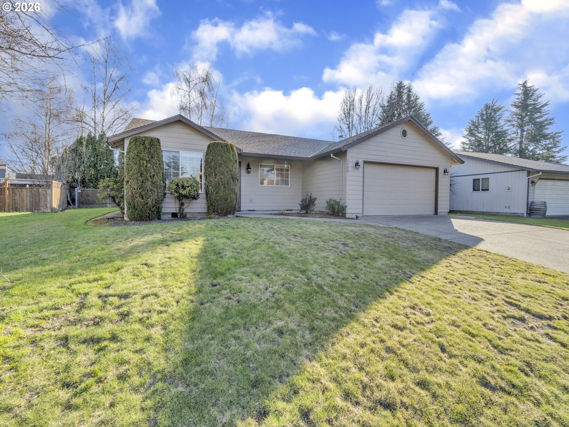 Move in ready, single-level home located in SW McMinnville. This well-maintained property offers a functional floor plan with two comfortable living spaces, natural light throughout, and a fireplace for those cool evenings. It has new exterior paint in 2025 as well as new kitchen appliances. The kitchen opens to the main living area, making it ideal for everyday living and entertaining. The fully fenced backyard provides room to relax, garden, or entertain, with space for pets or play. Conveniently located within walking distance of Discovery Park. Also near schools, shopping, and downtown McMinnville amenities. This home is Ideal for a variety of buyers looking for comfort, convenience, and location.