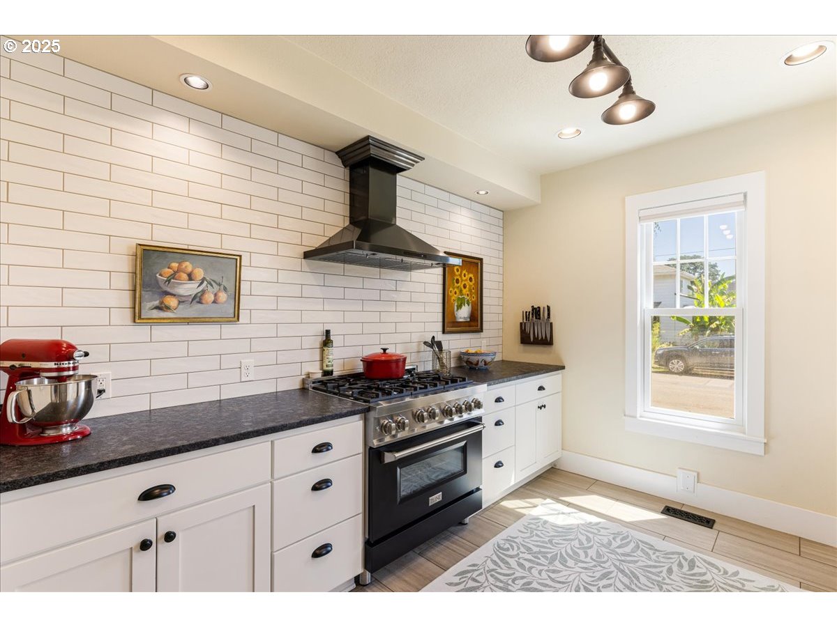 This charming 1909 farmhouse, set on a desirable corner lot, perfectly balances historic character with modern updates. From the moment you enter, you'll be greeted by a thoughtfully designed floor plan, original fir wood floors, beautifully preserved woodwork, and vintage hardware that reflect the home's rich heritage. Large, energy-efficient windows fill the space with natural light, while the inviting front porch offers an ideal place to begin and end your day. The spacious living room and formal dining room feature elegant arched entries. The fully renovated kitchen is a true centerpiece, featuring stainless steel appliances, gas stove, tile flooring and backsplash, slab granite countertops and a classic apron sink. The oversized upstairs bathroom includes a skylight along with generous built-in storage. Recent upgrades include updated electrical and plumbing systems, central air conditioning and refinished original floors. A large two-car garage adds both convenience and additional storage. Just blocks from historic downtown and several beautiful city parks, this lovingly restored home offers not only comfort and functionality, but also an unbeatable location. Don’t miss the opportunity to own a true historic gem that effortlessly blends vintage charm with modern living.