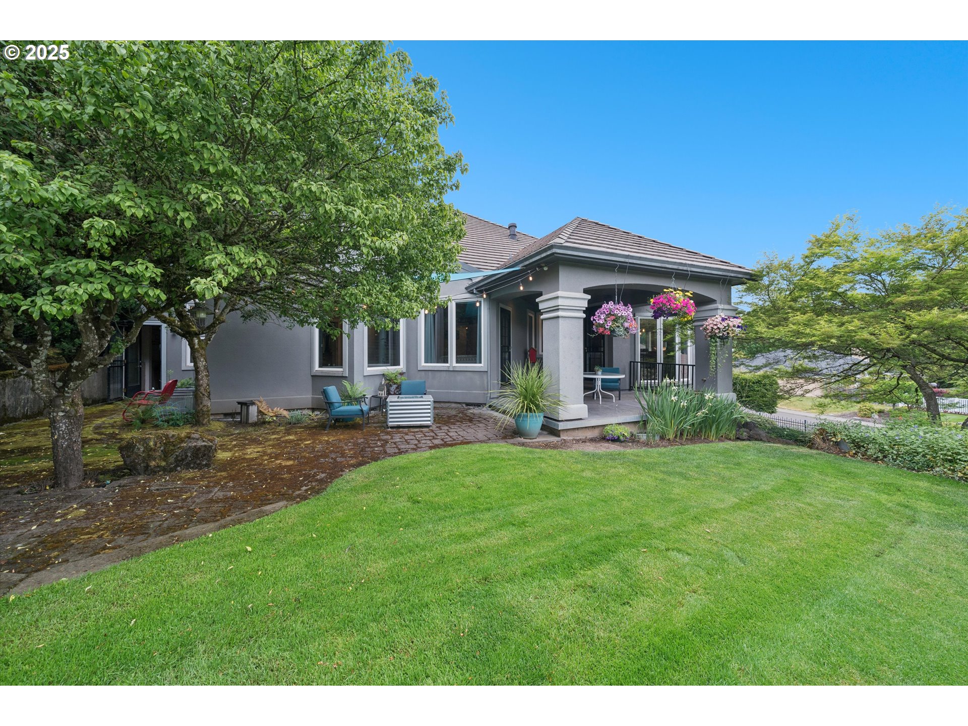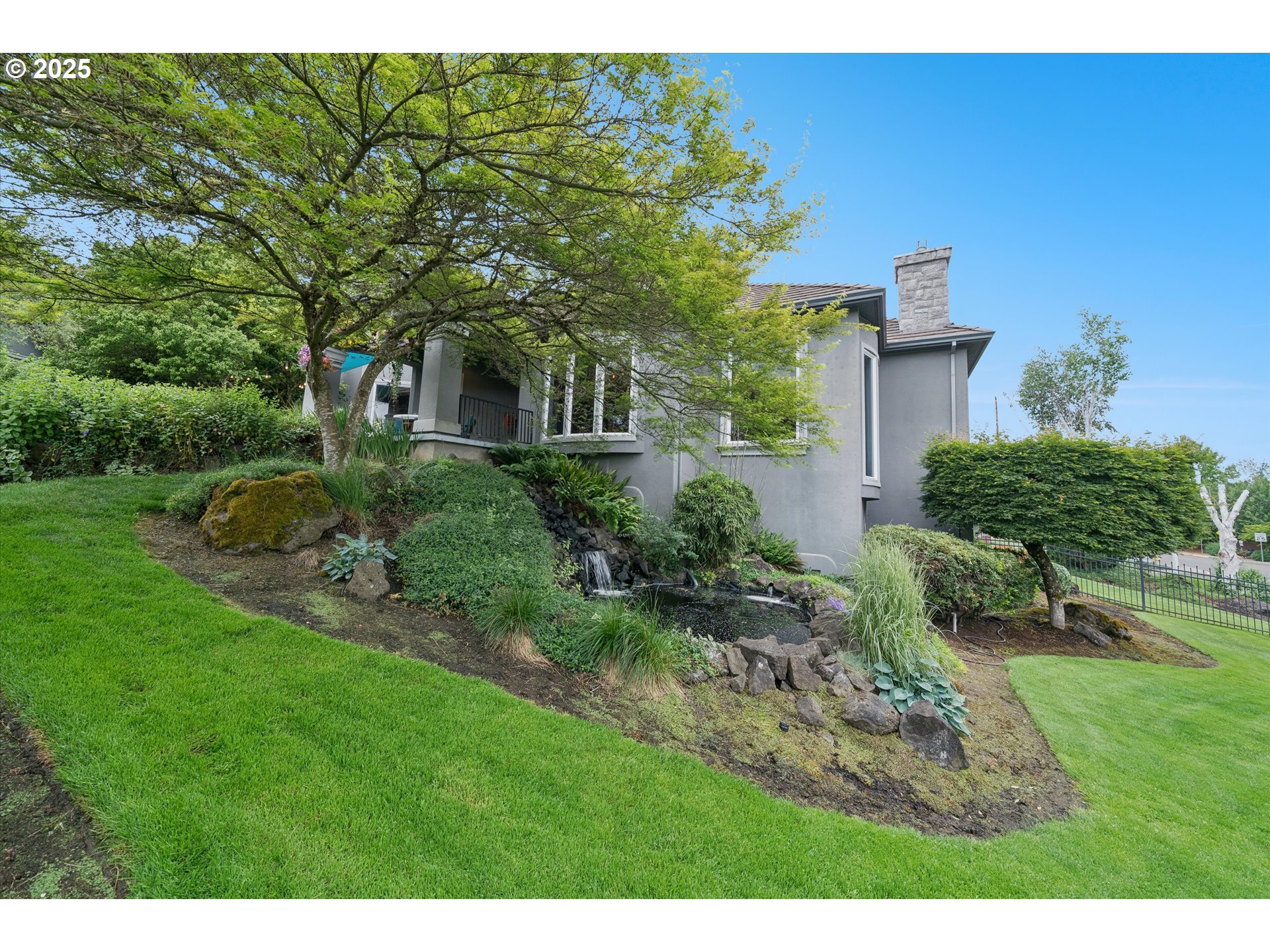 Stunning custom-built home ideally located near top-rated schools on a quiet, desirable street! Perfect, corner-lot location. This entertainer’s dream features a chef's kitchen with granite countertops, pantry, double oven, and an impressive wine cellar - perfect for hosting. The expansive living room is flooded with natural light from massive windows and high ceilings. The main-level primary suite offers convenience and privacy. Features include a ceiling fan, french doors, exterior entry to the covered patio, walk in closet, and a luxury bathroom ensuite. Slate and tile floors add timeless style throughout. Step outside to a private, curated yard with mature landscaping, raised garden beds, and a tranquil water feature flowing into a koi pond. Enjoy evenings by the fire pit or tinkering in the oversized garage, complete with a potting studio, built-in workbench, and shelving. Central vacuum system and tons of storage throughout. This exceptional property blends luxury, function, and natural beauty — an absolute must-see!