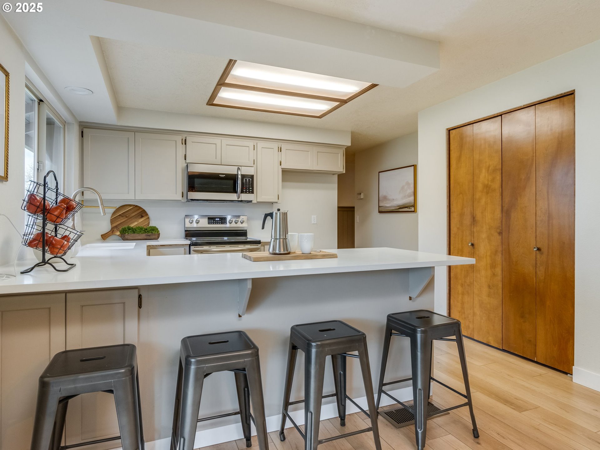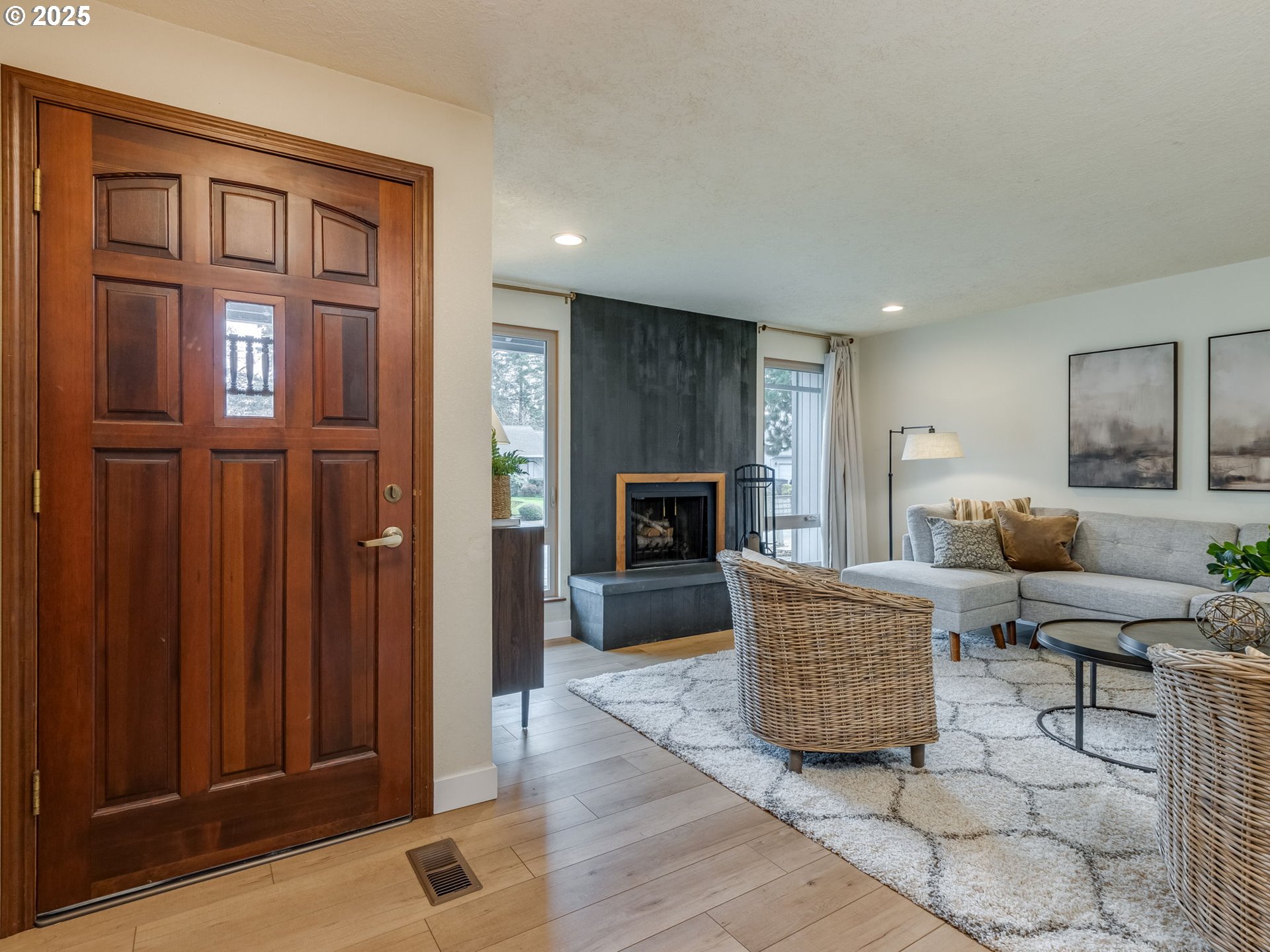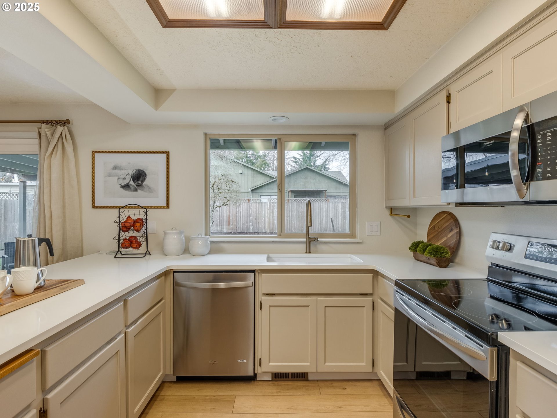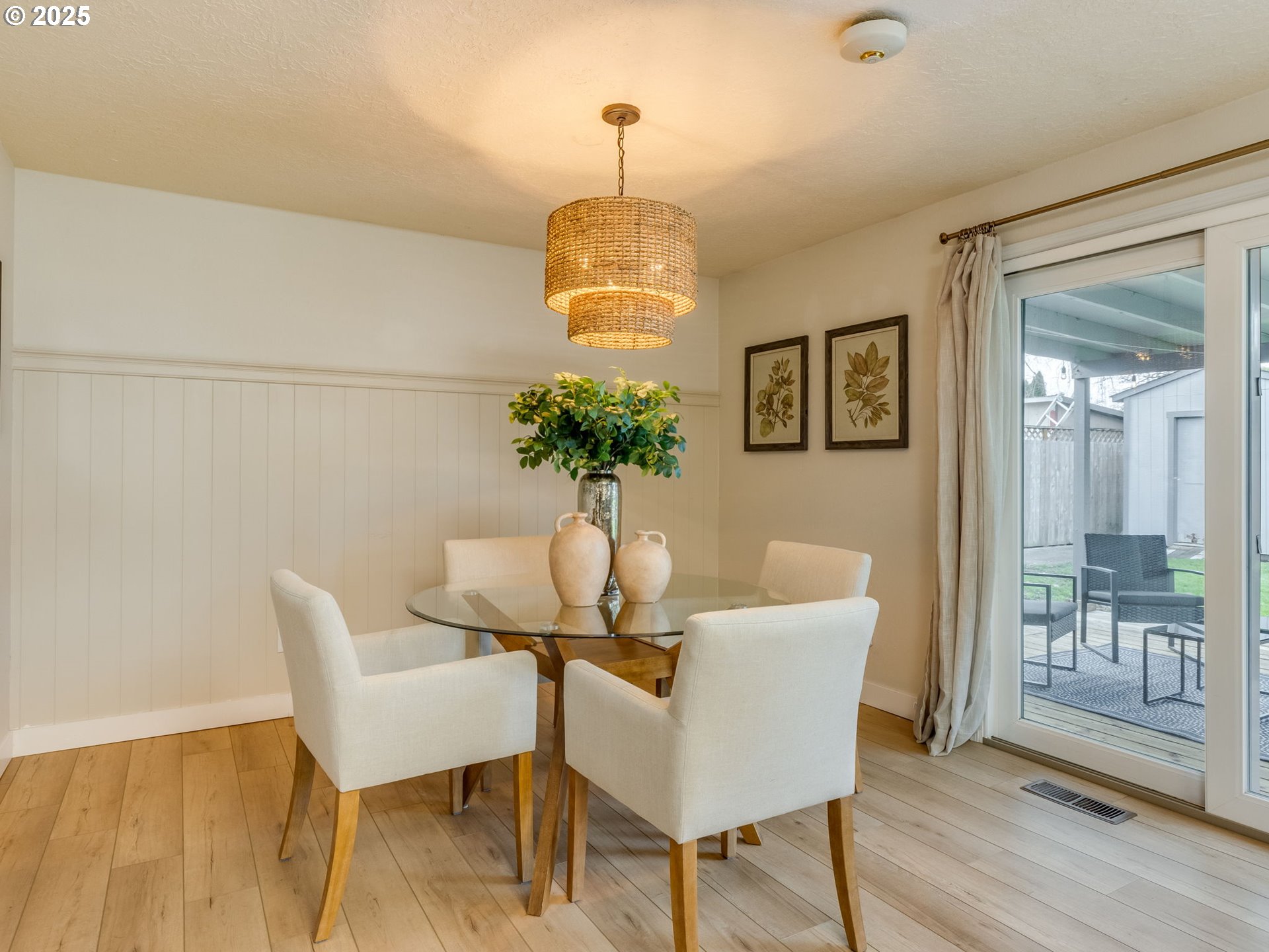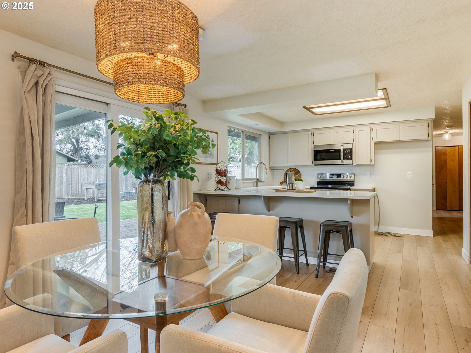 This charming three-bedroom home combines modern updates with inviting comfort. New LVP flooring throughout offers style and durability. The updated kitchen with quartz countertops and an extra deep sink, flows seamlessly into the dining/living areas making entertaining a breeze. Living room has cozy wood burning fireplace perfect for family gatherings or quiet evenings. Two nice sized bedrooms with a shared bathroom. Primary suite has updated bathroom and walk in closet. Both updated bathrooms boast stylish fixtures and contemporary finishes. Kitchen opens to dining and sitting area with slider to backyard. This fully fenced backyard is a great size with covered deck, shed and raised beds. Also, extra parking for your toys. A great place to call home!