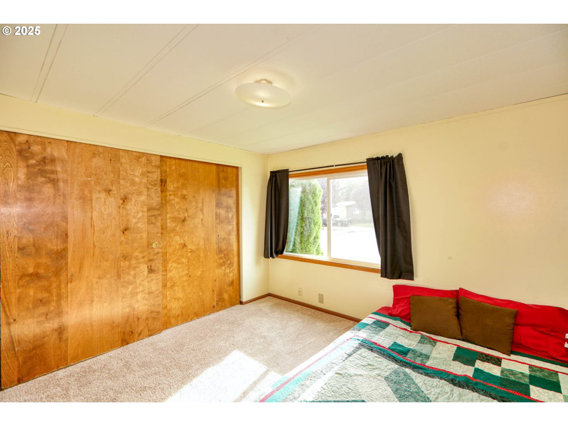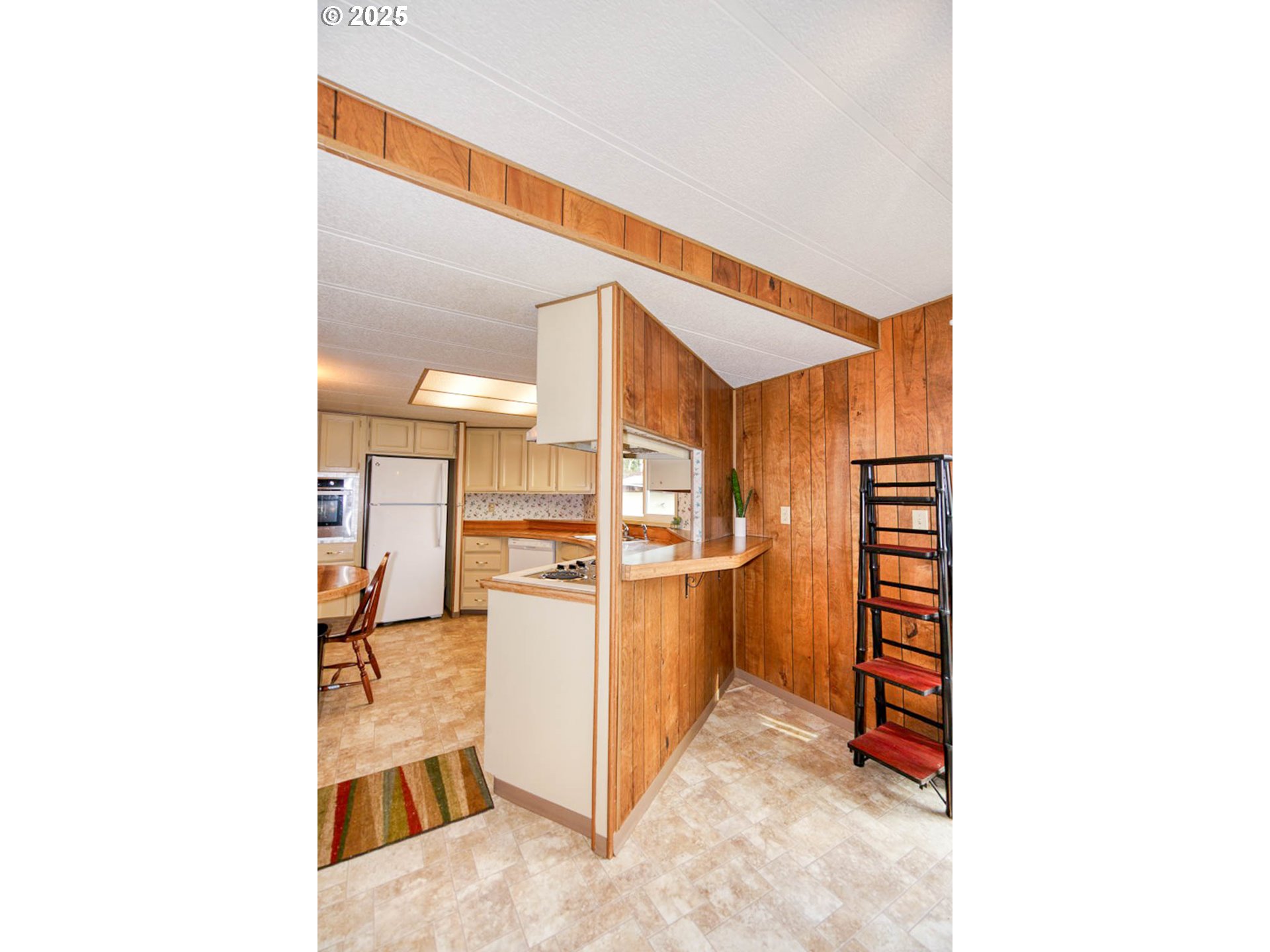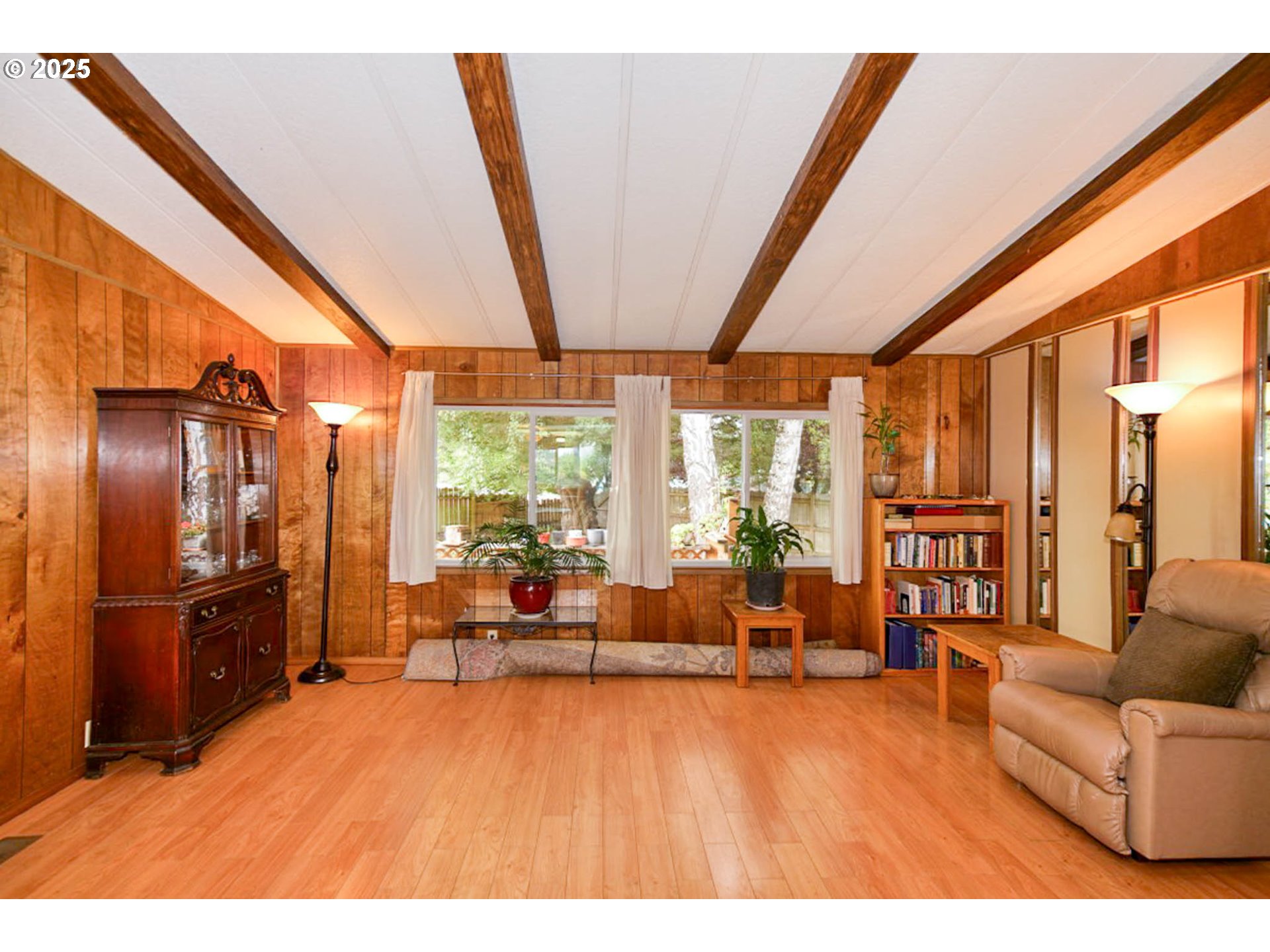 Well-cared-for, spacious 4-bedroom, 2-bath home with high ceilings, located in an all-ages park. This home includes a large family room, a living room, and a dining room with a split floor plan. The property sits in a quiet cul-de-sac, and the back yard is fenced. The front deck is great for bird-watching, thanks to the privacy the trees provide. The primary suite is ample and includes an ensuite with a walk-in shower and soaking tub. There are many upgrades: new heat pump and furnace, stove top, vinyl double-pane windows, vapor barrier & weatherization, dryer vents, and bathroom fans. There is good storage throughout the home, laminate/vinyl flooring throughout, and the roof is only 10 years old. This home is within walking distance of Duniway Middle School! The washer and dryer are included. Welcome Home!