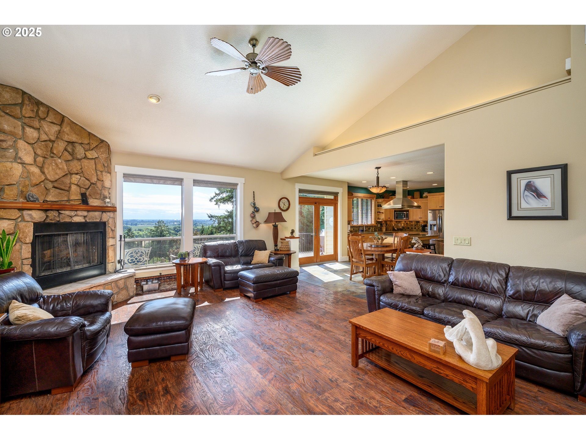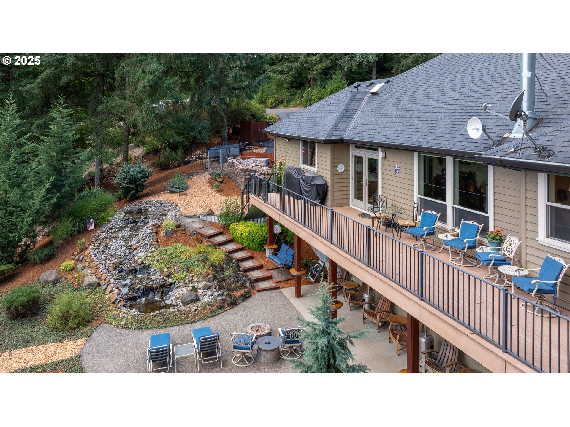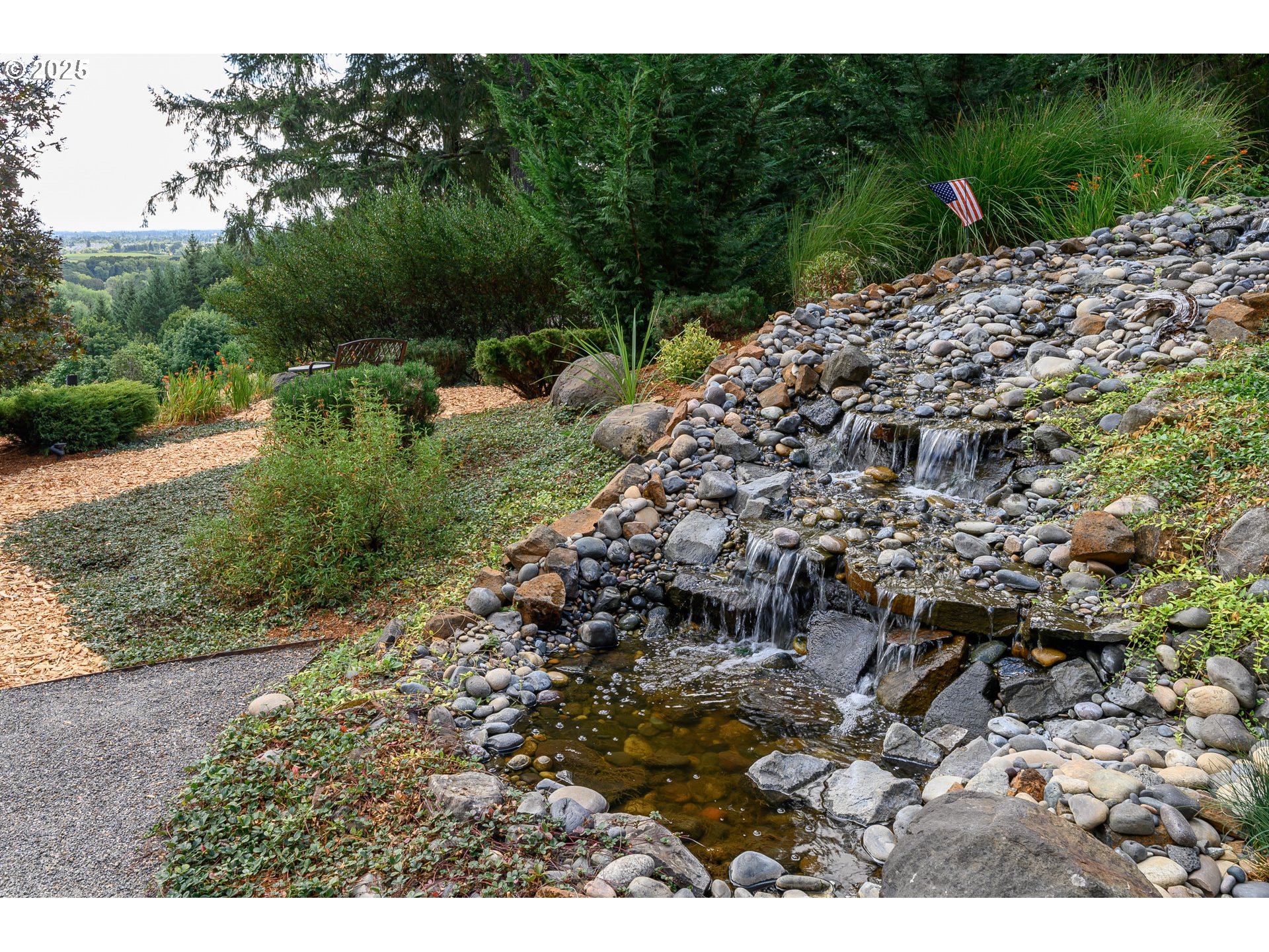 (503) 893-8874Blacktail Falls Resort, country living just outside of McMinnville. Meticulously maintained and beautifully updated. Front entry shows off with a custom built waterfall and gas fire pit to sit and enjoy the restfulness this property exudes. Timber framed grand entrance opens up to floor-ceiling windows next to a masterfully built rock fireplace which provides majestic valley and mountain views. An office and a cozy sitting area complete the entry leading to the living room. Vaulted ceilings with dormer windows bring in the light. French doors in dining area lead to deck that spans the length of the home. Plenty of room to entertain and enjoy. Chef's will be thrilled with the 6 burner gas stove, flat top and 2 convection ovens located in an impressive island. Granite counters grace the kitchen with room to create, bake and serve up your favorite dishes. View from the sink will make dish washing pleasant. Pantry, utility room and 1/2 bath lead to the garage for easy access unloading groceries. Main floor primary bedroom is an oasis with ensuite, walk-in closet and sitting area. Slider to private corner of the deck takes in the mountain and city views. Downstairs is a marvel of its own. Family room w/pool table, 2 bedrooms and full bath for living comfort. The awesome wine cellar has it's own cooling system. Crawlspace was converted with a wood floor to create approx 400 sq ft additional storage and lots of head room. The exterior makes outdoor living a dream. 2 custom built waterfalls use the surrounding landscape, boulders and trees in the best way. Along the walkway, a 60' long waterfall drops approx 25' ft into a rock rimmed pool. The back yard waterfall travels down a winding 25' path into a shimmering pool. 2 propane firepits to enjoy, entry and backyard. Upper deck has rain guards to protect the patio below. Posts with custom wine barrel bar tables make socializing fun and convenient. Dog run gives the puppies a place to enjoy the outdoors and stay dry.