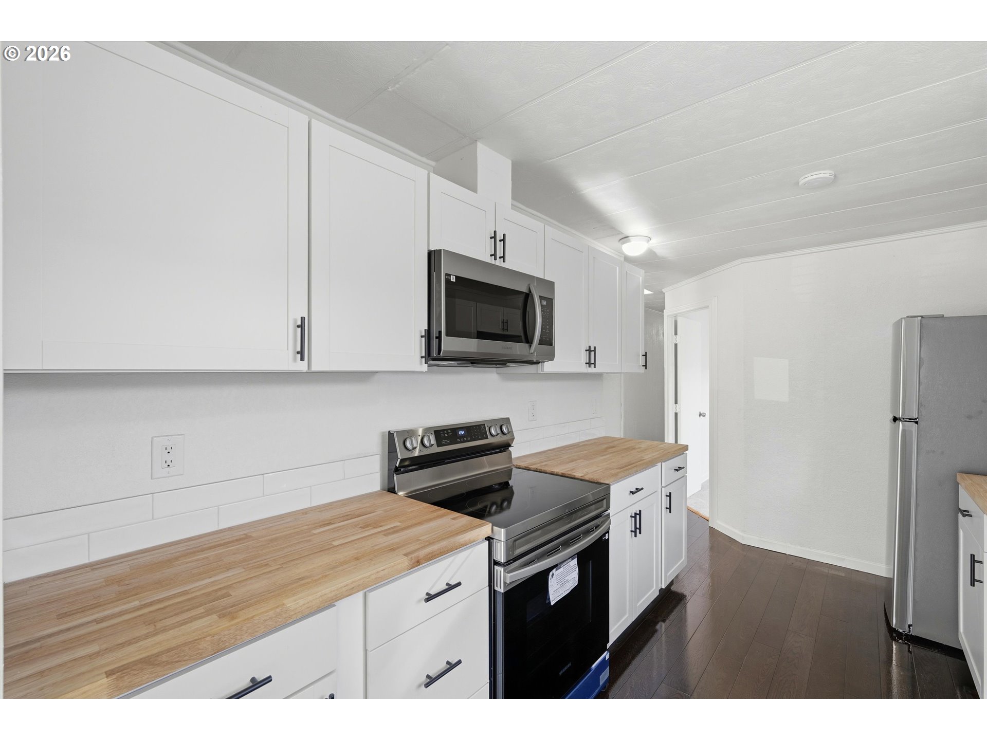 Recently renovated manufactured home on a large lot with convenient access to schools and Downtown Third Street. This property offers ample parking and storage, including a detached carport.The yard is large, fenced, and great for entertaining. Inside the home, you will enjoy two spacious bedrooms and one other"room" (without a closet) that can be used as a third bedroom or office. The living room is inviting and leads into thededicated dining room and kitchen. The home also has a laundry room area with cabinetry. The property has been renovated to include new engineered wood flooring, new carpet in the bedrooms, interior paint, and a completely new kitchen. The kitchen features new cabinetry, butcher-block counters, and a stainless steel appliance package. The primary bathroom has a brand new vanity and a tiled walk-in shower. This is a great, spacious property withgreat walkability!