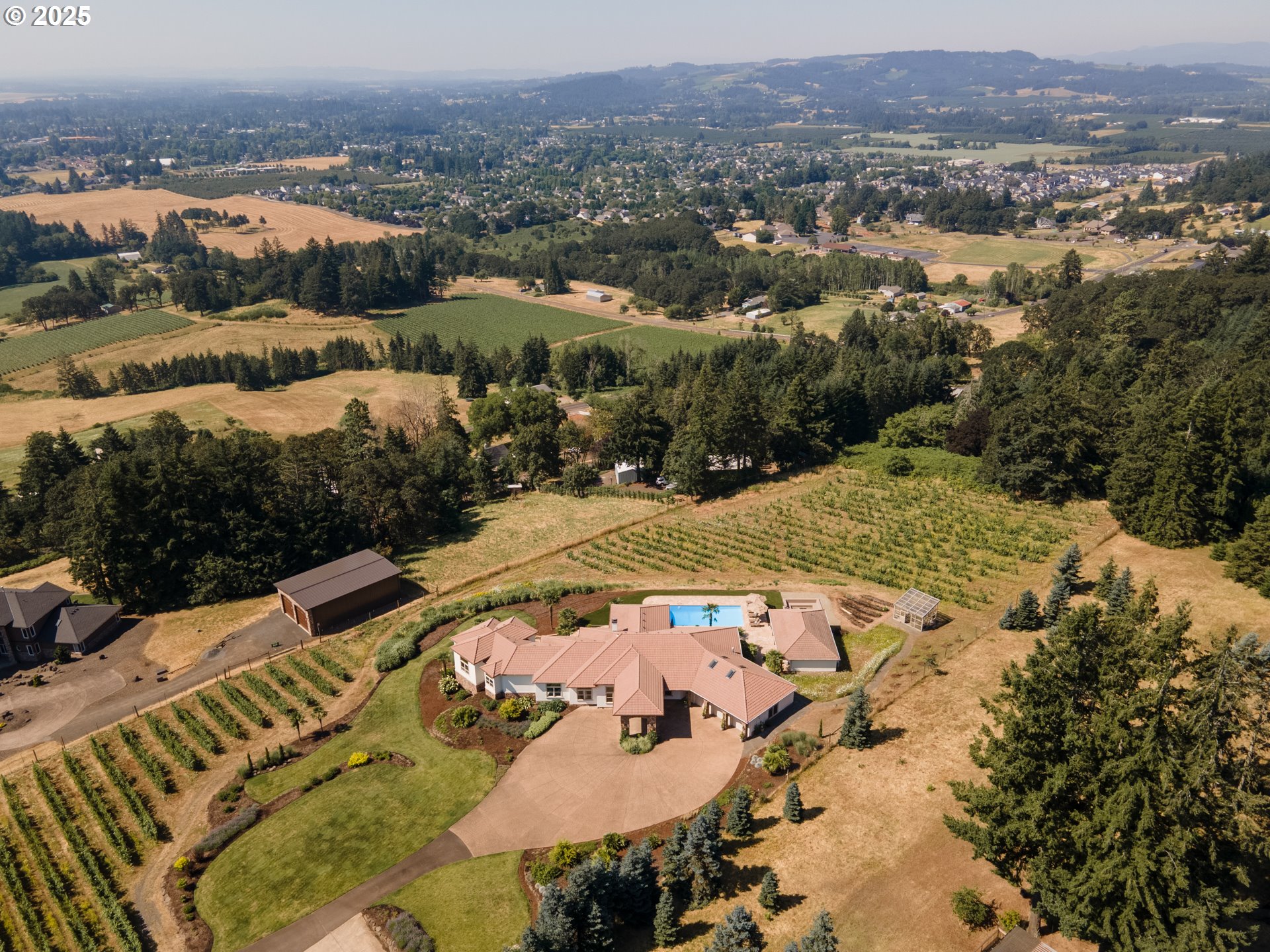 (503) 893-8874This sumptuous oasis has it all—sweeping views of the Willamette Valley and Coast Range, an in-ground heated pool, a sunken fire pit, a green house, a chef's kitchen, and a fully functioning, self-contained, winery. The primary suite is ready to cater to your every comfort and desire with stunning views and oversized sliding doors out to the deck, a luxurious soaking tub, walk in shower, and extra-large walk-in closet with California Closet organization.Twelve-foot ceilings throughout the house, top of the line finishings, primary on the main, new custom window treatments, and a private ensuite bedroom with lower-level access perfect for guests, in-laws or an au pair—everywhere you look, this home exudes luxury and feels like it was custom built for you .The pool house makes for a perfect spot for extra company or separate studio/office. With 2.37 planted acres of wine grapes including pinot noir, gamay, and sauvignon blanc, this beautifully located vineyard includes a winery and dedicated area for tasting room. This is the home your dreams have been waiting for.