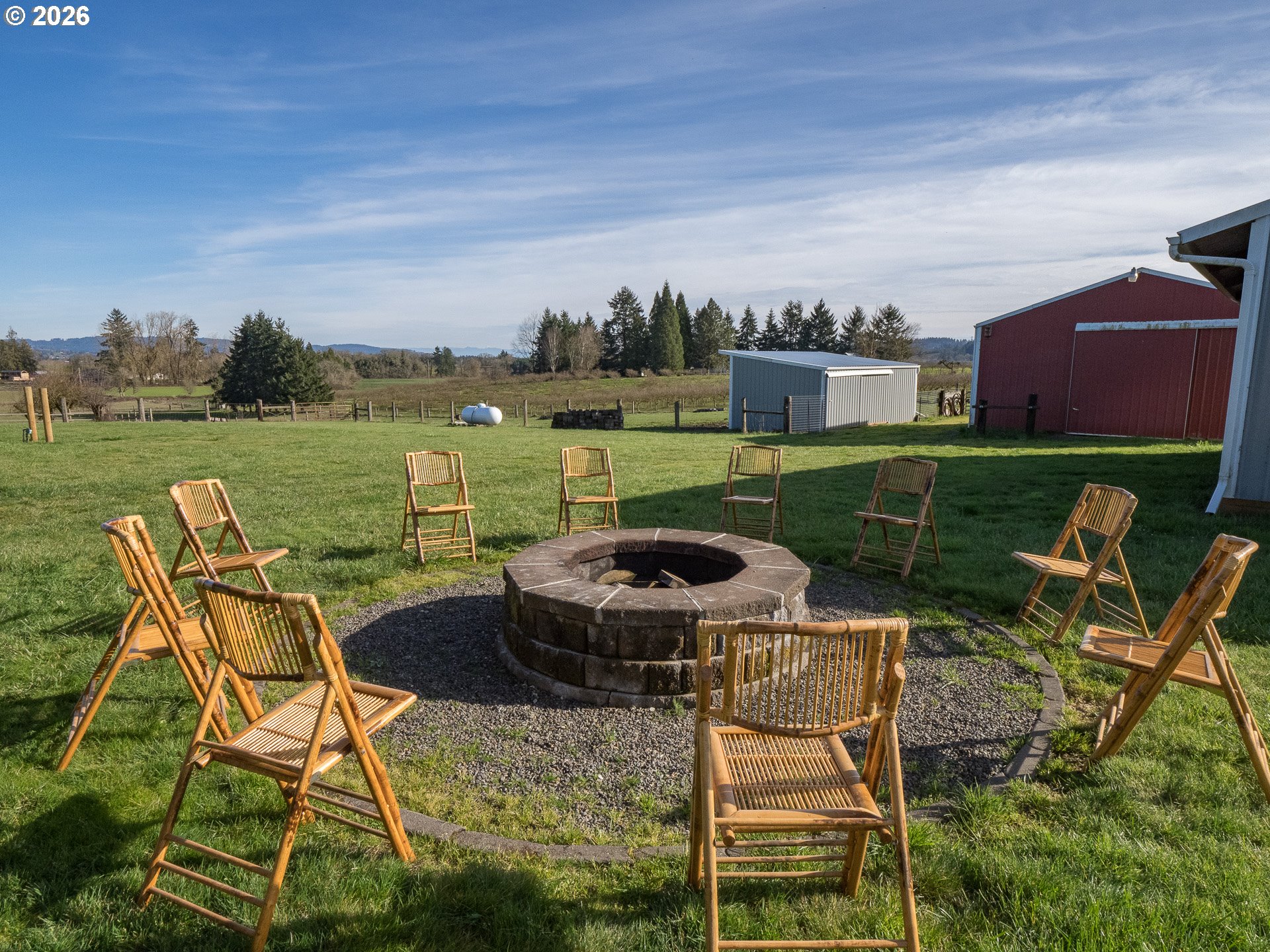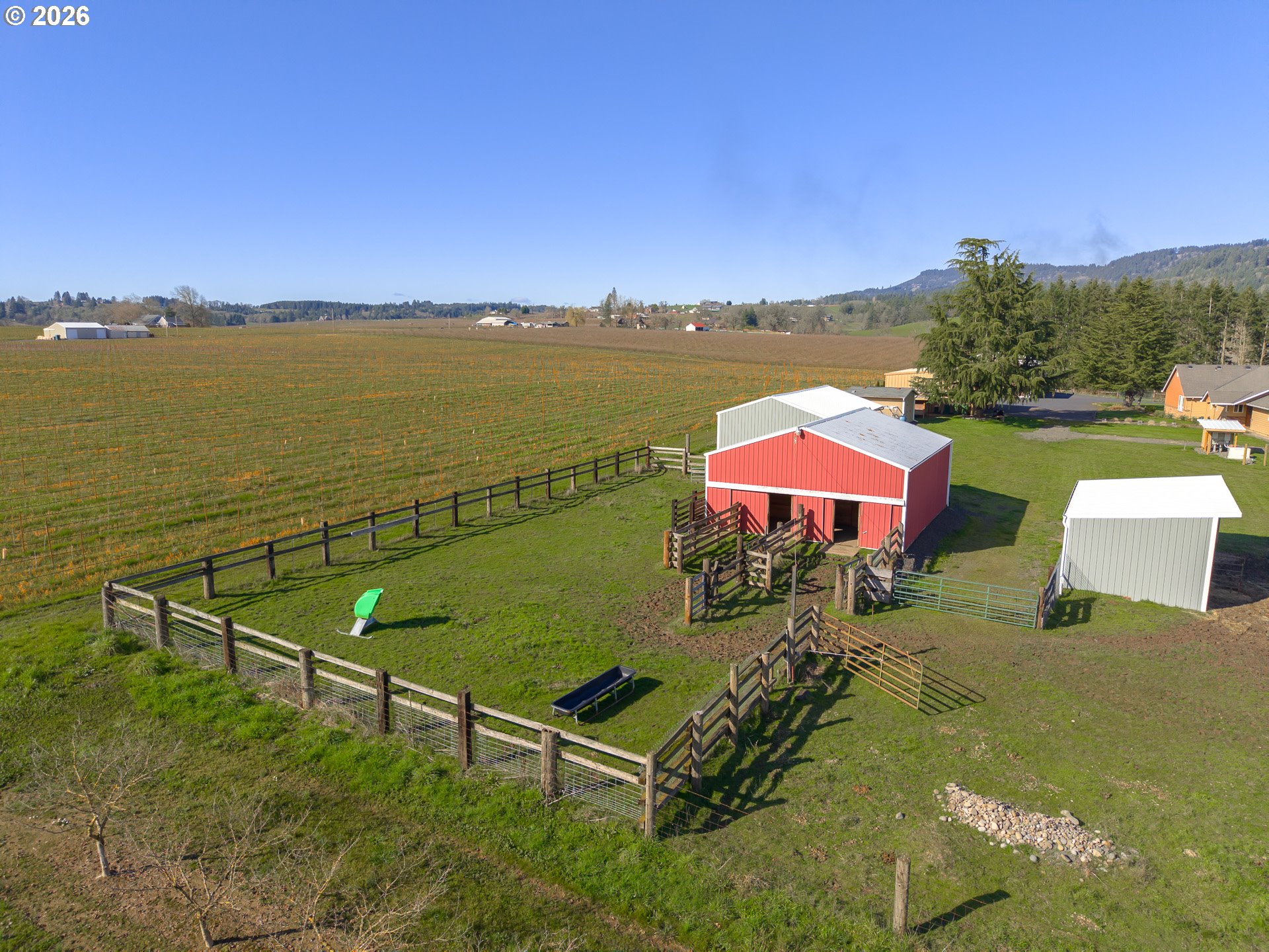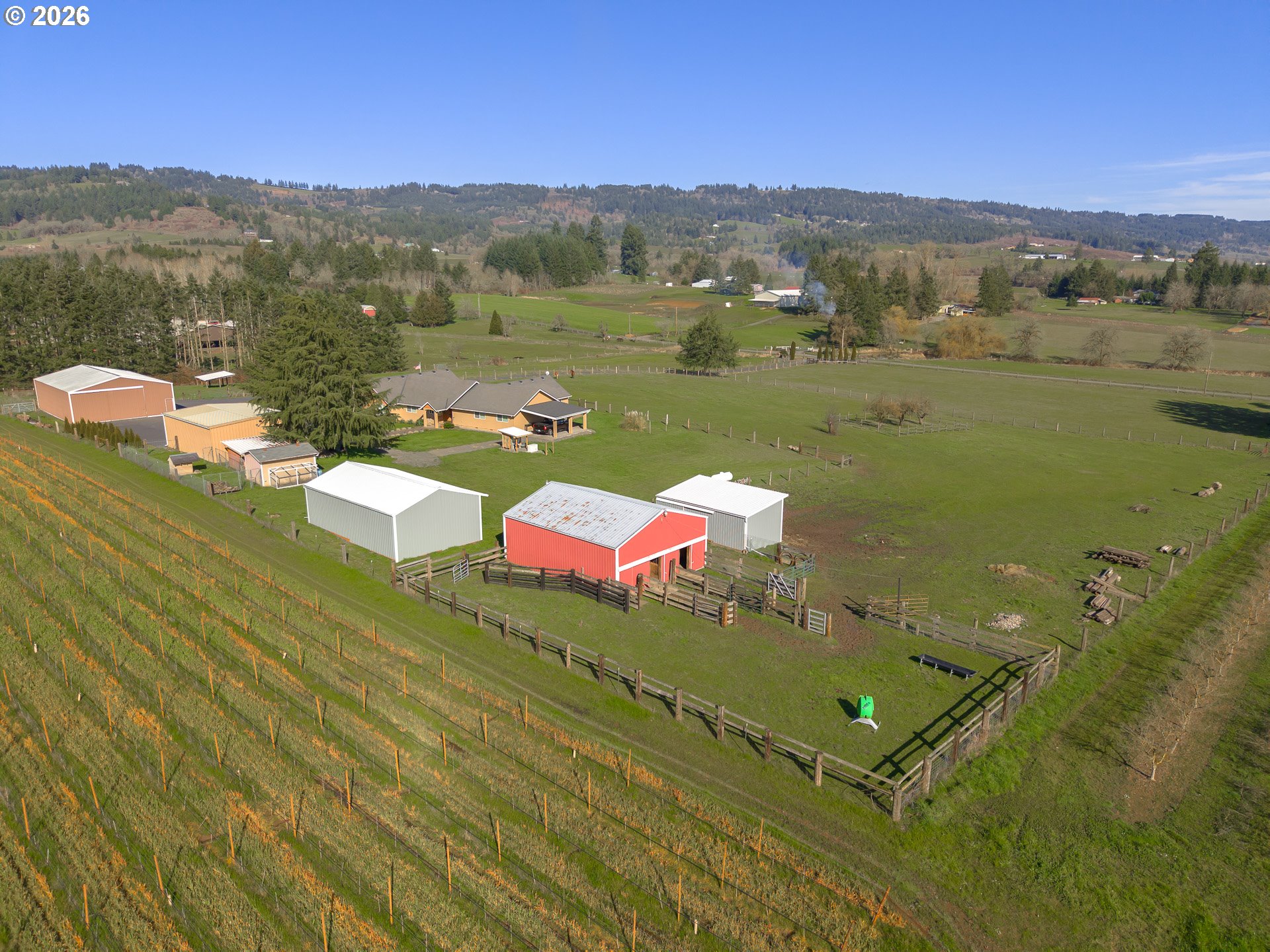 (503) 893-8874Serene country estate in the epicenter of the Willamette Valley Wine Country w/pastoral, territorial, vineyard, Chehalem Mountains & Dundee Hills views. Follow dead end road, pass meandering sheep & neighbors on horseback to the majestic 9.72 acre quintessential hobby farm offering versatility: Sprawling 3560 sq ft custom ranch, 30.5’X40’ 3 car detached garage/shop w/ ½ bath, 50 amp outlets, 35 watt RV hookup & 2 10x12 electric garage doors, 18’X24’ carport, 40’X60’ multi-purpose building w/RV storage, 50 amp outlets, 35 watt RV hookup & 2 roll doors, 24’X40’ Equipment shed, 12’X16’, Well Pump shed w/1000 gallon cistern & storage, 30’X36’ 3 stall horse barn & tack room & 16’X30’ hay barn. The property is fenced & x-fenced w/6 acres recultivated to hay/pasture, tiled drainage on West side, fruit, pine & deodar cedar trees dot the landscape coupled w/blueberry & raspberry plants, fenced dog run/garden space, fire pit, paved areas for multiple cars/trucks/work trucks. Wrap around walkway offers access to cozy outdoor sitting/viewing areas to sip coffee & wine while drinking in the tranquility/beauty in every direction. The re-modeled/up dated home has been meticulously cared for with many features replaced within the last 4 years (amenities list available). Free flowing floor plan w/4 doors to covered, stone patio overlooking pasture. Home features 4 bedrooms, office, 2.5 baths, w/new step-in Jacuzzi tub/shower, huge dining area open to gourmet kitchen w/all new appliances & lighting, pantry door & shelving, vaulted family room w/picture windows, slider to patio & new pellet stove & large laundry room w/blt-ins, desk, closet & sink. Massive vaulted primary suite w/2 walk-in closets, slider to patio w/luxurious bath w/soaker tub, walk in shower, 2 vanities & versatile bonus room or huge walk-in closet. New 24K Generac, full property generator w/owned 500-gallon propane tank keeps full property backed up. Pride of ownership defines this meticulously maintained property!