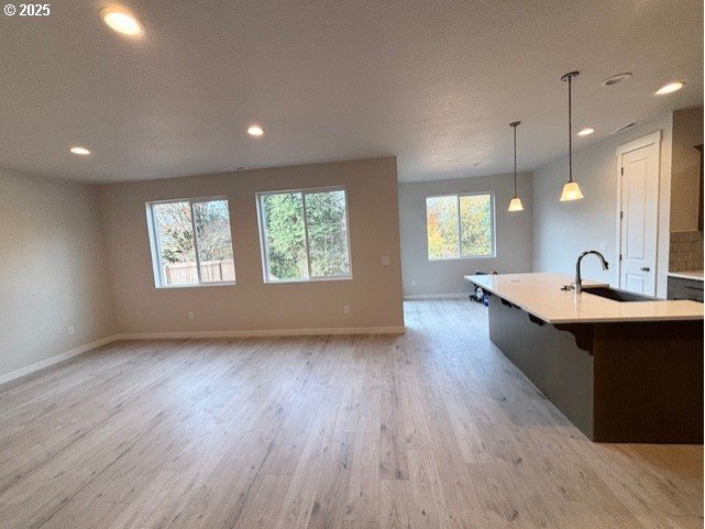Large Lot Backing to Green Space. Upgraded kitchen with quartz counter tops, farmhouse sink, Extra Large Island with seating, Gas Stainless steel Appliances and pantry. Large Great room with gas fireplace and separate dining nook- No carpet on the main level! Upper level has laundry room, large primary suite with beautiful trey ceiling, bathroom with two sinks and a spacious walk-in closet. Oversized patio and fully fenced yard backing to private wooded area.