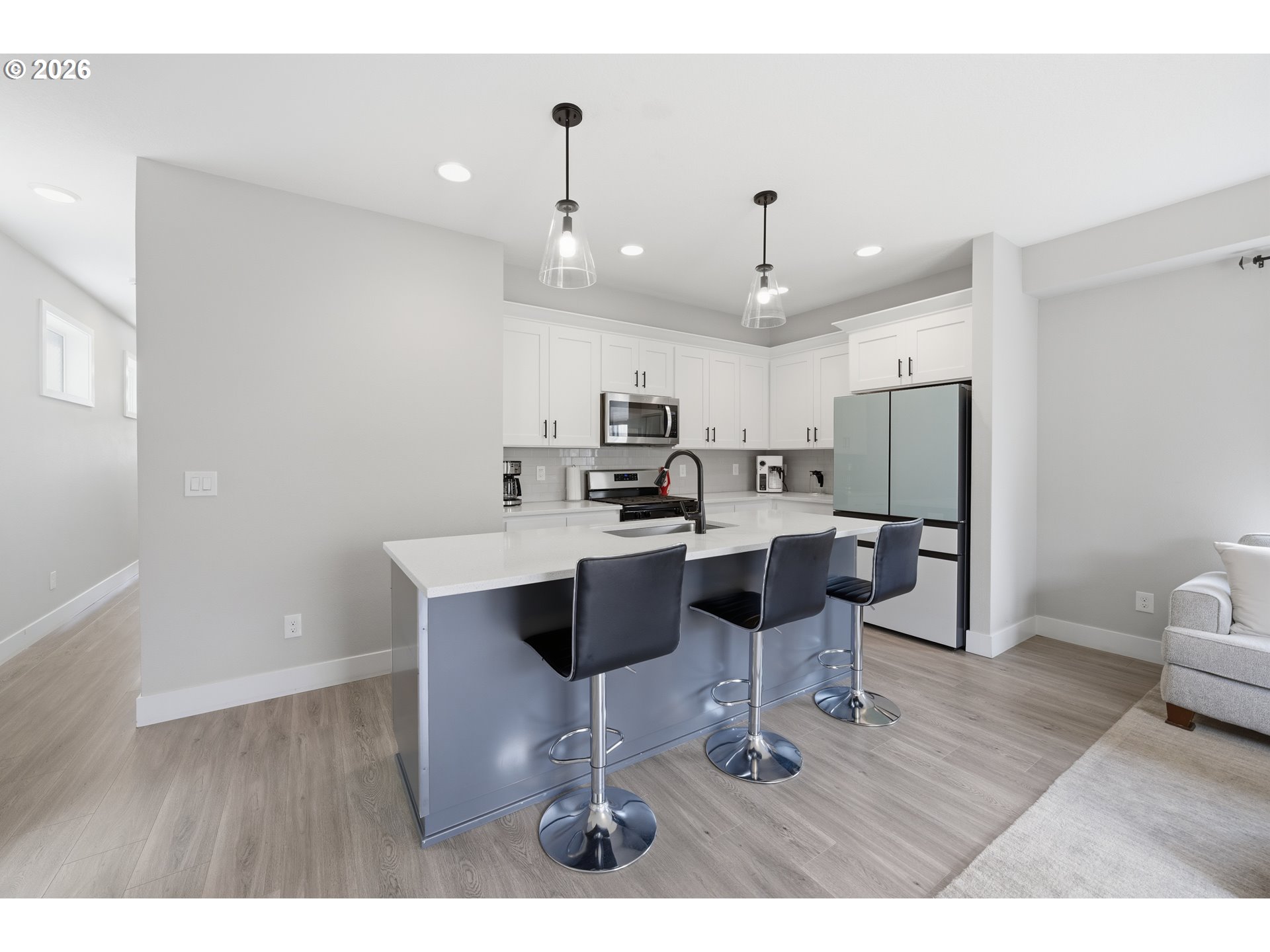 (503) 893-8874Built in 2023, this beautifully designed tri-level home offers 2,139 sq ft of modern living with scenic mountain, valley, and tree-lined views. The main level features an open-concept layout with a cozy fireplace, durable laminate flooring, and a stylish kitchen with quartz countertops, an island, and gas appliances. Upstairs, you’ll find three bedrooms, including a primary suite with an ensuite bath and a walk-in closet, along with a spacious family room for added flexibility. Complete with a fenced yard, an attached garage, and energy-efficient features such as double-pane windows and a heat pump, this home blends comfort, style, and functionality in a peaceful setting.