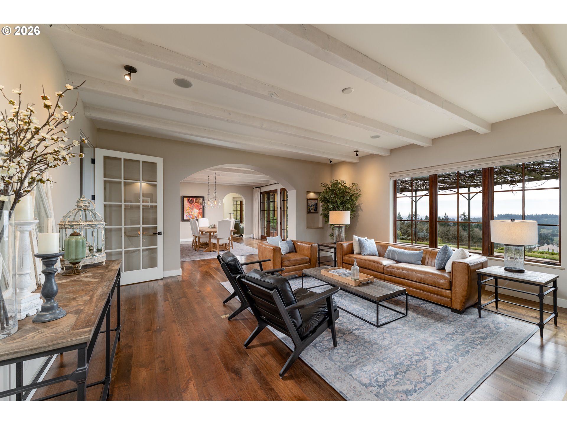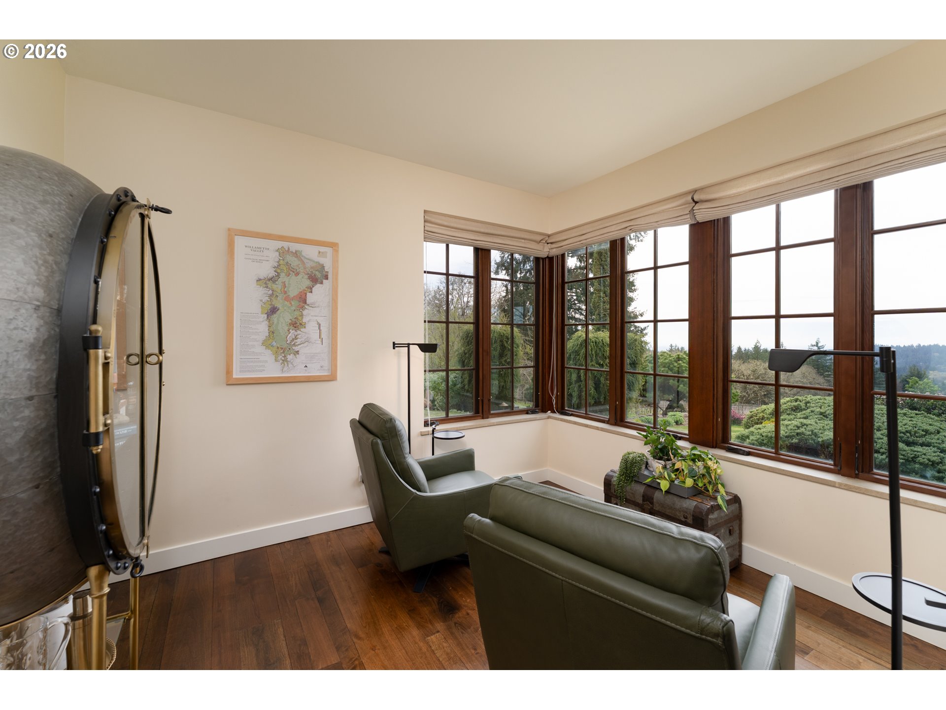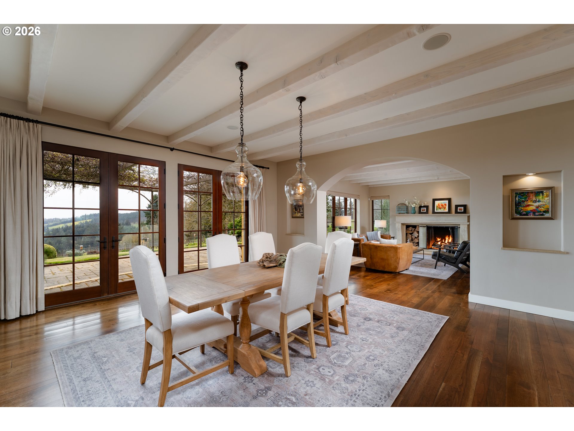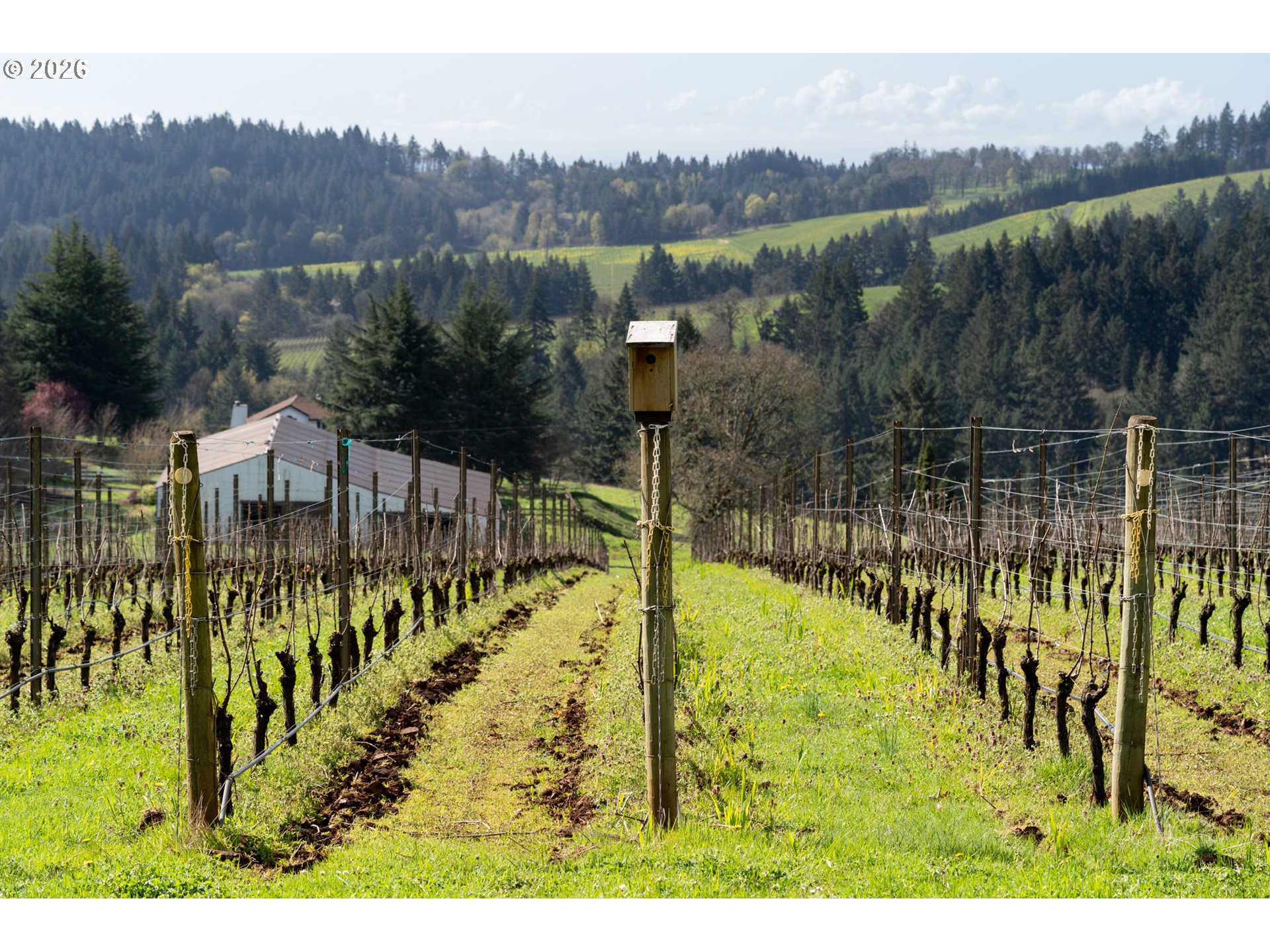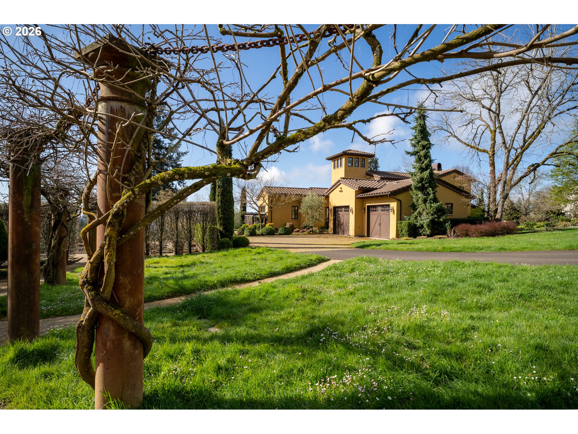 Perched in the heart of the coveted Dundee Hills AVA, this extraordinary 7 acre vineyard estate captures the charm of Southern France while embracing the beauty of Oregon wine country. Thoughtfully designed and masterfully built, the home evokes a Provençal countryside retreat, blending timeless architecture with modern sustainability and refined comfort. Lavender-lined pathways, stone accents, and curated gardens create a memorable sense of arrival, while inside, reclaimed walnut floors, whitewashed pine beams, and a hand-crafted limestone fireplace establish a warm, elevated aesthetic. Expansive French doors flood the home with natural light and frame sweeping vineyard and valley views. Offering approximately 3,983 square feet, the residence includes a main-level primary suite, a gourmet kitchen with Wolf and Miele appliances, a media/library room, and a striking spiral staircase leading to a lookout tower. A 700-bottle temperature-controlled wine cellar enhances the experience for collectors and entertainers alike. Outdoors, enjoy a trellis-covered patio, beautifully designed gardens, and multiple spaces for gathering and relaxation. A charming potting shed with reclaimed wood and vintage windows provides a perfect gardening retreat. The detached 1220 square-foot structure, finished to match the main home, features a wood-burning stove and flexible open space ideal for a tasting room, studio, or workshop, along with two built-in office spaces and a bathroom. The 2.8-acre vineyard, planted with Pinot Noir and Chardonnay, offers both beauty and potential. Built with sustainability in mind, this LEED-influenced home includes solar power and high-performance systems. This is more than a home, it’s a rare opportunity to live immersed in the beauty, tranquility, and lifestyle of Oregon’s premier wine region.