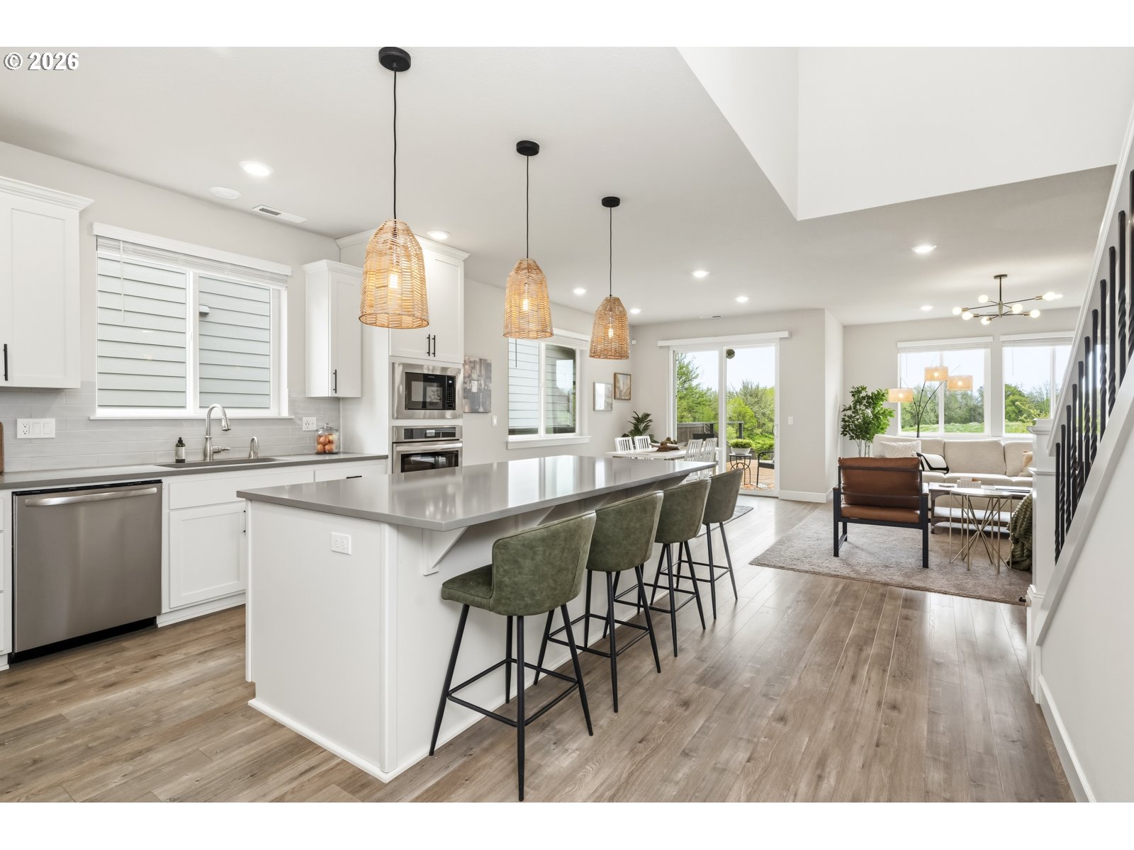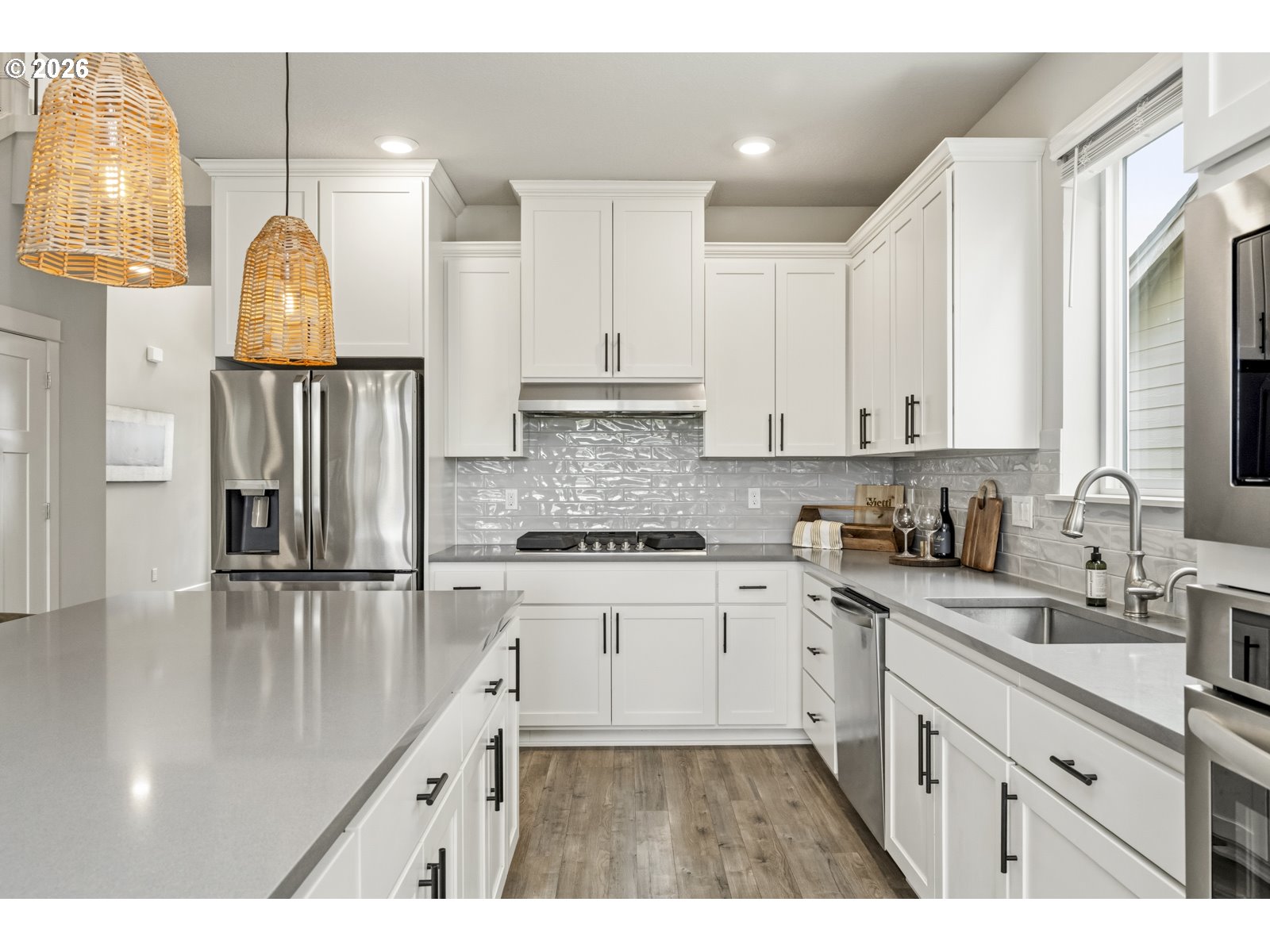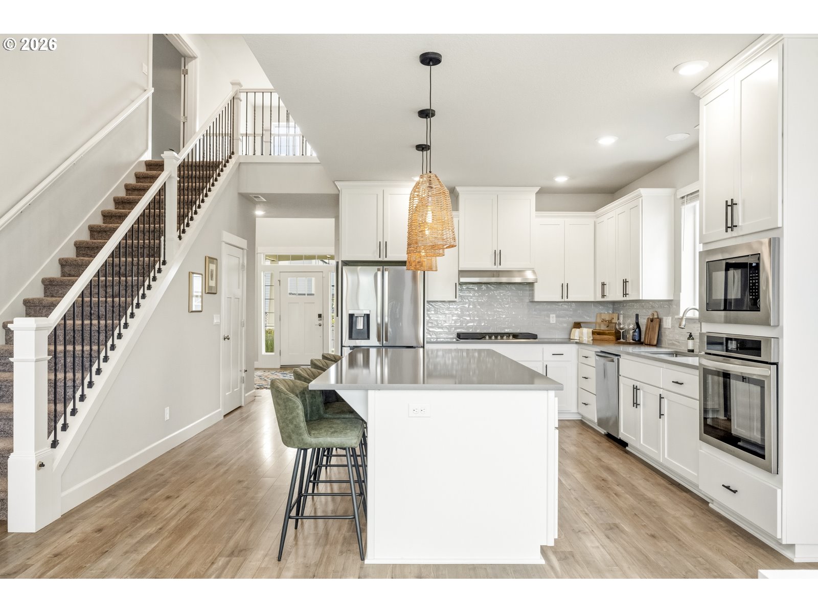 Open Saturday May 2nd from 11:00am-1:00pm. A stylized like-new home with high ceilings, open kitchen with an oversized island and newer appliances, three bedrooms with a bonus room and office, upgraded backyard, two car garage with epoxy floors and a Level II EV Charger, all in a developing neighborhood with great community amenities. The flow of the home begins at the entryway that’s open to second floor and leads to an office and half bath, or straight to the kitchen. The kitchen has quartz countertops, a five-burner gas cooktop, breakfast bar, instant hot water, tons of cabinet space, a walk-in pantry and is open to the living and dining areas. The living room has built-in shelving and a fireplace with a great view to the backyard. Just off the dining area is a slider to the back deck and fully fenced yard that was previously sloped but is now built up with a retaining wall making room for a level lawn and gazebo. The primary suite has vaulted ceilings and is on the main floor. Its ensuite bathroom has dual sinks, a walk-in shower, soaking tub, closed off toilet room and walk-in closet. The main floor also has the laundry room with a washer and dryer that will stay with the home (if a buyer desires). Upstairs has a huge bonus room, two bedrooms and full bathroom. Most light fixtures throughout the home have been upgraded and there have been individualized touches done to the aesthetic. Schedule a tour to see this home in person.
