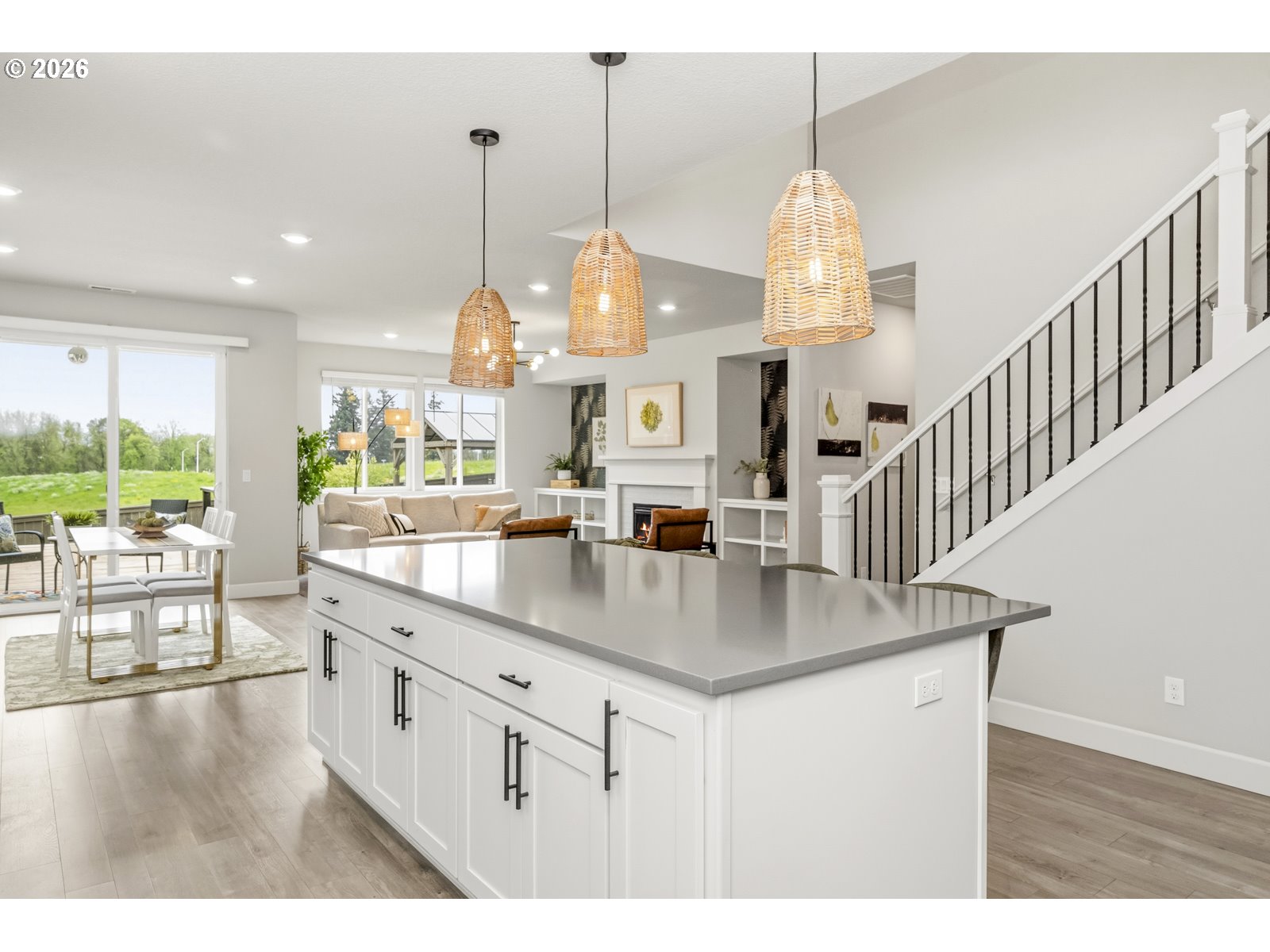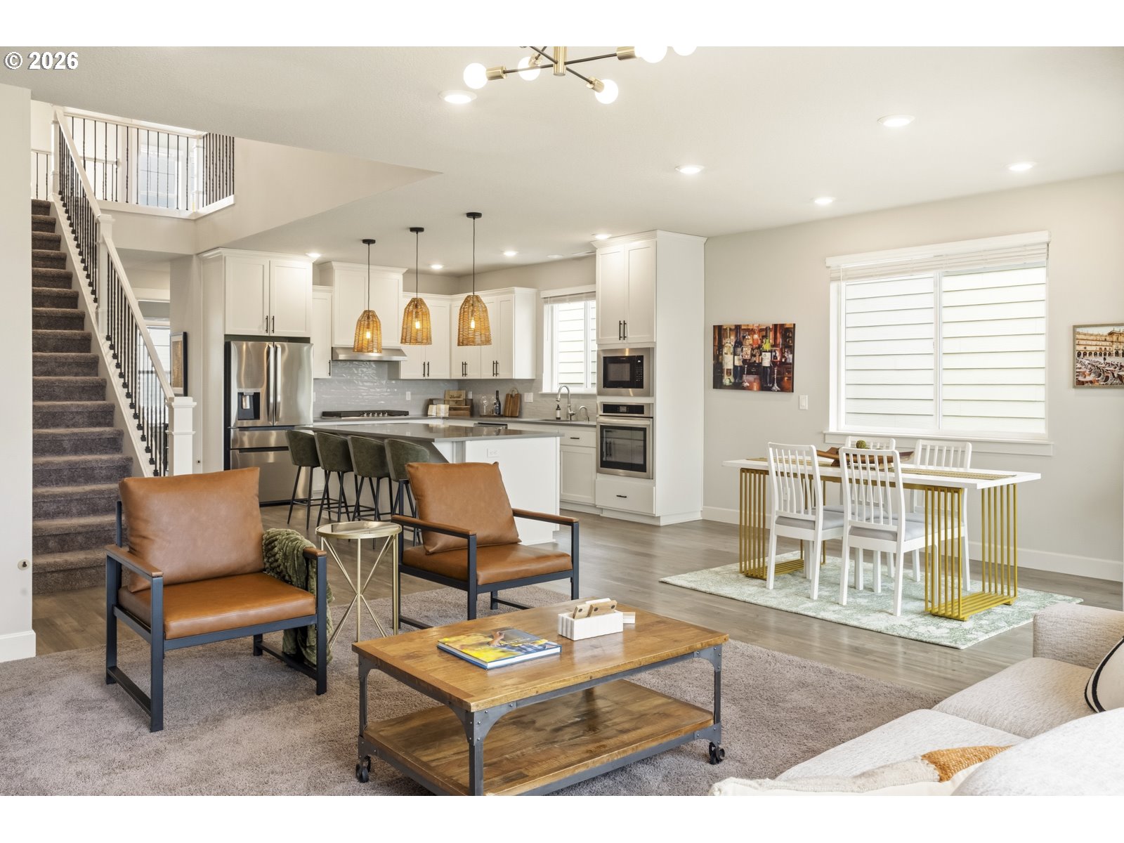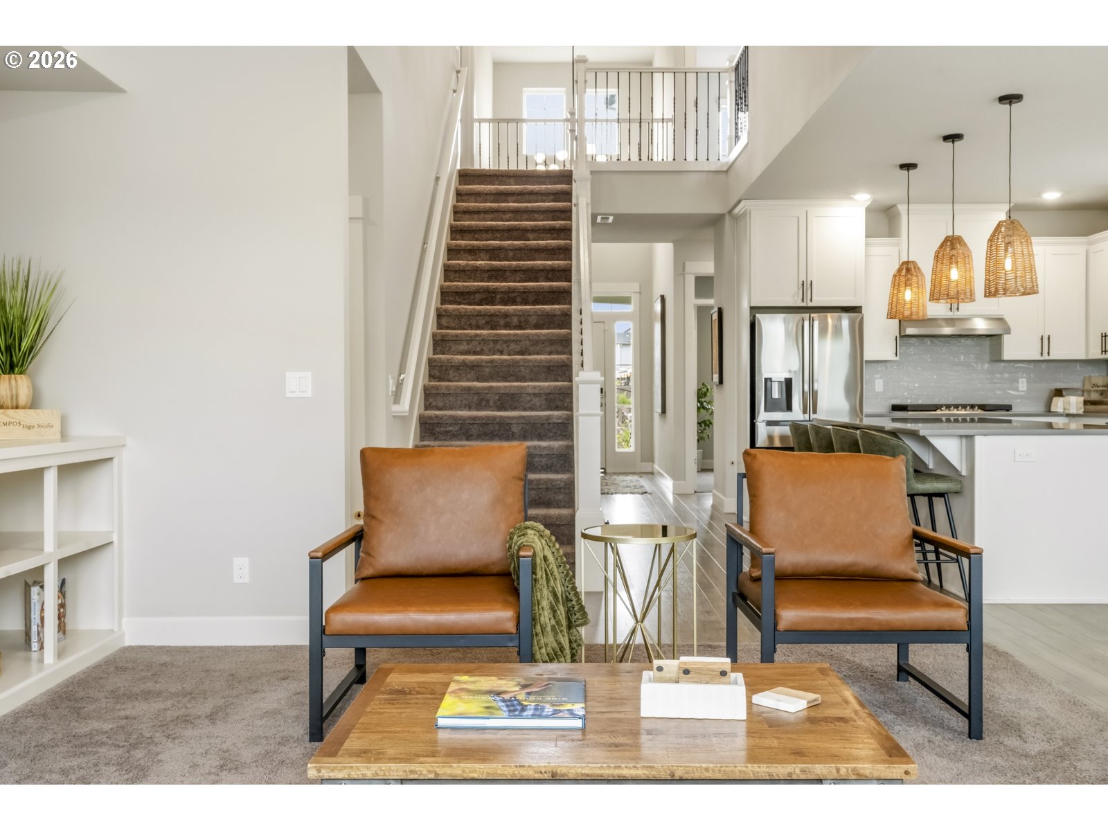 Open Saturday May 2nd from 11:00am-1:00pm. A stylized like-new home with high ceilings, open kitchen with an oversized island and newer appliances, three bedrooms with a bonus room and office, upgraded backyard, two car garage with epoxy floors and a Level II EV Charger, all in a developing neighborhood with great community amenities. The flow of the home begins at the entryway that’s open to second floor and leads to an office and half bath, or straight to the kitchen. The kitchen has quartz countertops, a five-burner gas cooktop, breakfast bar, instant hot water, tons of cabinet space, a walk-in pantry and is open to the living and dining areas. The living room has built-in shelving and a fireplace with a great view to the backyard. Just off the dining area is a slider to the back deck and fully fenced yard that was previously sloped but is now built up with a retaining wall making room for a level lawn and gazebo. The primary suite has vaulted ceilings and is on the main floor. Its ensuite bathroom has dual sinks, a walk-in shower, soaking tub, closed off toilet room and walk-in closet. The main floor also has the laundry room with a washer and dryer that will stay with the home (if a buyer desires). Upstairs has a huge bonus room, two bedrooms and full bathroom. Most light fixtures throughout the home have been upgraded and there have been individualized touches done to the aesthetic. Schedule a tour to see this home in person.