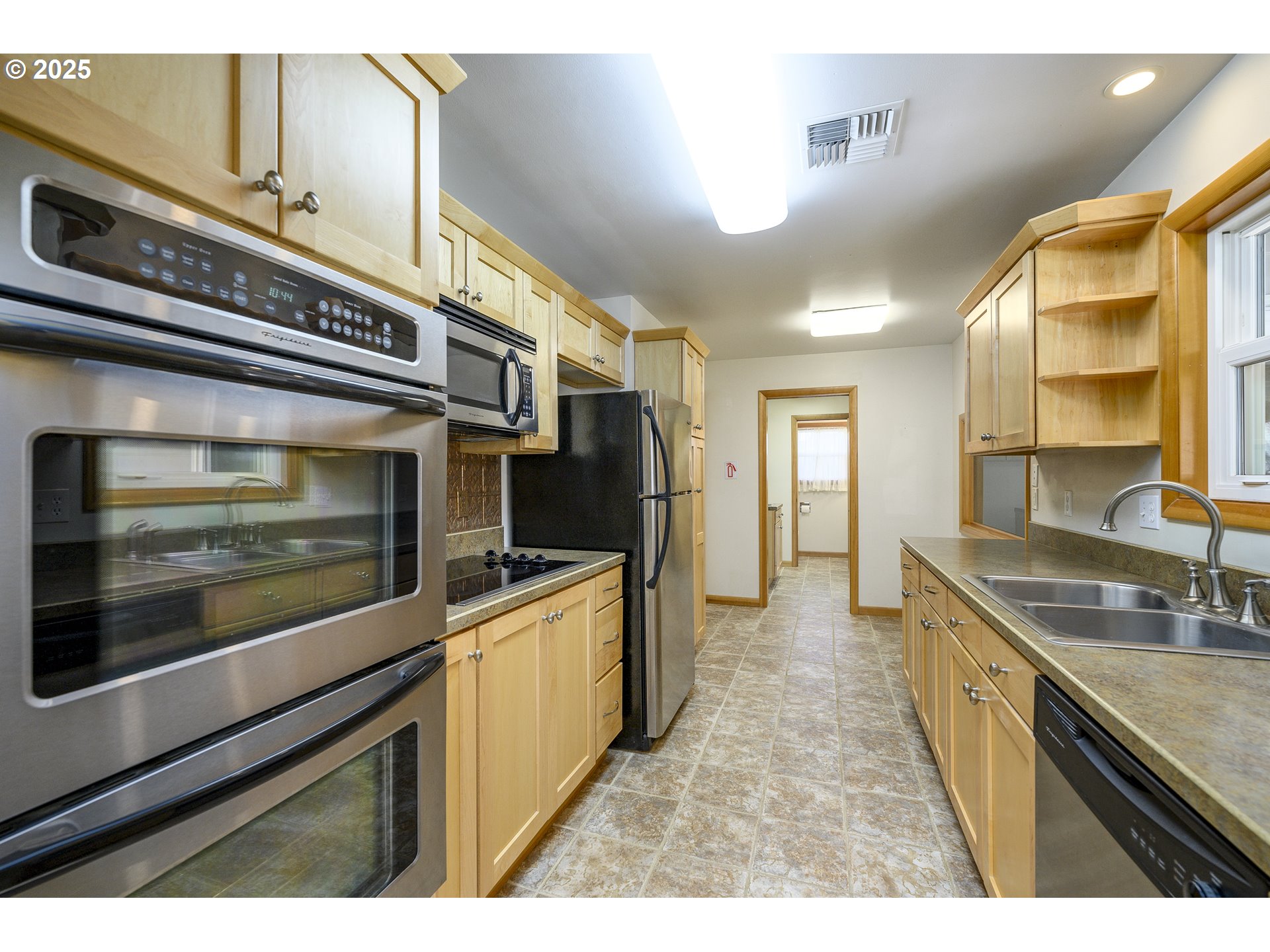 Discover this inviting 1,624 sq. ft., 3-bedroom, 1.5-bathroom home, perfectly situated near schools, shopping, and vibrant downtown McMinnville. This single-level gem seamlessly blends original charm with modern updates, offering both comfort and convenience.Step inside to find beautiful original hardwood floors that add warmth and character throughout. The updated kitchen features stainless steel appliances, double ovens, and ample storage—perfect for cooking and entertaining. A dedicated laundry room with a sink adds extra functionality.A spacious bonus room provides endless possibilities—use it as a family room, home office, or hobby space! Outside, enjoy the large covered patio overlooking a fully fenced backyard, ideal for relaxation, play, or entertaining year-round. This home has been thoughtfully maintained, preserving its original quality while incorporating modern amenities for today’s lifestyle. New roof, newer HVAC system.