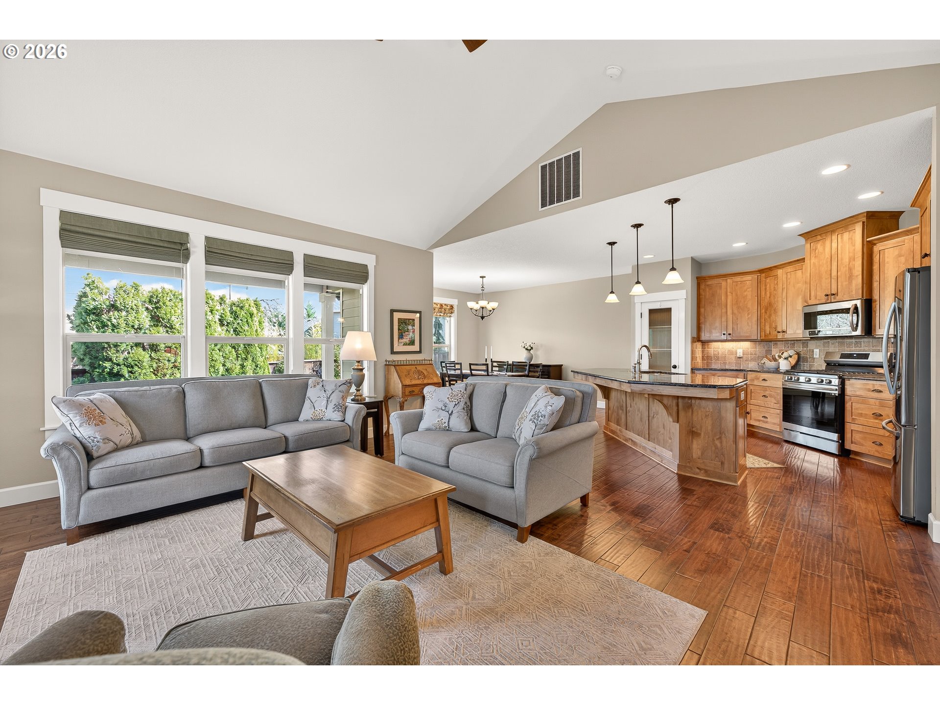 This McMinnville home offers the kind of living that’s becoming harder to find — primarily one-level with just the right amount of extra space. Located in the desirable Michelbook Meadows neighborhood, you’ll enjoy a setting of well-maintained homes and pride of ownership. With 2,350 sq ft, the main level features 3 bedrooms plus a dedicated office. Upstairs, a spacious 4th bedroom with its own bath and closet provides a perfect private space for guests, hobbies, or extended stays. The open-concept great room is designed for easy living, with vaulted ceilings, a gas fireplace, and seamless flow between the kitchen, dining, and living areas. The kitchen includes a large island with bar seating, pantry, and gas range. The garage offers an extra-deep tandem bay—perfect for a workshop, hobbies, or exceptional storage. Outside, everything is already in place — enjoy a fully fenced, landscaped backyard with a covered patio and additional deck, plus a covered front porch and charming water feature. Situated on a 0.21-acre corner lot, the yard offers usable space without overwhelming upkeep. A rare opportunity for low-maintenance, single-level living in one of McMinnville’s most established and sought-after neighborhoods.