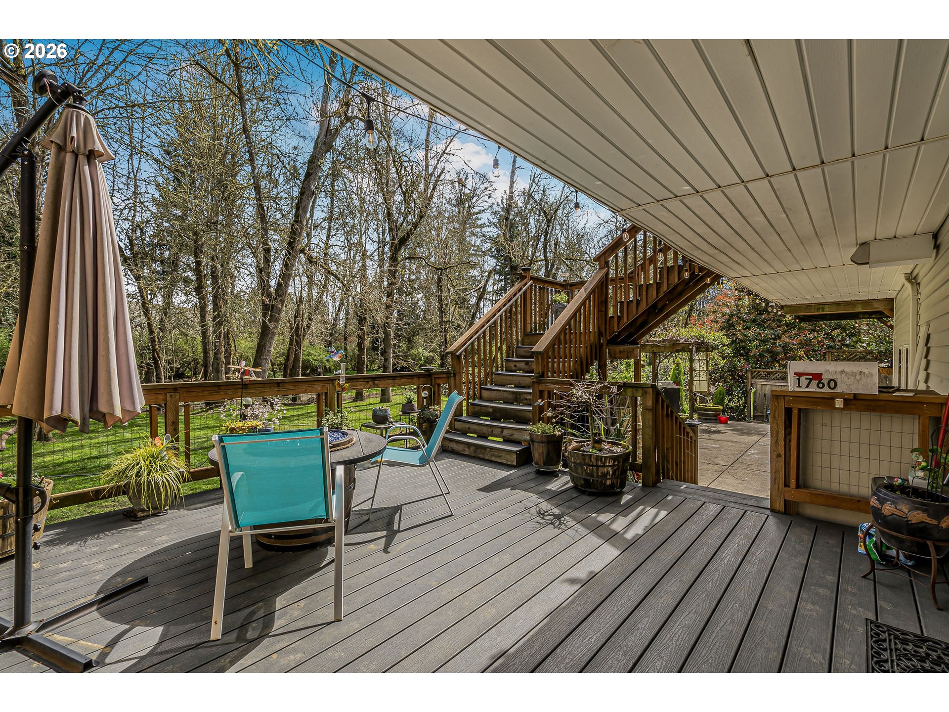 Tucked at the end of a quiet cul-de-sac, this thoughtfully updated 3 bedroom, 3 full bath home sits on a rare and spacious .58-acre lot and offers a blend of privacy, flexibility, and indoor-outdoor living.Designed across three levels, the layout provides both separation and versatility. The upper level features a private primary suite with dual sinks, a soaking tub, separate shower, and a deep walk-in closet. The main level welcomes you with vaulted ceilings and an open-concept living, kitchen, and dining area, creating a bright and inviting central gathering space. The lower level includes an additional bedroom, full bath, and second living area, ideal for guests, roommates, or multi-generational living.One of the home’s standout features is its seamless connection to the outdoors. Multiple rooms offer direct access to a wraparound deck, creating an easy indoor-outdoor flow. The property has been extensively improved, with the current owner clearing overgrowth, planting trees, reseeding, and transforming the backyard into a peaceful, park-like setting. Enjoy a creek at the back of the property, multiple fire pit areas, and a pergola-covered space perfect for relaxing or entertaining.A spacious driveway provides ample parking, including room for RV parking. The cul-de-sac setting offers additional space to enjoy, with room for recreation and gathering just beyond your doorstep.