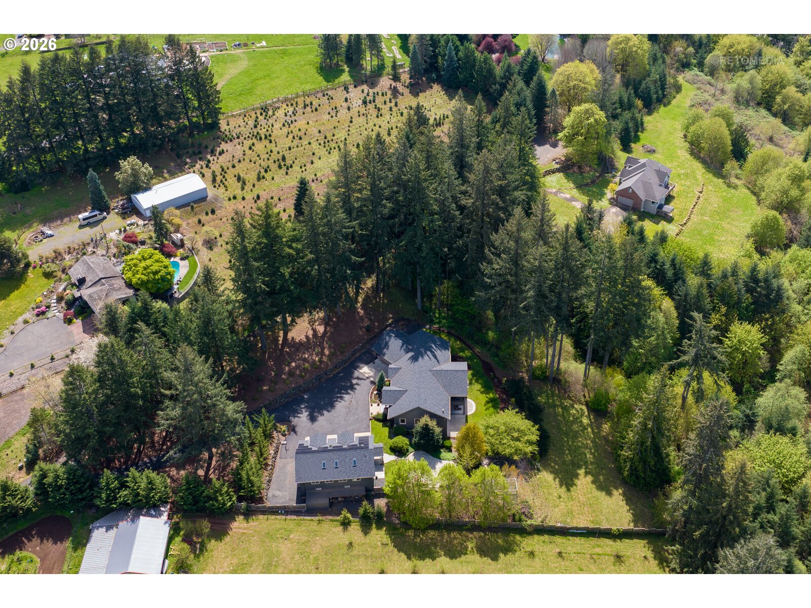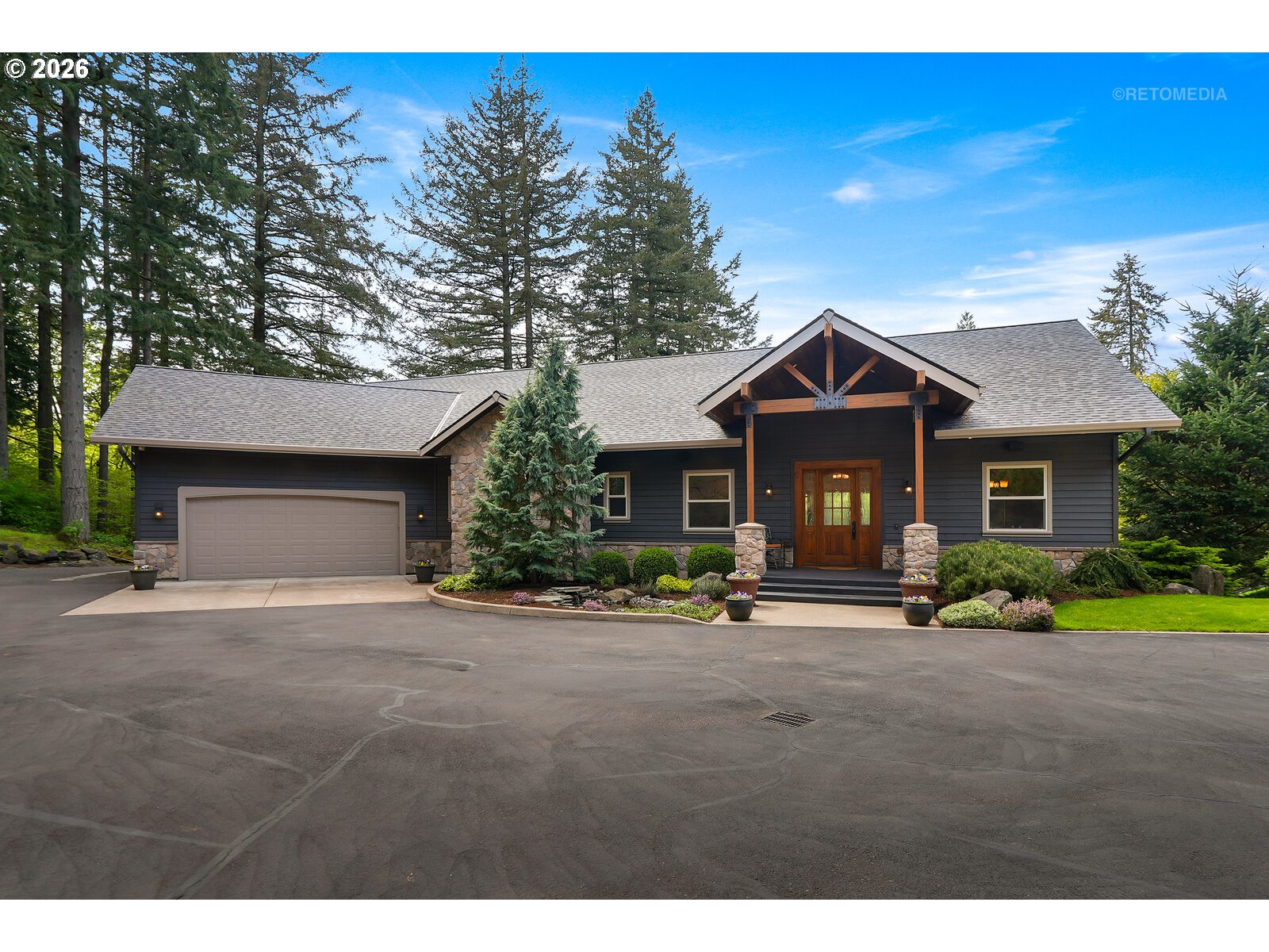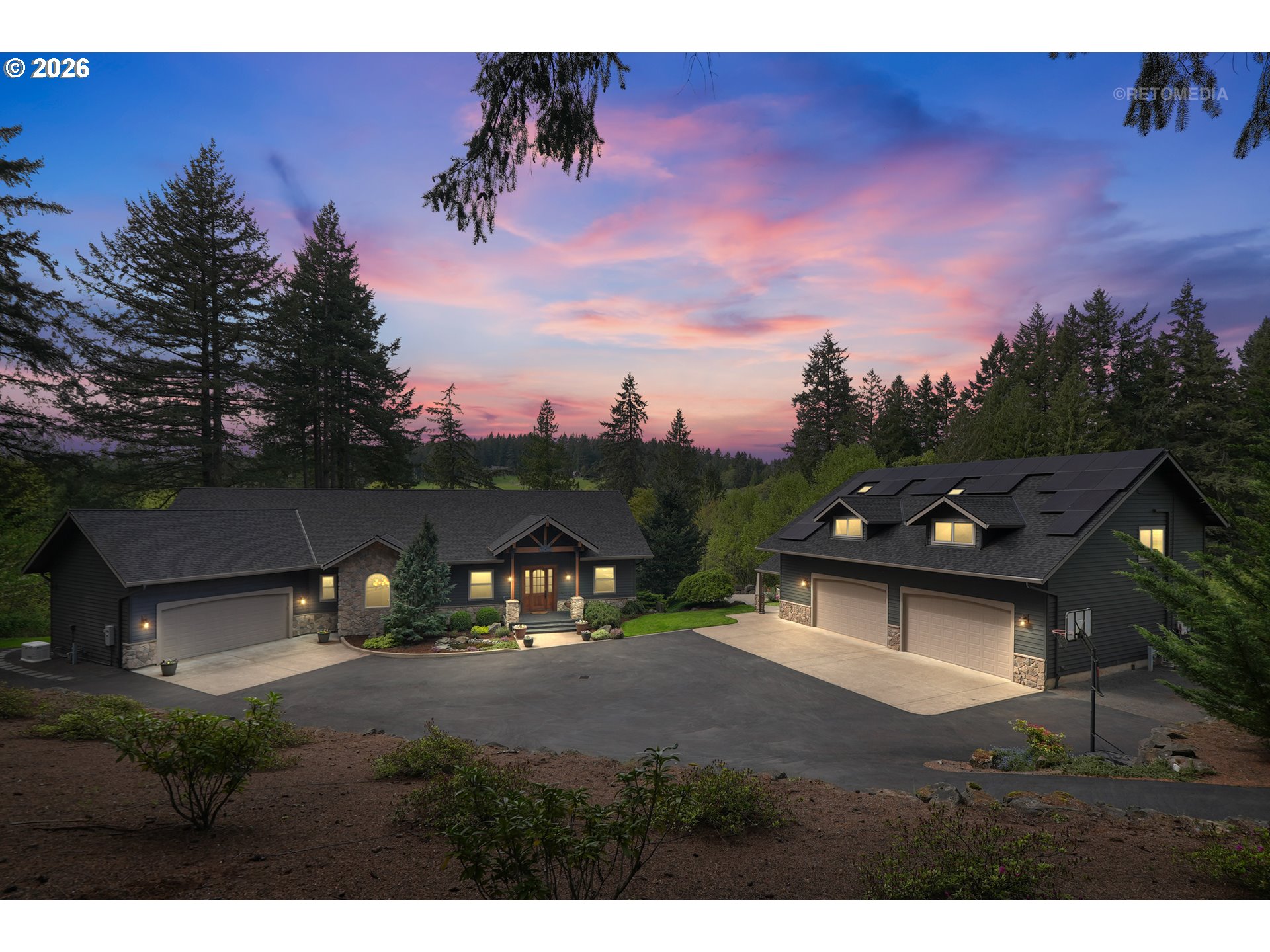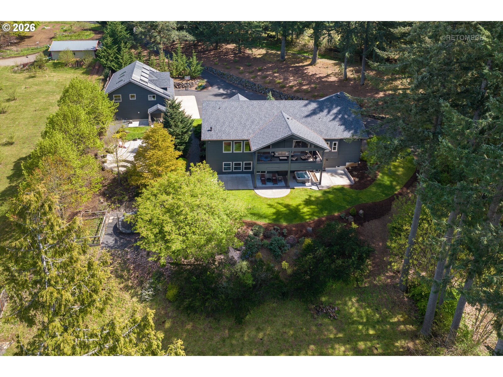 (503) 893-8874Close-in country estate, Sherwood School District, 6 bedrooms, primary bedroom on the main, 6 car garage, motorcourt, RV parking, detached guest house, and VIEW! And it's not too good to be true! This stunning setting in Sherwood Oregon's sought after wine country offers a perfect blend of luxury and natural beauty. Embellished in stone, natural tile, and warm wood accents, this architectural masterpiece boasts a magnificent floor plan designed to live well and entertain in style! Imagine tranquil moments on the back deck or front porch, surrounded by sky-reaching trees... warming up by the wind-sheltered fire-pit where the concrete radiates warmth while you take in the natural views all around you. It's incredible here! The property's top-quality architecture and finishes are evident throughout from the gourmet kitchen adorned with stone and tile accents, to the rich cabinetry and built-ins. The kitchen and dining room flow into the spacious living room with floor to ceiling fireplace and walls of windows that frame the views. You'll also find the primary bedroom on the main, and downstairs, a spacious family/bonus room providing additional space for relaxation, activities watching movies, hosting, and endless possibilities. The estate's expansive outdoor spaces are a testament to its thoughtful design, offering so much room for enjoyment and the captivating presence of nature and wildlife, including the serene ambiance and sound of trickling water from the nearby creek.The expansive driveway affords plenty of parking and play space, and the property's clever positioning lends to its grand appeal, offering the essence of endless nature, with less maintenance required. A detached garage with separate living quarters above rounds out the estate. The carriage house provides versatile options for guests or additional living space. *Square Footage, bedroom and bath quantified for main house and ADU reflecting total living space. A complete list of updates is on file.