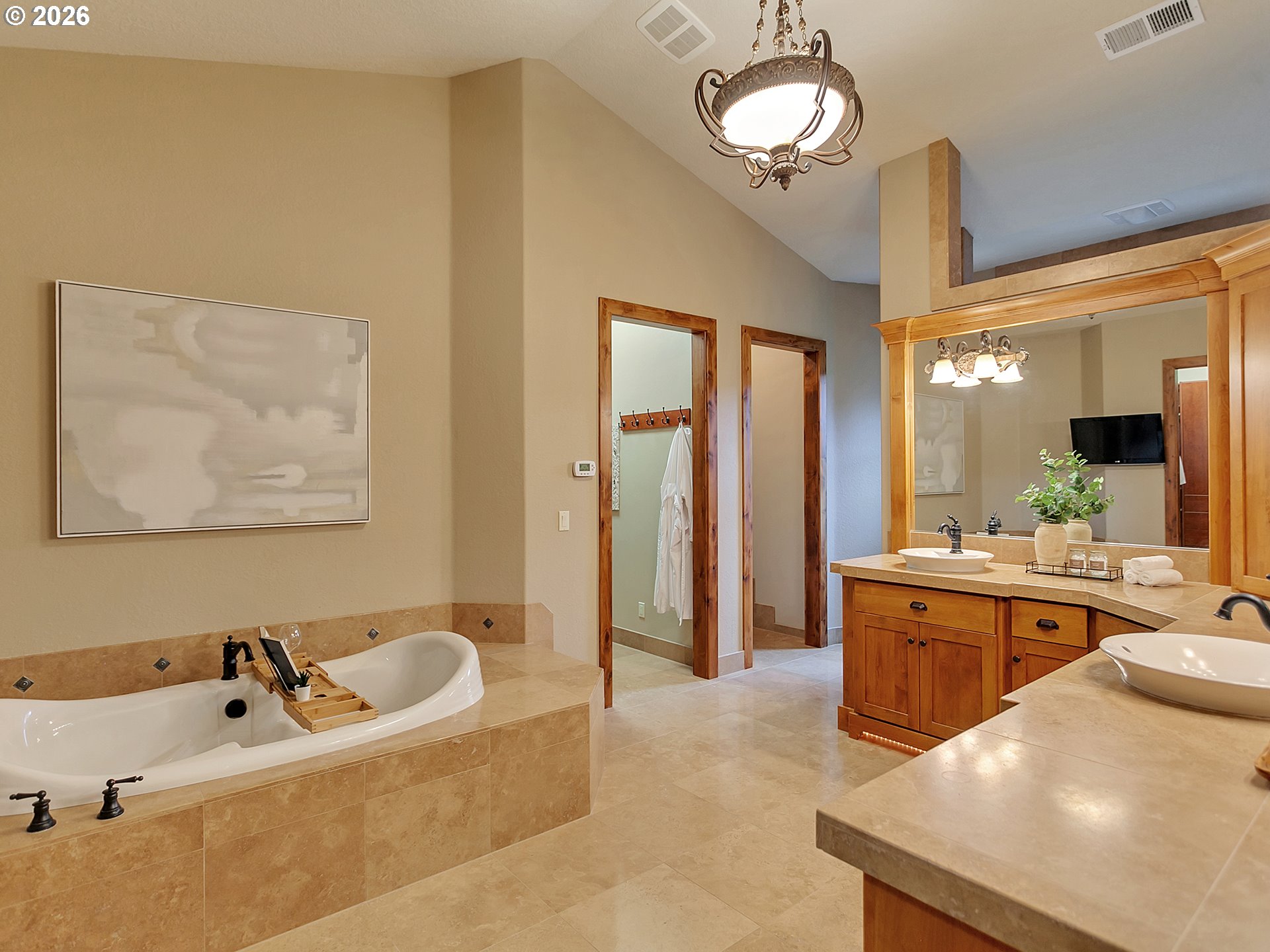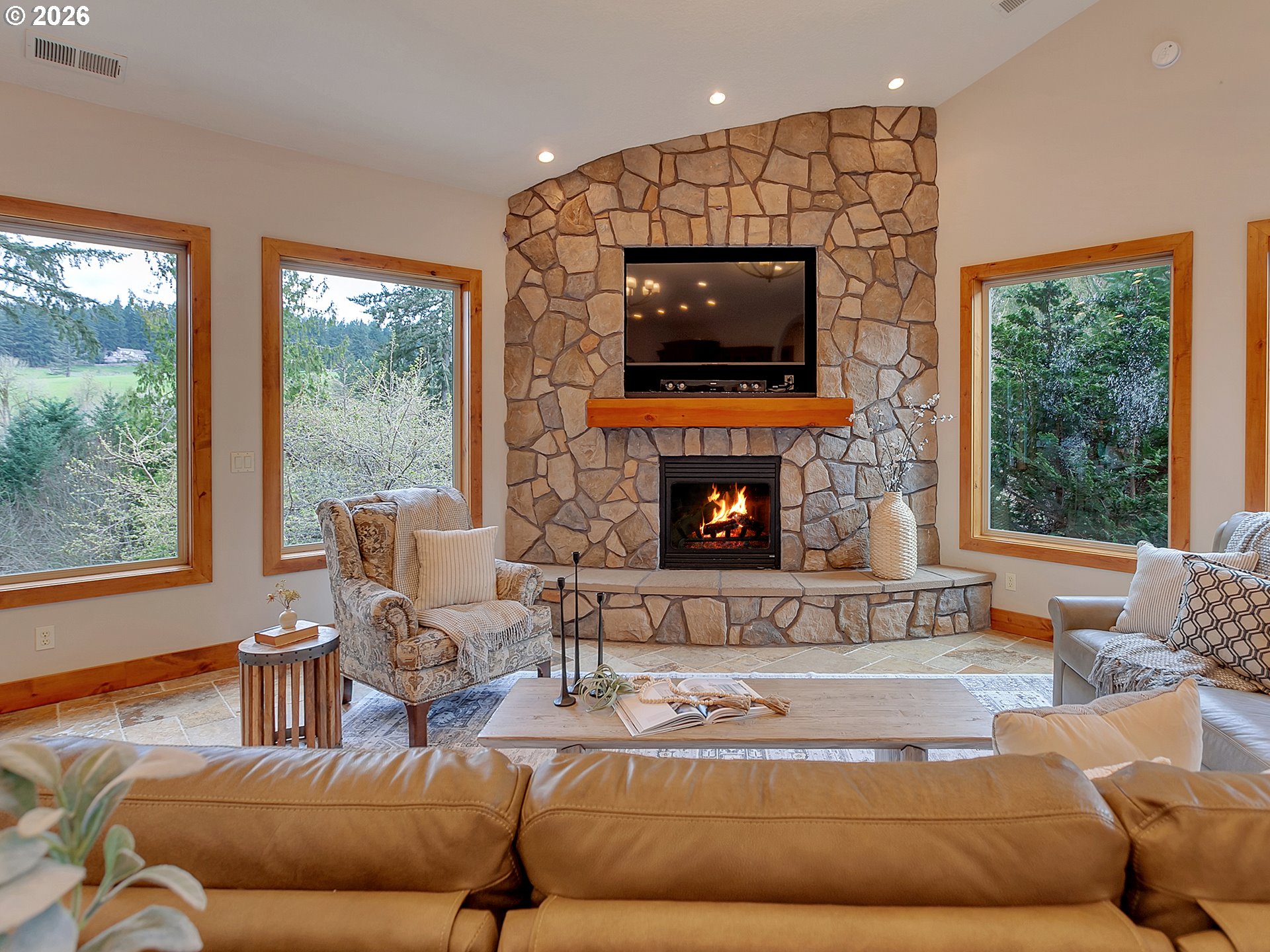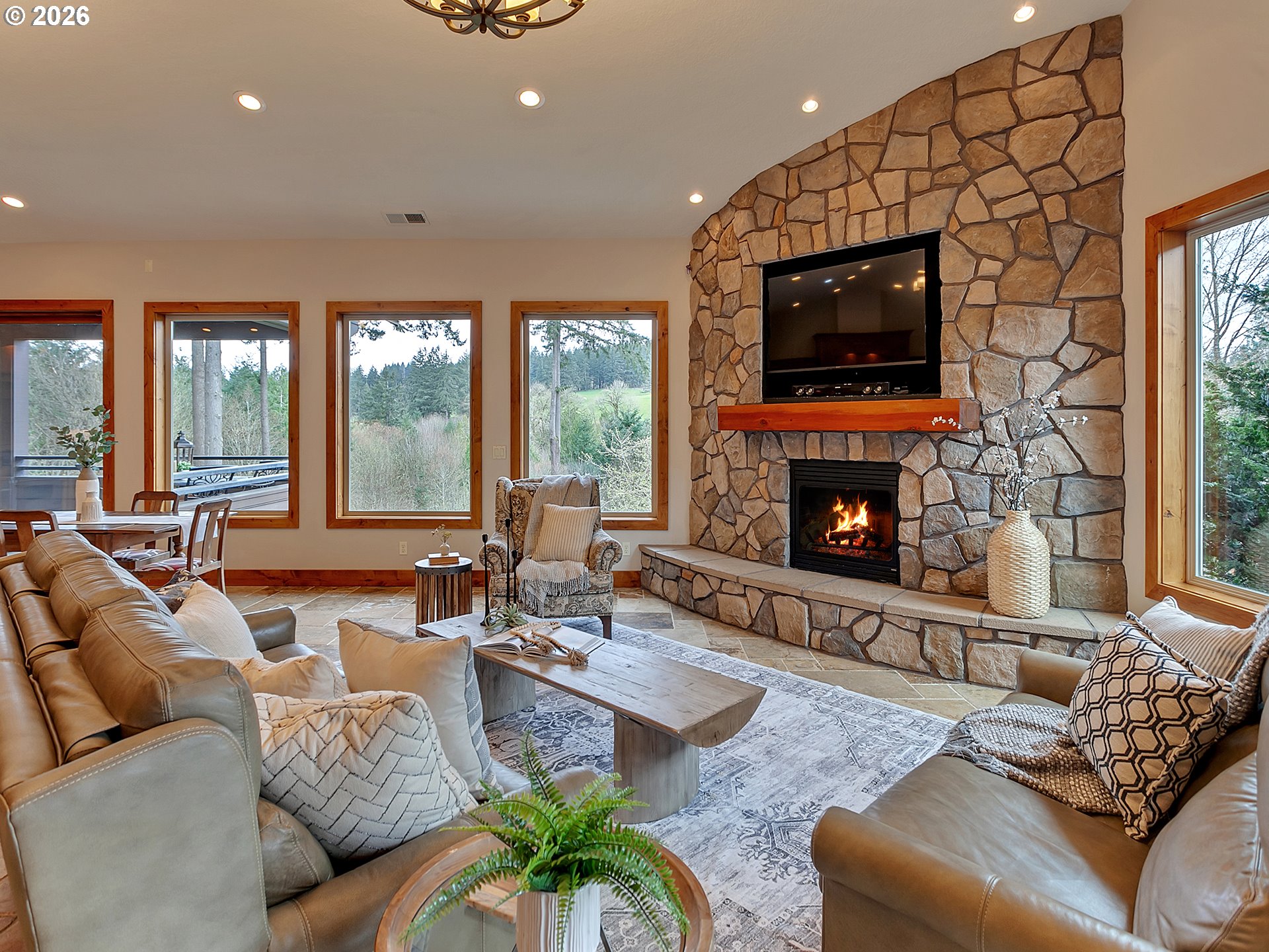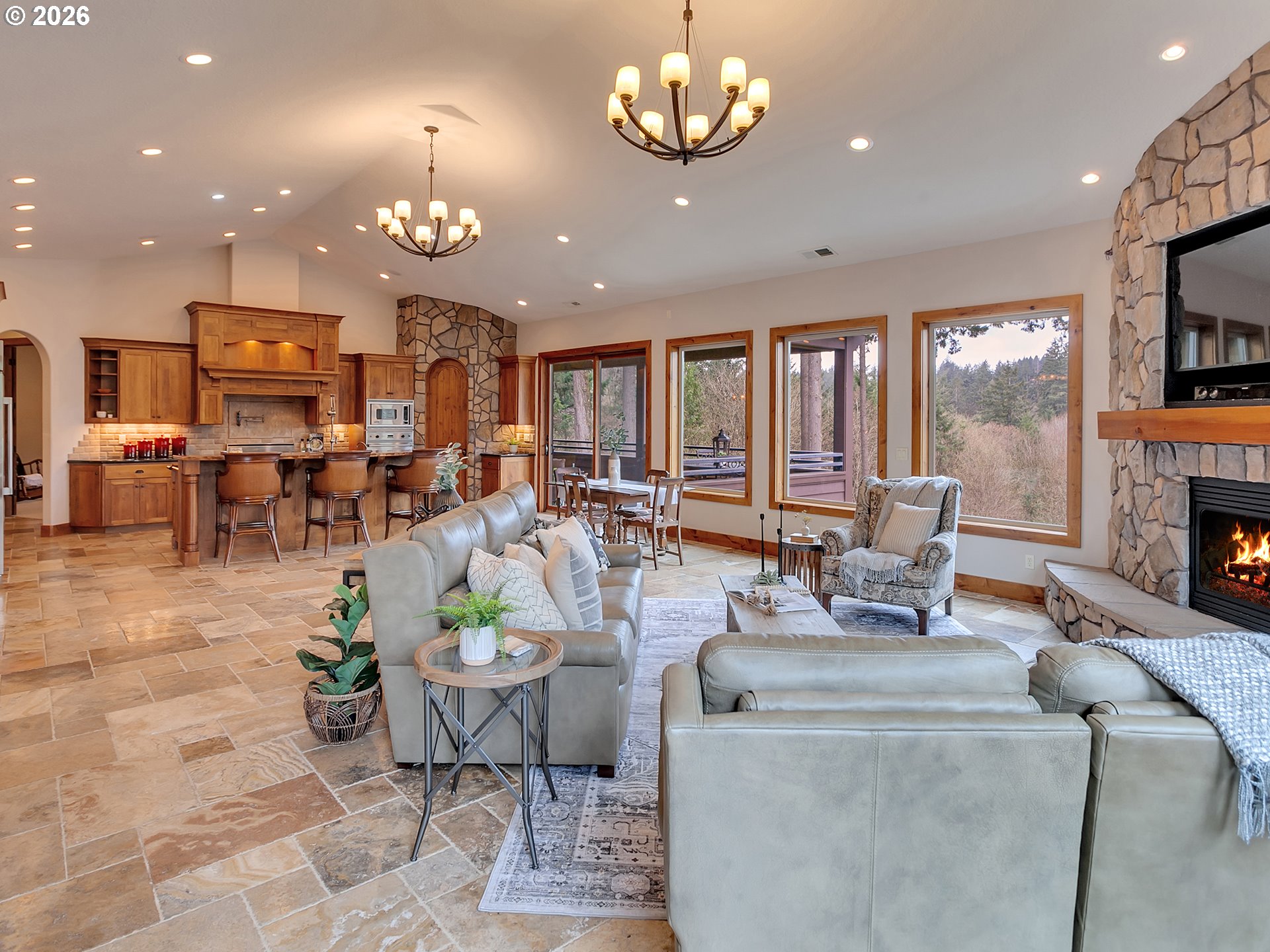 (503) 893-8874Close-in country estate, Sherwood School District, 6 bedrooms, primary bedroom on the main, 6 car garage, motorcourt, RV parking, detached guest house, and VIEW! And it's not too good to be true! This stunning setting in Sherwood Oregon's sought after wine country offers a perfect blend of luxury and natural beauty. Embellished in stone, natural tile, and warm wood accents, this architectural masterpiece boasts a magnificent floor plan designed to live well and entertain in style! Imagine tranquil moments on the back deck or front porch, surrounded by sky-reaching trees... warming up by the wind-sheltered fire-pit where the concrete radiates warmth while you take in the natural views all around you. It's incredible here! The property's top-quality architecture and finishes are evident throughout from the gourmet kitchen adorned with stone and tile accents, to the rich cabinetry and built-ins. The kitchen and dining room flow into the spacious living room with floor to ceiling fireplace and walls of windows that frame the views. You'll also find the primary bedroom on the main, and downstairs, a spacious family/bonus room providing additional space for relaxation, activities watching movies, hosting, and endless possibilities. The estate's expansive outdoor spaces are a testament to its thoughtful design, offering so much room for enjoyment and the captivating presence of nature and wildlife, including the serene ambiance and sound of trickling water from the nearby creek.The expansive driveway affords plenty of parking and play space, and the property's clever positioning lends to its grand appeal, offering the essence of endless nature, with less maintenance required. A detached garage with separate living quarters above rounds out the estate. The carriage house provides versatile options for guests or additional living space. *Square Footage, bedroom and bath quantified for main house and ADU reflecting total living space. A complete list of updates is on file.