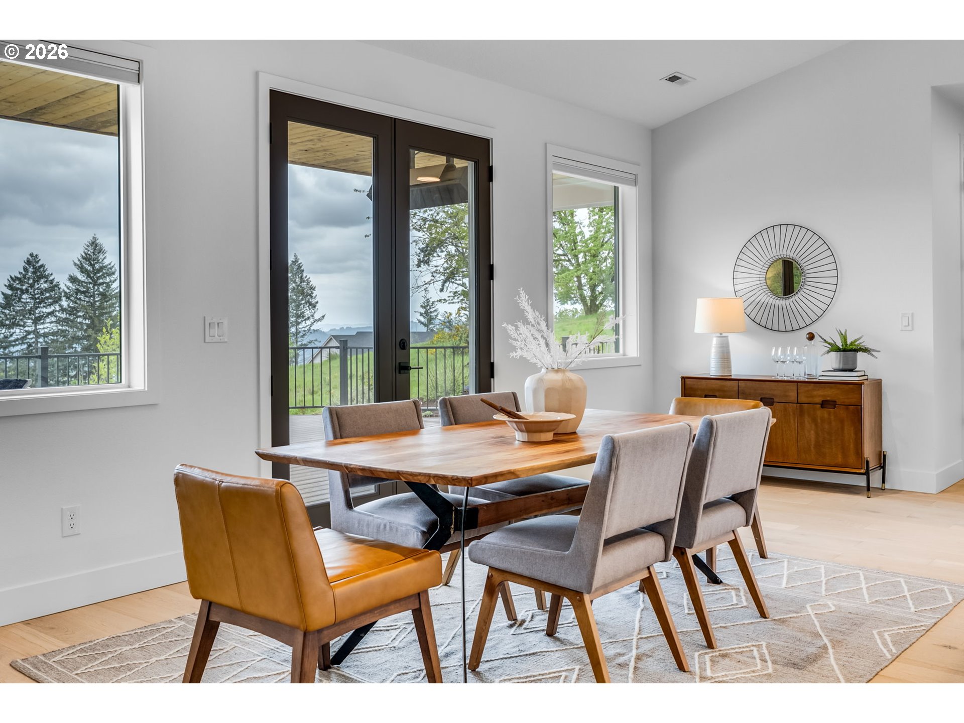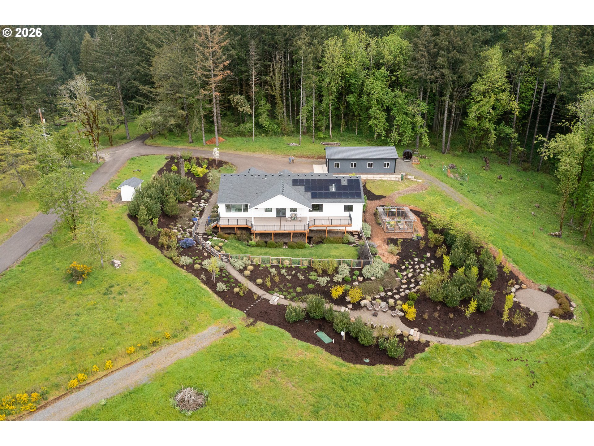 (503) 893-8874Set on just over four private acres in the heart of wine country, this exceptional estate offers luxury living surrounded by breathtaking natural beauty. A long, private lane winds through Douglas fir, vine maple, and sword fern, leading to a serene retreat with sweeping valley views. Abundant wildlife are frequent visitors, and a seasonal creek can be heard from the deck, enhancing the tranquil setting. Professionally designed native perennial gardens offer year-round interest, alongside a deer-fenced veggie garden—both fully irrigated with an app-controlled system. The balance of the property blends meadow and forest, creating a perfect mix of open space and privacy, with views and spectacular sunsets from nearly every vantage point. Inside, the single-level home is filled with natural light, with large windows that bring the outside in. The open-concept layout centers around a gourmet kitchen with a large island, Italian Bertazzoni range, quartz surfaces, tile accents, and abundant storage. The dining area opens through French doors to the deck, overlooking the gardens, meadow and views and featuring a covered, heated area for year-round use. The living room offers built-ins and a brick fireplace with hearth—an inviting space for gathering while enjoying the scenery beyond. The home offers 4 bedrooms plus a den, two full baths, and a half bath. The primary suite includes a walk-in closet and ensuite with a walk-in tiled shower. Custom blinds throughout—including programmable remote-controlled options—add both comfort and convenience. A fully insulated and climate-controlled shop (heat & AC) features 10-foot pull-through doors and a bath, perfect for hobbies or workspace. Solar panels with battery storage provide approximately 77% of the home’s annual energy needs, enhancing efficiency and sustainability. Located near some of Oregon’s most celebrated wineries, this exceptional property offers refined living surrounded by nature, privacy, and panoramic views.