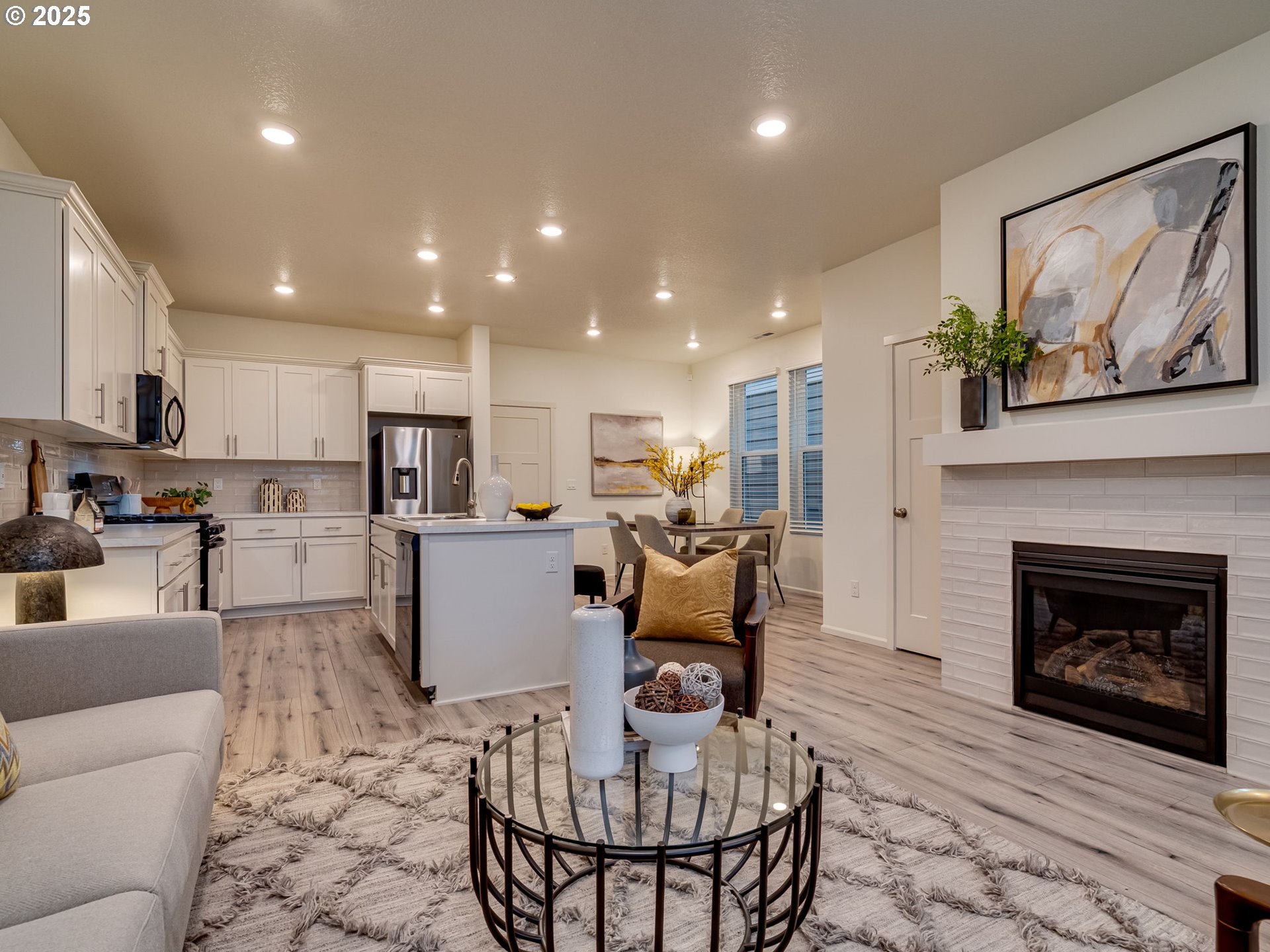 Like new 2-story home situated across from green space and park! Open concept first floor living with low-maintenance laminate flooring throughout. The spacious living room features a cozy fireplace and flows seamlessly into the kitchen, which includes a gas range, stainless steel appliances, a large eat-at island, pantry, and a separate dining nook - ideal for entertaining. Upstairs, you will find a multifunctional loft area perfect for a home office, playroom, or an additional living area. The spacious primary suite includes a large walk-in closet and a private ensuite bathroom. Two additional bedrooms, a full guest bathroom, and a convenient second floor laundry room with storage. Additional highlights include a covered front porch, 2-car garage, blinds, and brand new carpet and paint throughout. Close to neighborhood common areas and walking paths with a low monthly HOA. Don't miss the opportunity to own this low maintenance, move in ready home.