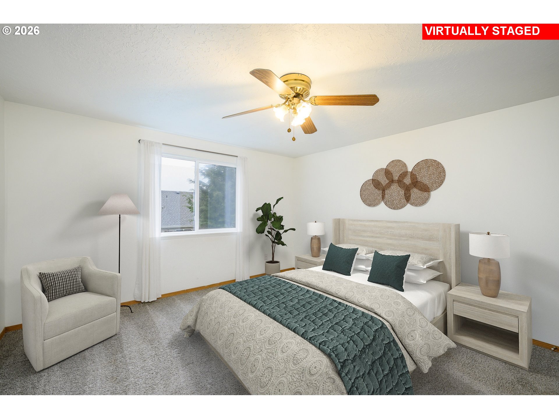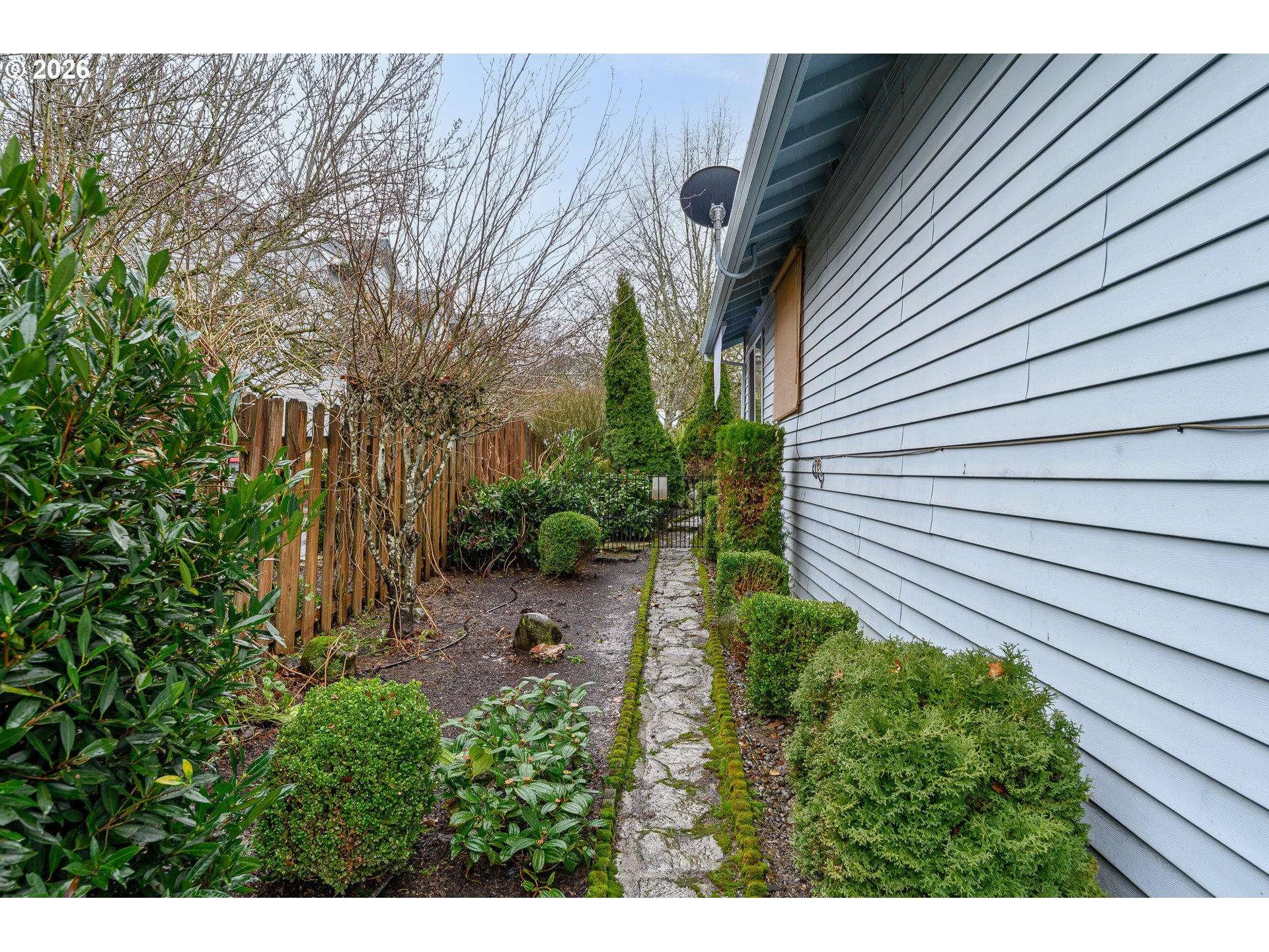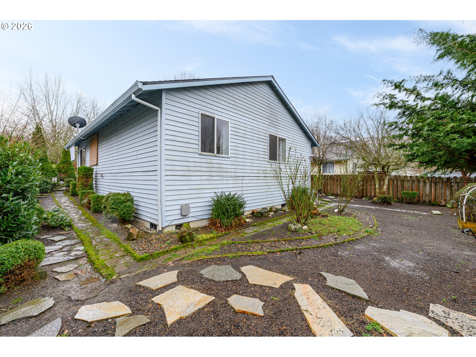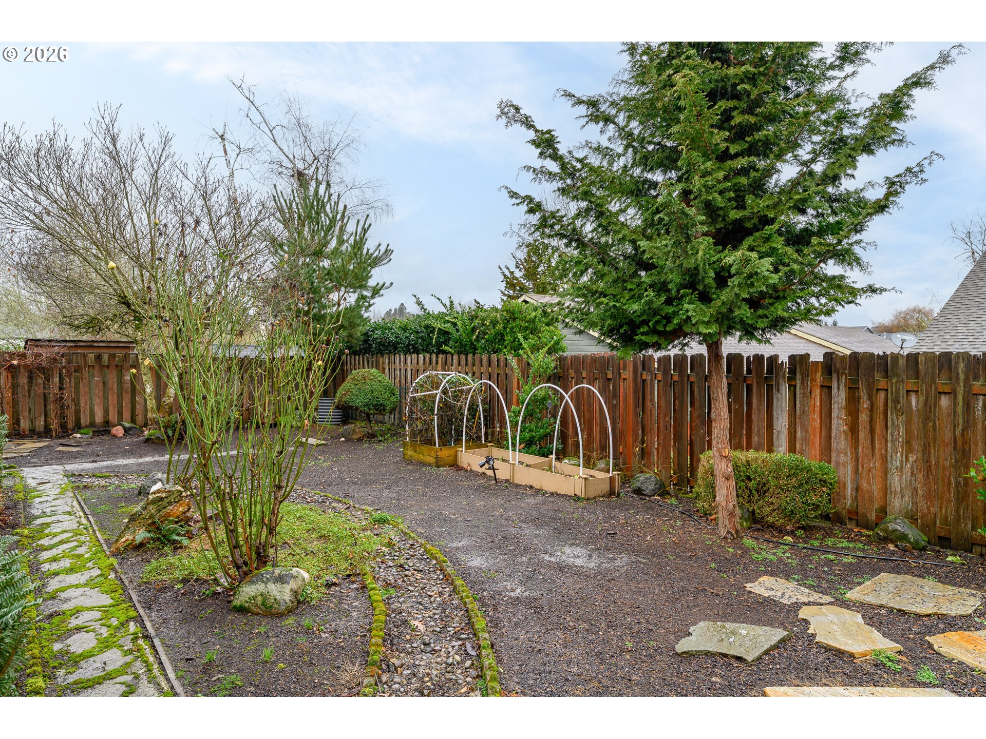Located at the end of a peaceful cul-de-sac, this 1,216 sq ft single-level home offers privacy and a functional, easy-living layout. The open floor plan creates a welcoming flow for everyday living and provides an opportunity for a new owner to add their own personal touches. Recent updates include a newer roof with gutter guards and a new living room window that fills the space with natural light. The washer and dryer, approximately three years old, and the refrigerator are included. Step outside to a covered deck overlooking a landscaped, low-maintenance yard with a calming water feature, an ideal spot to relax. Enjoy the benefits of cul-de-sac living with minimal traffic and added privacy. The neighborhood offers access to the Westside Pedestrian Trail, featuring a 1.31-mile walking path to the park.