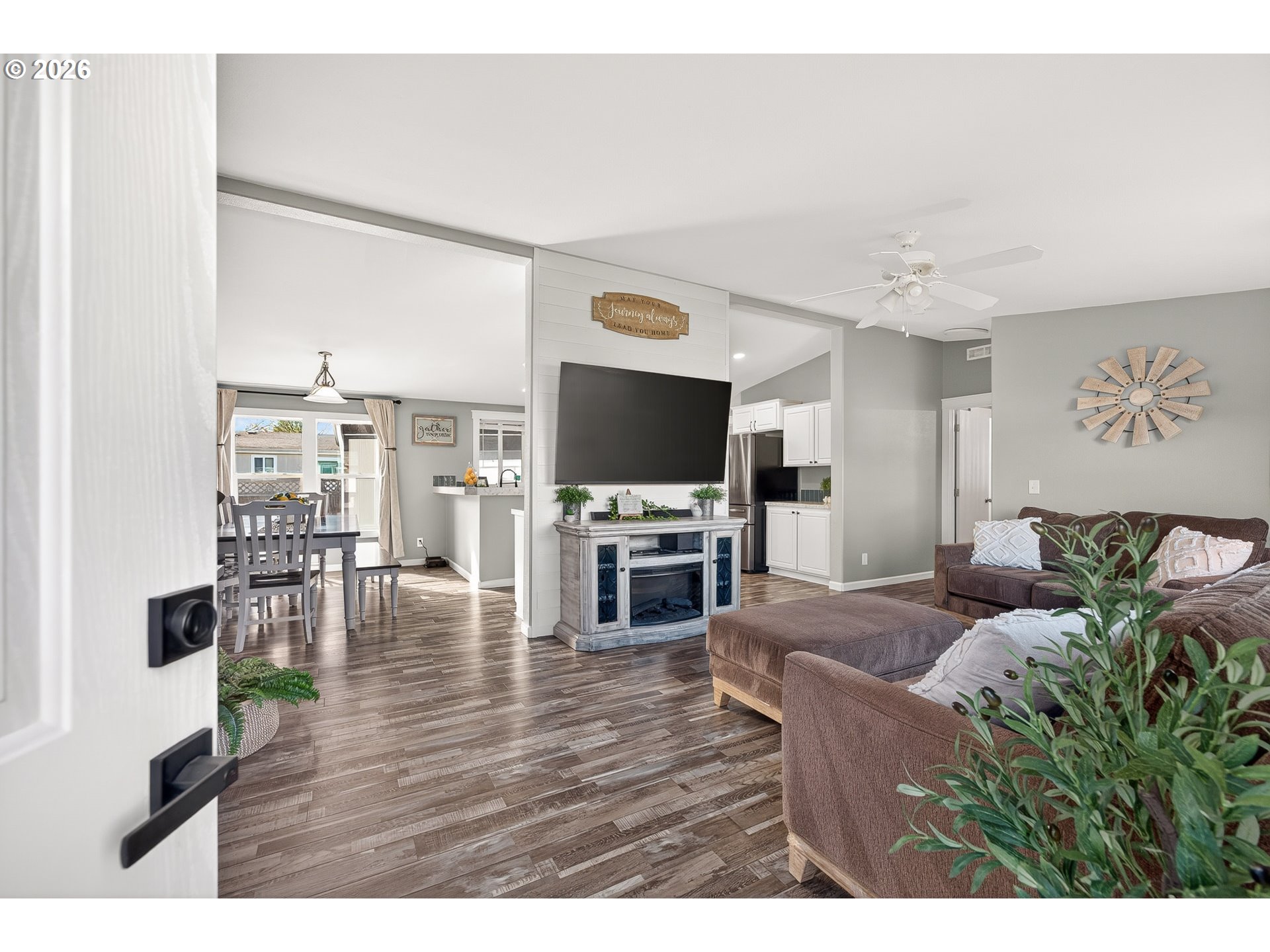 (503) 893-8874Great McMinnville location in a clean, well-kept neighborhood—just minutes from a park and elementary school. This home has been thoughtfully updated and is truly move-in ready. Recent improvements include a brand new roof, fresh exterior paint, upgraded door hardware, and modern light fixtures.The property features low-maintenance artificial turf, fully landscaped grounds, a fenced/gated yard, and multiple outdoor amenities including garden space, greenhouse, and garden boxes, plus a spacious grass backyard area. Additional exterior storage includes a carport shed.Inside, you'll find laminate flooring throughout, added built-in storage, and generous closet space including multiple hallway storage cabinets and linen closets. The primary suite offers two closets and dual vanities, along with a tub/shower combo. Guest bath also includes a tub/shower combo with ample built-in storage.Appliances included: washer/dryer, built-in dishwasher, freestanding electric range, and refrigerator with water/ice. Living room features a large mounted TV with entertainment system and built-in fireplace (included).Sunroom has new windows, providing additional usable space.This home is gorgeous inside and out!