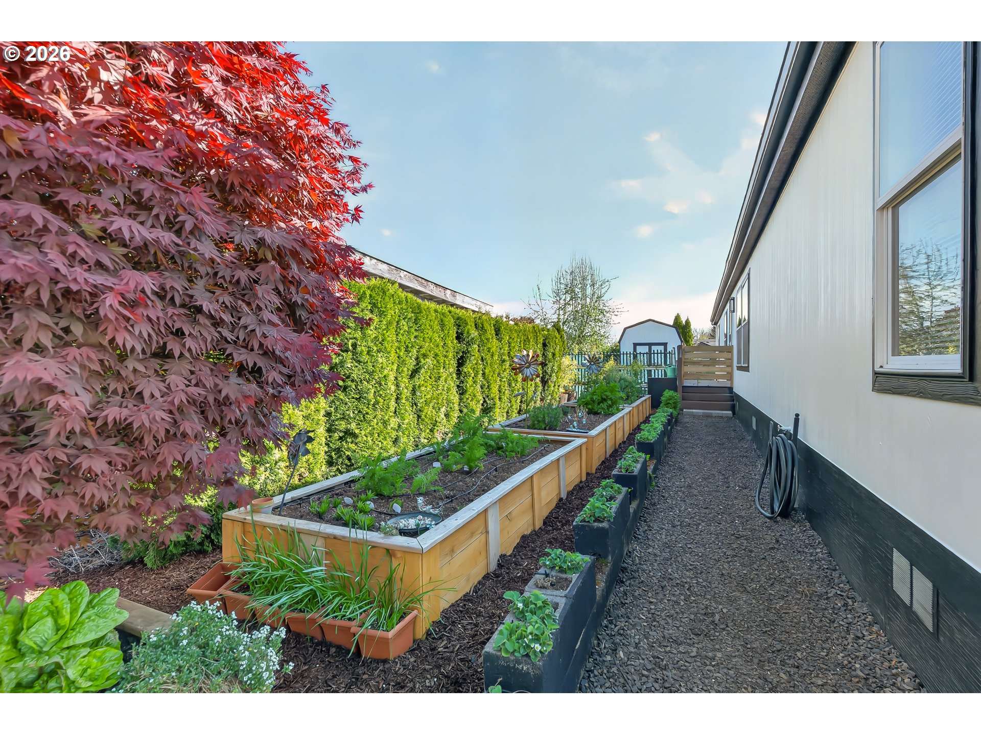 CoveredDeck, CoveredPatio, Fenced, Garden, Greenhouse, Outbuilding, Porch, RaisedBeds, ToolShed, Yard