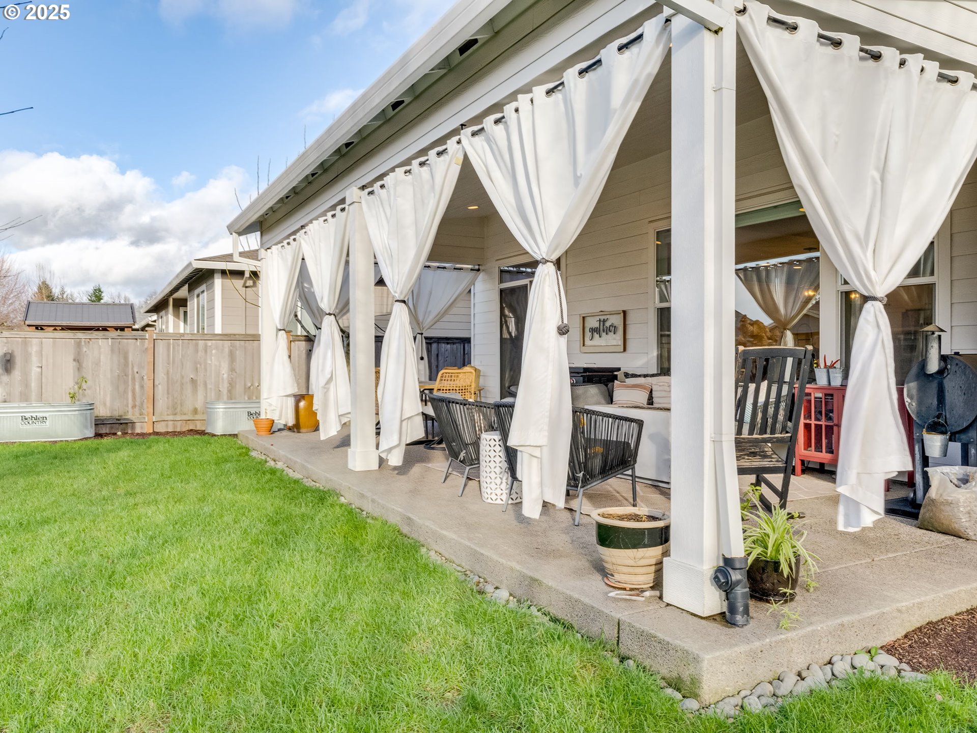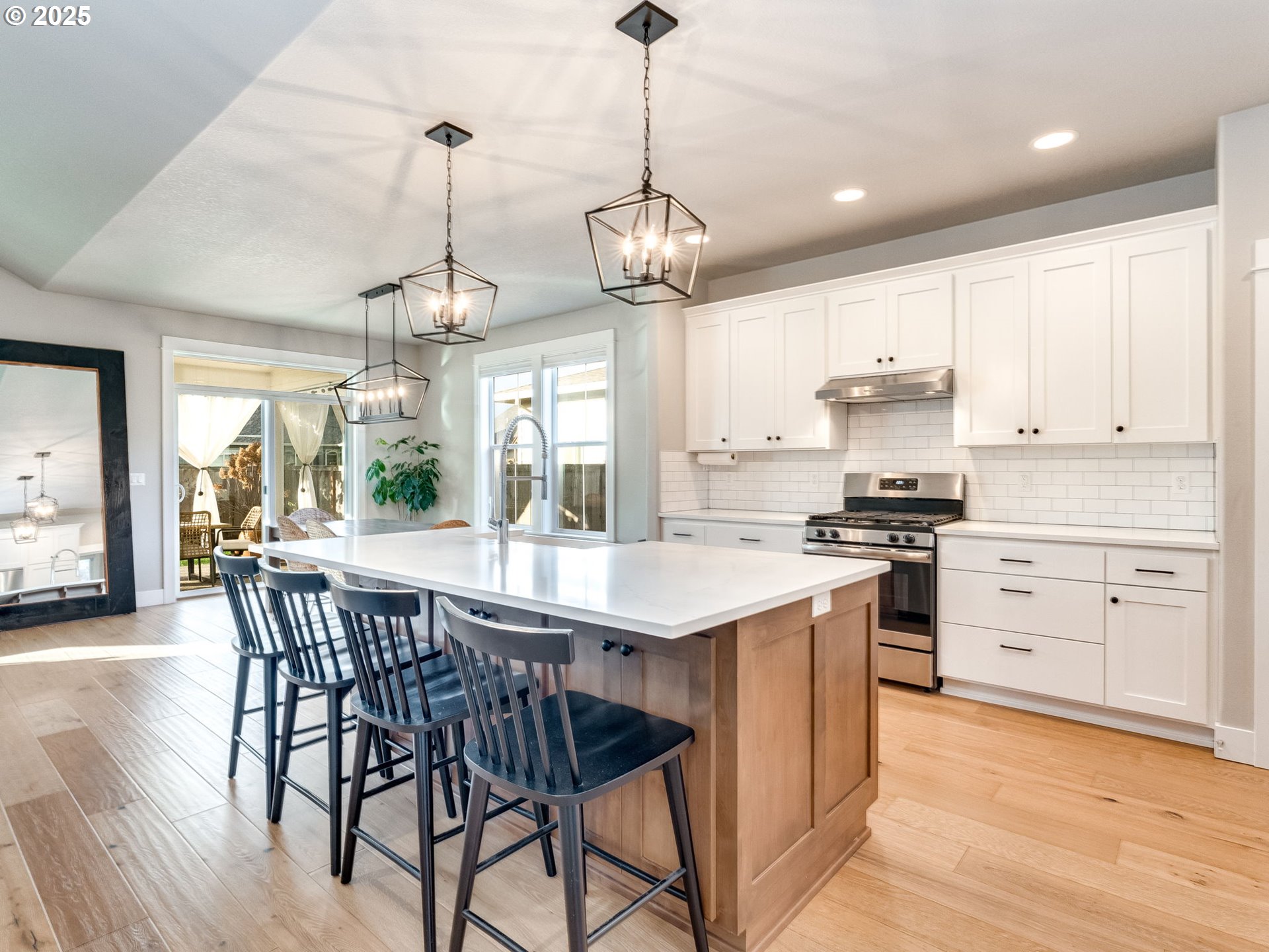 Welcome to a home where comfort, style, and thoughtful design come together effortlessly!From the inviting covered front porch to the beautifully crafted interior, this home shines with designer details throughout and a layout made for easy, elevated living.Step inside to an open-concept great room featuring vaulted ceilings, custom built-ins, a cozy gas fireplace, and large picture windows that fill the space with natural light. The adjacent chef’s kitchen is a true standout, offering an oversized island with seating, sleek quartz countertops, an apron-front sink, stainless steel appliances, a full subway tile backsplash, and a convenient pantry. A dedicated dining room completes the main living area, creating the perfect setting for both everyday meals and special gatherings.Retreat to the primary bedroom sanctuary on the main floor, where vaulted ceilings, generous windows, a spacious walk-in closet, and a spa-like bathroom suite await—complete with a quartz double vanity, full tile shower, and luxurious soaking tub. An additional office or bedroom on the main adds versatility and function.Upstairs, you’ll find two well-appointed bedrooms and a shared bathroom featuring a quartz double vanity and a tub/shower combo—perfect for guests or family.Enjoy year-round outdoor living on the covered back patio, ideal for relaxing or entertaining. The garage offers hanging storage and a tandem space for added flexibility and convenience.This home blends high-end touches with everyday comfort—easy to live in, beautiful to come home to, and truly a standout!