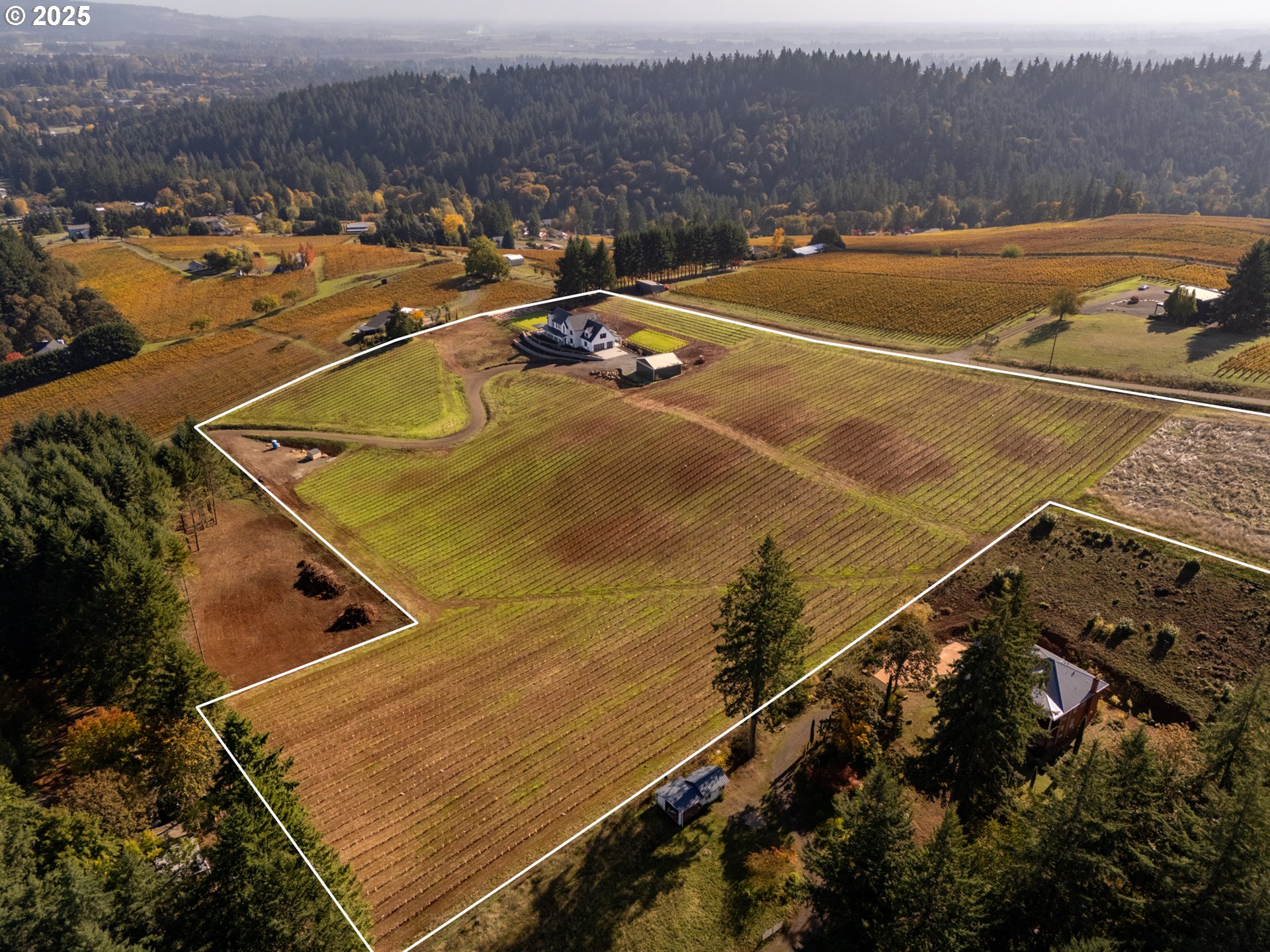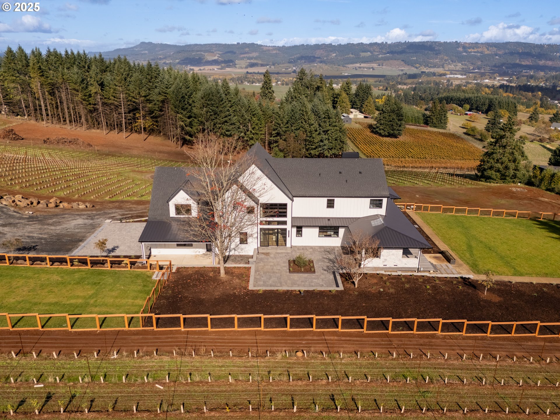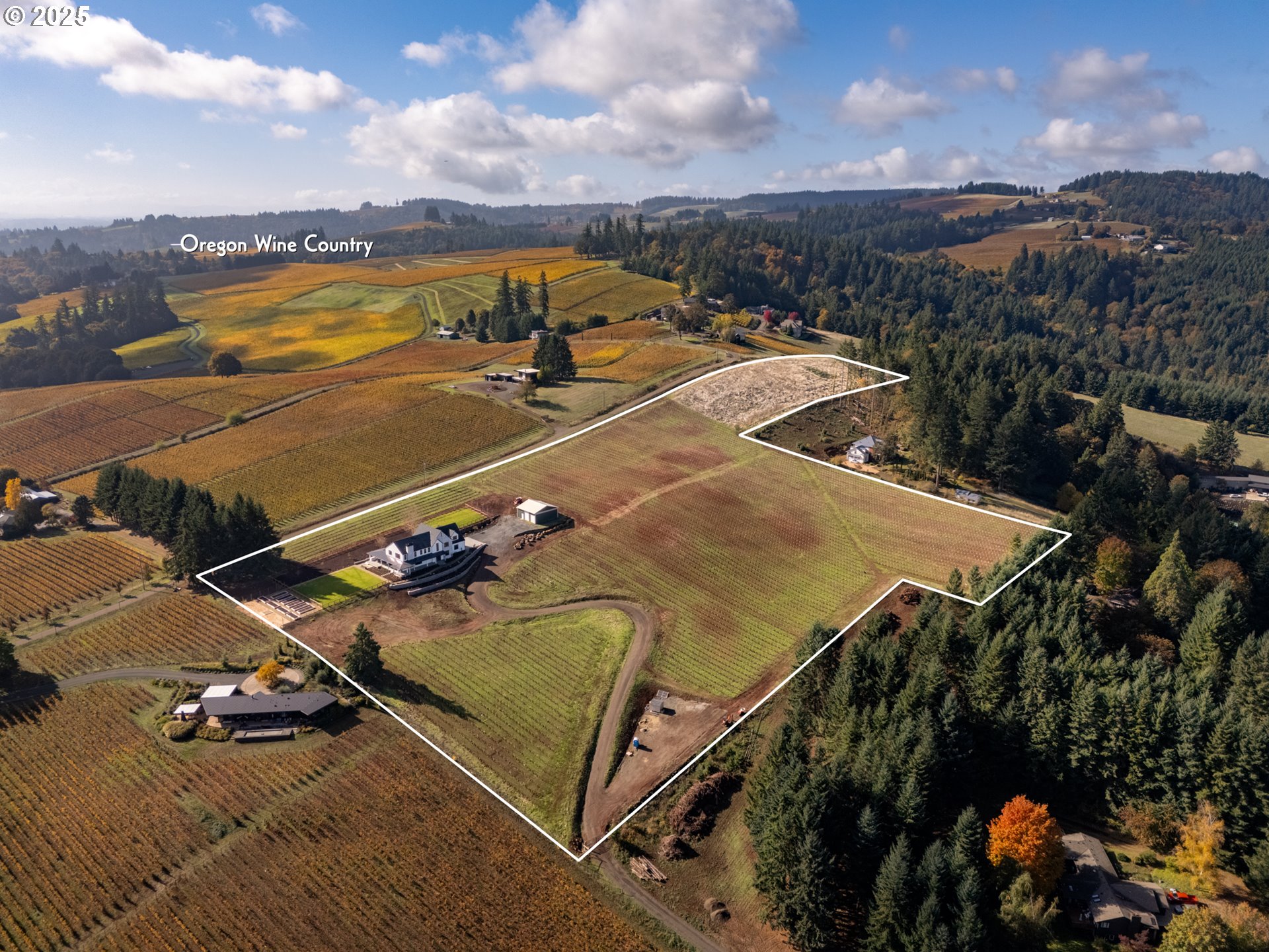 (503) 893-8874Experience the pinnacle of Oregon wine country living at this extraordinary vineyard estate, ideally located in the prestigious Dundee Hills AVA, one of the most celebrated wine regions in the Willamette Valley. Perched atop 15 breathtaking acres with 360-degree views, this newly renovated & constructed estate features 7 acres of newly planted Pinot Noir and Sauvignon Blanc vines, surrounded by refined, professionally designed landscape. Constructed by award-winning Street of Dreams builder, Elite Development Northwest this 5,009 sqft residence blends timeless elegance with modern luxury. From the moment you enter through the grand foyer, you're welcomed by floor-to-ceiling windows that perfectly frame the surrounding vineyard views. Every detail has been thoughtfully curated, including custom wood beams, custom cabinetry and built-ins, custom stone fireplaces, & high-end lighting throughout. The gourmet kitchen features rich wood tones, timeless quartz countertops, a spacious walk-in pantry, and a show-stopping custom glass wine cellar. The floor plan includes a luxurious primary suite with vaulted ceilings, a stone fireplace, vineyard views, and a spa-inspired bath with premium finishes. A secondary en-suite on the main level, a generous loft, and a large bonus room offer comfort and flexibility, while the expansive basement provides excellent space for additional storage, a secondary wine cellar, or root cellar. Step outside through beautiful Anderson doors to a generous deck and paver patio area, complete with an established olive tree, stone fireplace, & panoramic vineyard views, perfect for entertaining or quiet evenings. The fully fenced estate also includes a designated garden area, a fenced pet run, and a custom-built dog wash for convenience. Conveniently located just minutes from boutique shopping, award-winning restaurants, & world-class wineries, this exceptional property offers a rare blend of luxury, privacy & prime location.