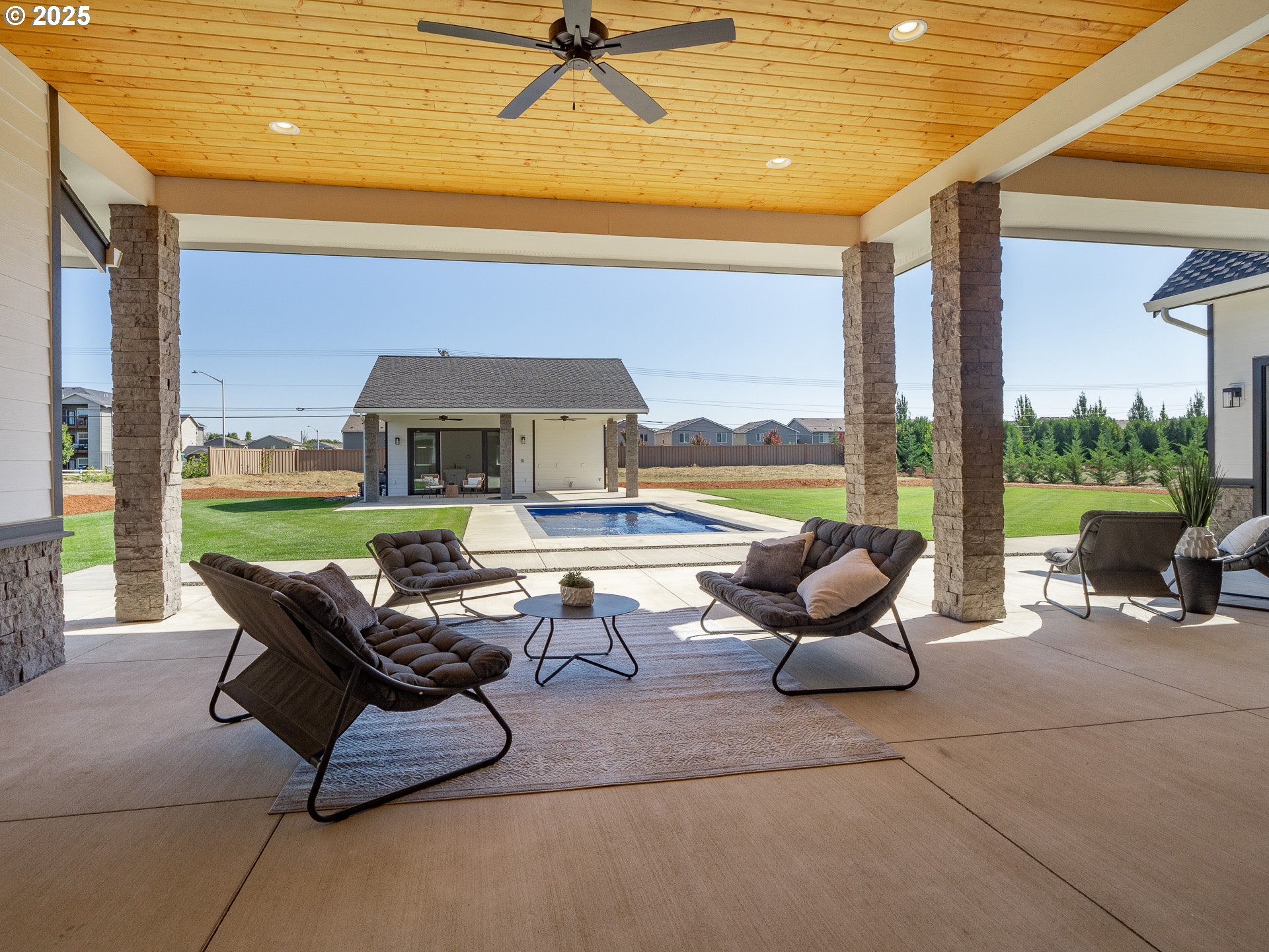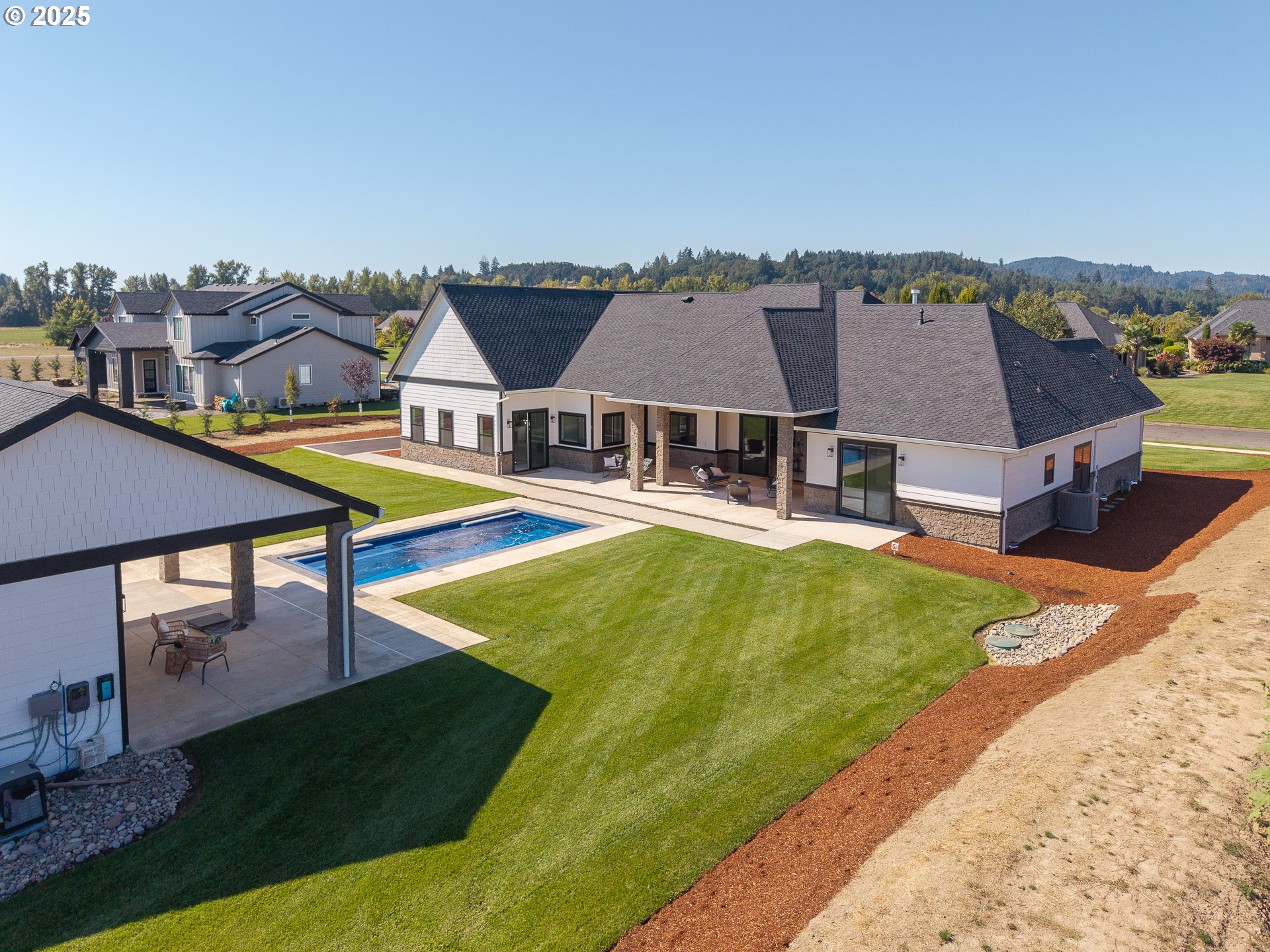 (503) 893-8874*Furnishings to be included with acceptable offer* Nestled in one of McMinnville’s most upscale neighborhoods, this brand new, custom-built residence offers a lifestyle that feels like a year-round vacation in the heart of Oregon wine country. Set on just over an acre, the home blends contemporary architecture with thoughtful design, creating spaces that are as luxurious as they are livable. Step inside through the dramatic custom pivot door to soaring 10-foot ceilings and an open, light-filled great room that flows seamlessly to the chef’s kitchen and covered outdoor living area. Entertaining is effortless with a 10-foot quartz island, brand new stainless steel appliances, including double ovens, two dishwashers, a warming drawer, an oversized refrigerator, and a huge walk-in pantry with custom built-ins. Every bedroom in this 3,400+ sq. ft. home is its own private suite, complete with a walk-in closet and attached bath. The primary retreat is a sanctuary all its own, featuring a private patio, spa-inspired bath with custom walk-in shower with built-in bench, double sink vanity, a makeup station, and a spacious walk-in closet. A dedicated home office provides flexibility for work or creative pursuits. Resort-style living continues outdoors, where a custom in-ground fiberglass pool with electric cover takes center stage. The beautifully landscaped yard offers both lush green lawn and low-maintenance ease with an in-ground sprinkler system. A dedicated pool house with bathroom and laundry hookups expands the possibilities, whether as a rec room, home gym, or guest space. Additional amenities include a 3-car oversized garage, tankless hot water heater, and custom cabinetry throughout, ensuring style and function at every turn. From the floor plan to the finishes, every element reflects a commitment to comfort, function, and style.