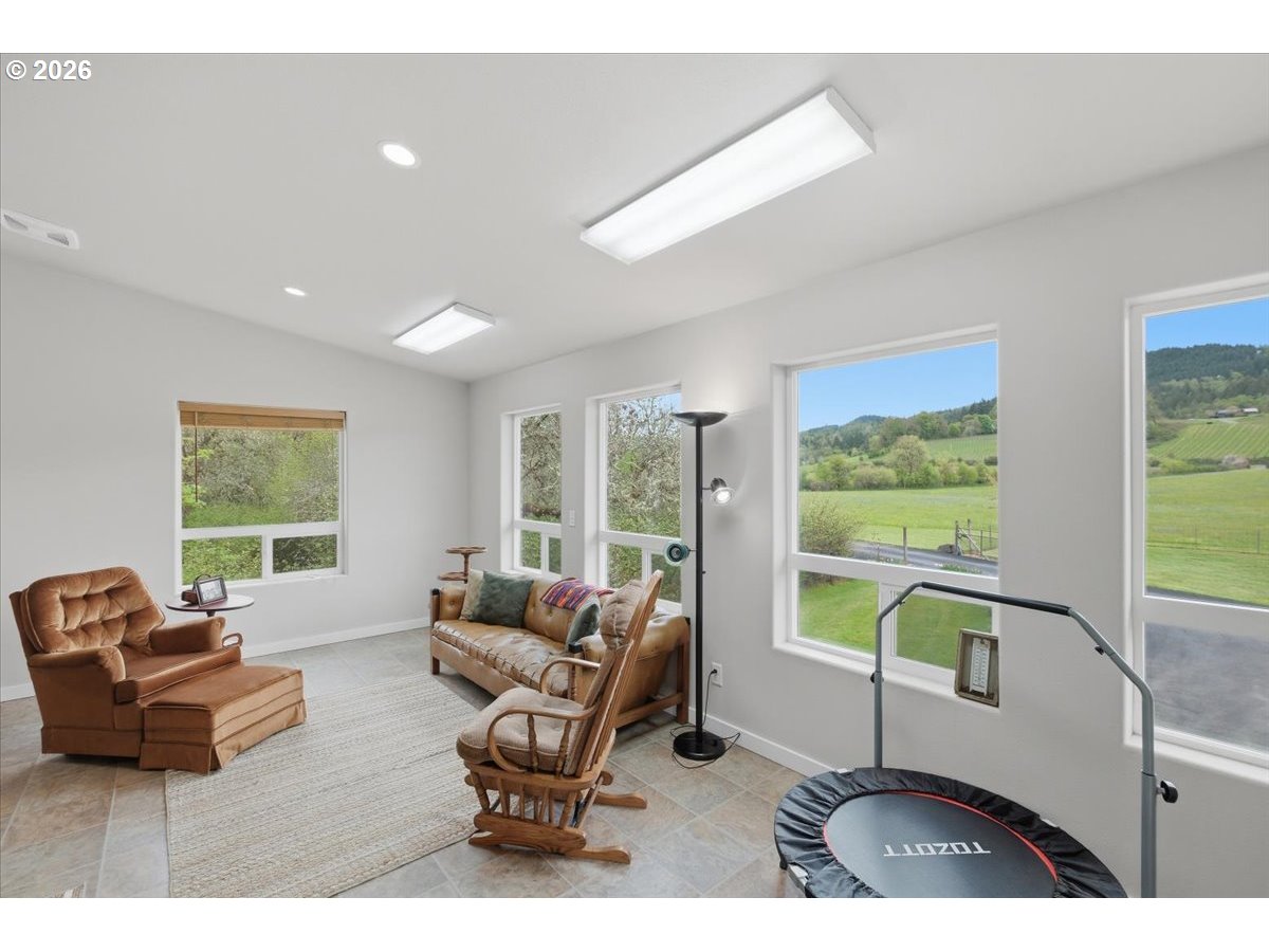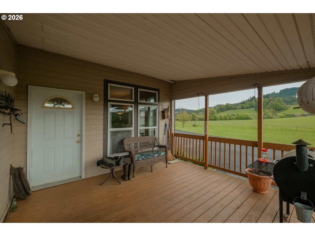 (503) 893-8874Just outside of McMinnville and directly across from Couer De Terre Vineyard, this 3-bedroom, 2.5-bath home sits on a rare and scenic nearly 28-acre parcel. The property offers a detached garage with a fully finished bonus room above—perfect for guests, an office, or studio—featuring stunning vineyard views. The barn is well-equipped with a tack room and offers flexibility for multiple stalls and runs, complemented by a shop and hay cover for added functionality. Ideal for accommodating livestock, gardening, or simply enjoying the surrounding scenery, this property offers endless possibilities. Set back behind a private gate and backing to forested land, the setting provides a unique combination of privacy and expansive views. Enjoy year-round outdoor living with covered decks and patios. Additional features include a full RV hookup with dedicated pad and EV charging capability. Conveniently located just 10 minutes to McMinnville and approximately one hour to both the Oregon Coast and Portland.