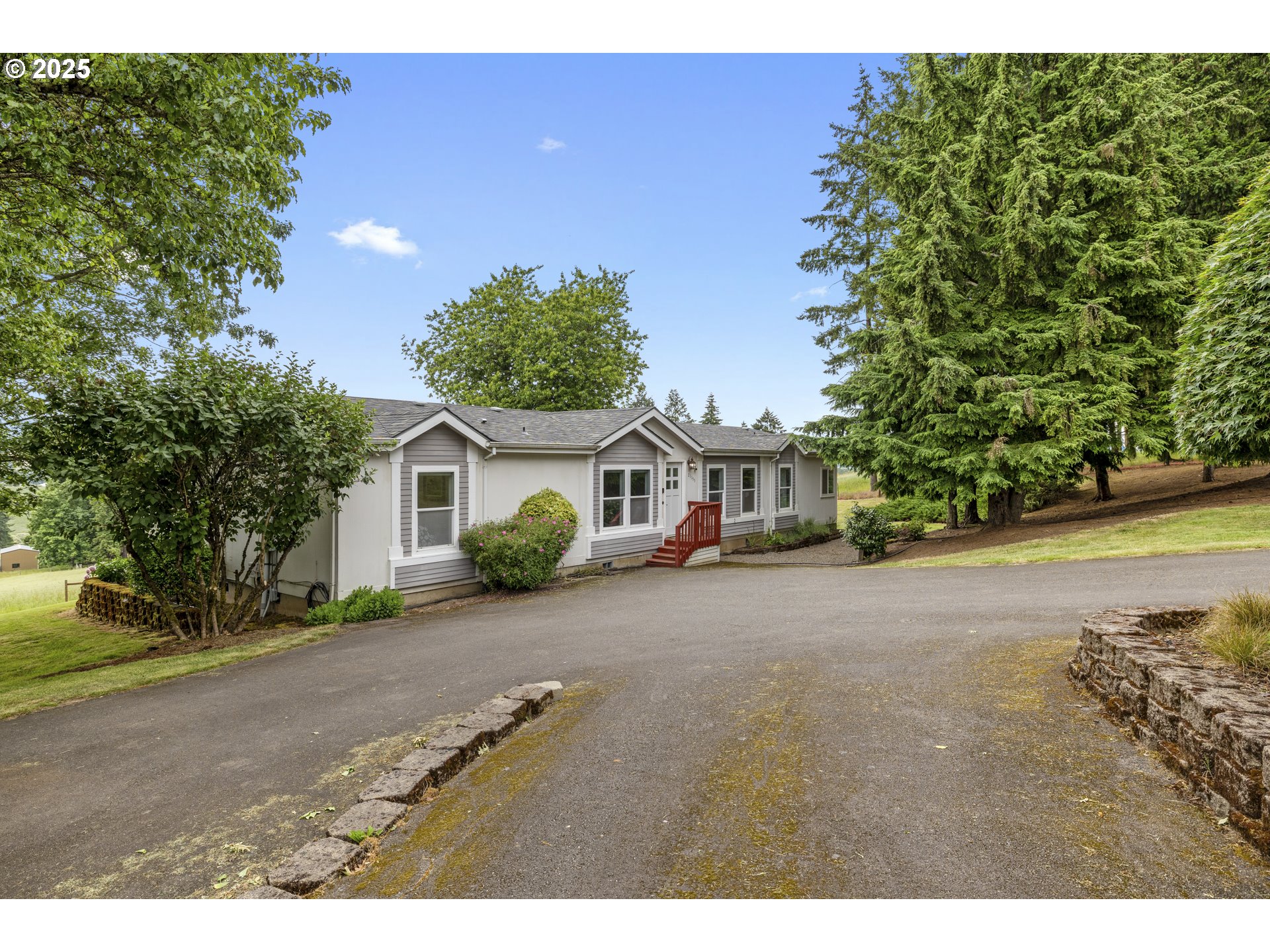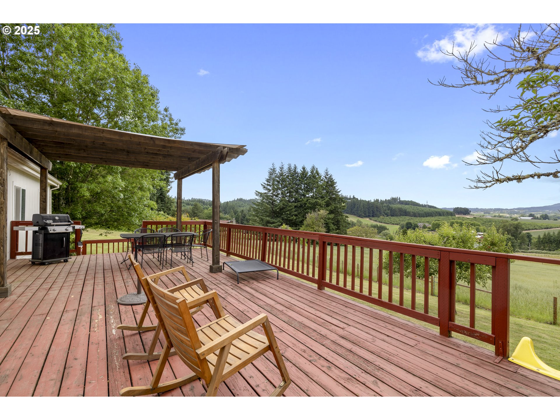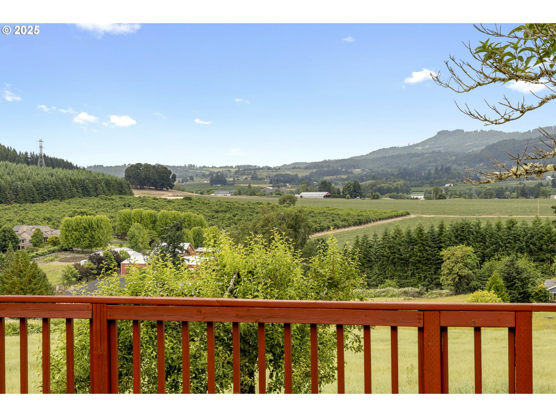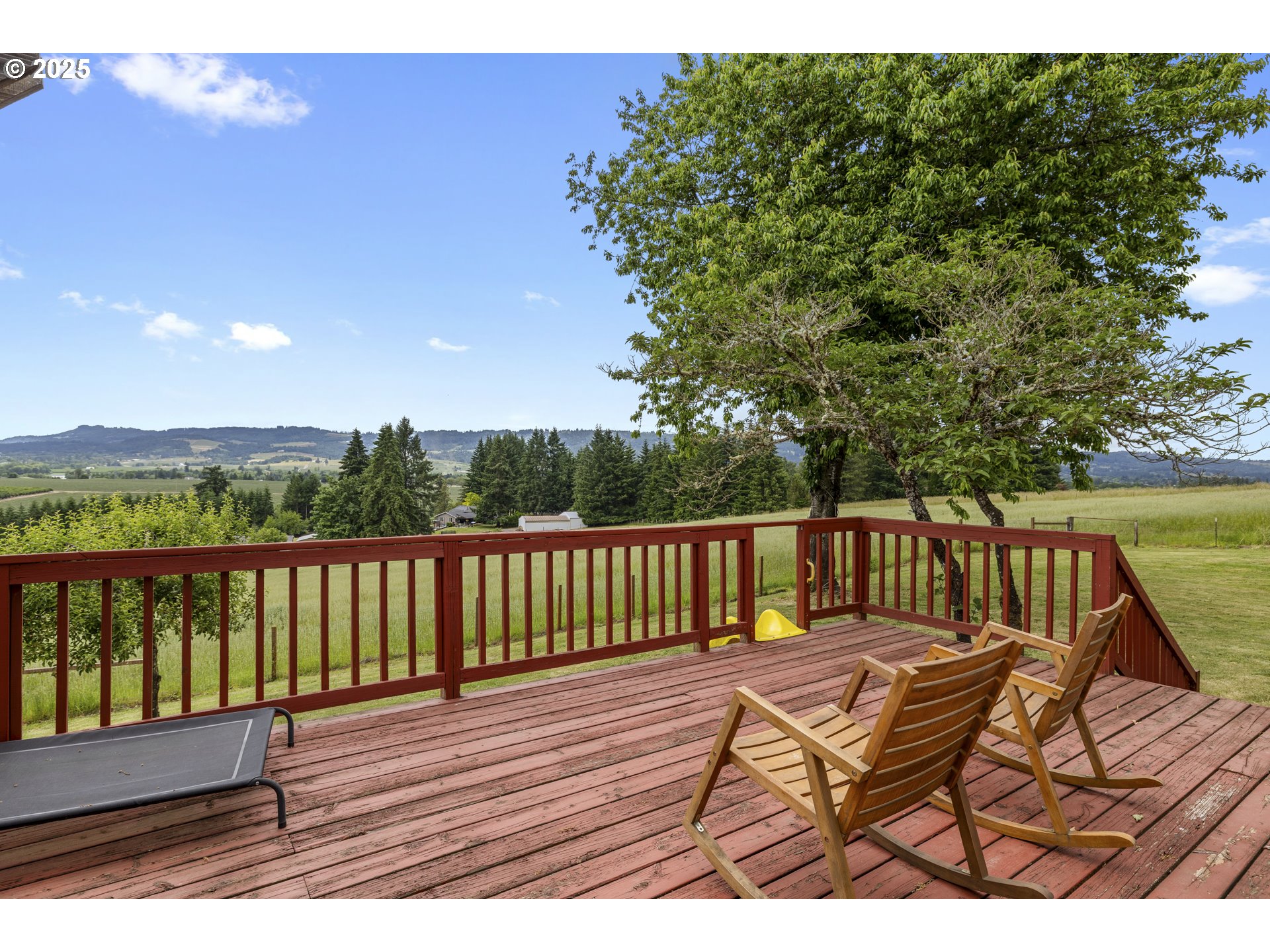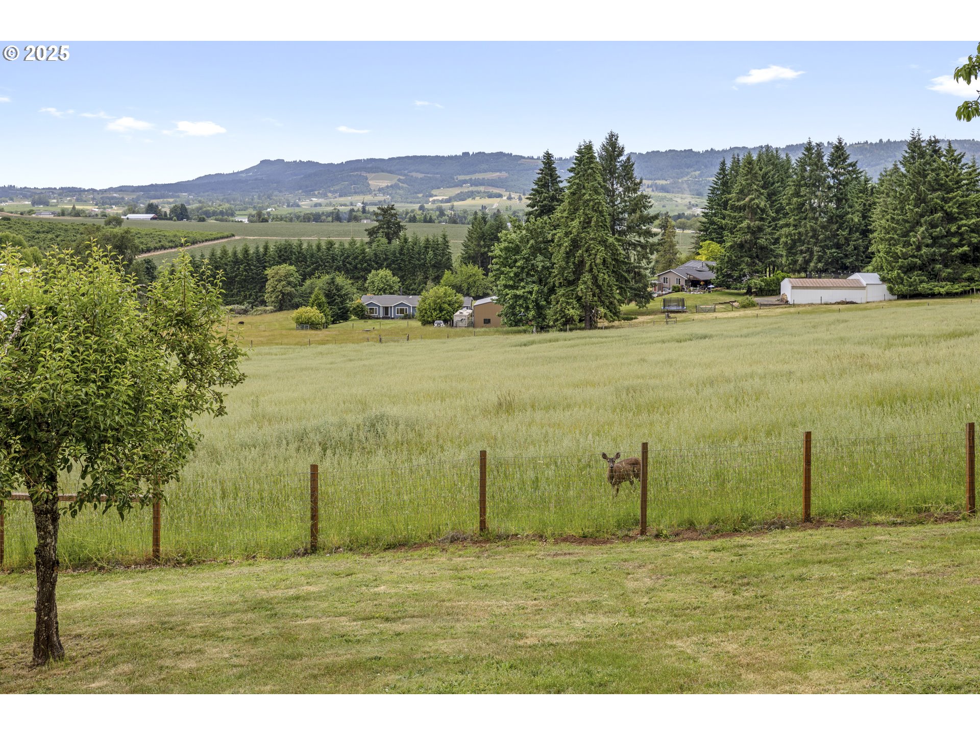 The home a "Vista Ridge" is set on 6.85 scenic acres, this property offers the space, views, and flexibility of true country living just a few miles from town. Soak in the sweeping views of the valley and Chehalem Mountain, with room to spread out and enjoy the outdoors. This well cared for home features vaulted ceilings, laminate floors, and a smart, spacious layout. There are four bedrooms plus a versatile flex room, perfect for an office, den, or workout space. You'll find both a living room and a family room, along with an open-concept kitchen that connects effortlessly to the dining area and family room for easy everyday living. The primary suite offers a large en suite bath with double sinks, a soaking tub, a walk-in shower, and a generous walk-in closet. Step outside to an expansive deck with plenty of space to relax and take in the quiet countryside. It’s the perfect spot for morning coffee or evening wildlife sightings. A large shop rounds out the property, offering room for storage, hobbies, or projects. This is a great opportunity to enjoy rural life without sacrificing convenience.