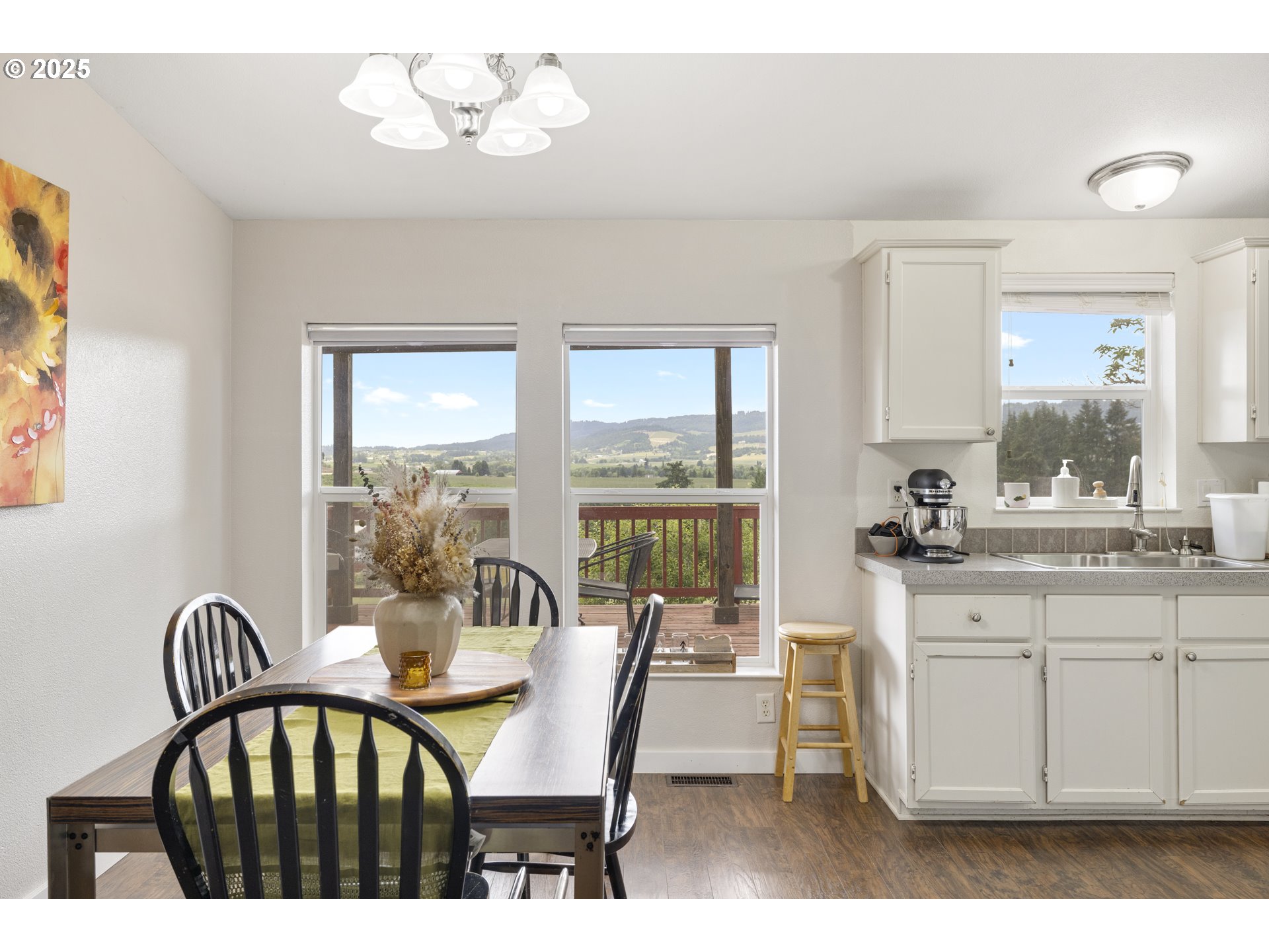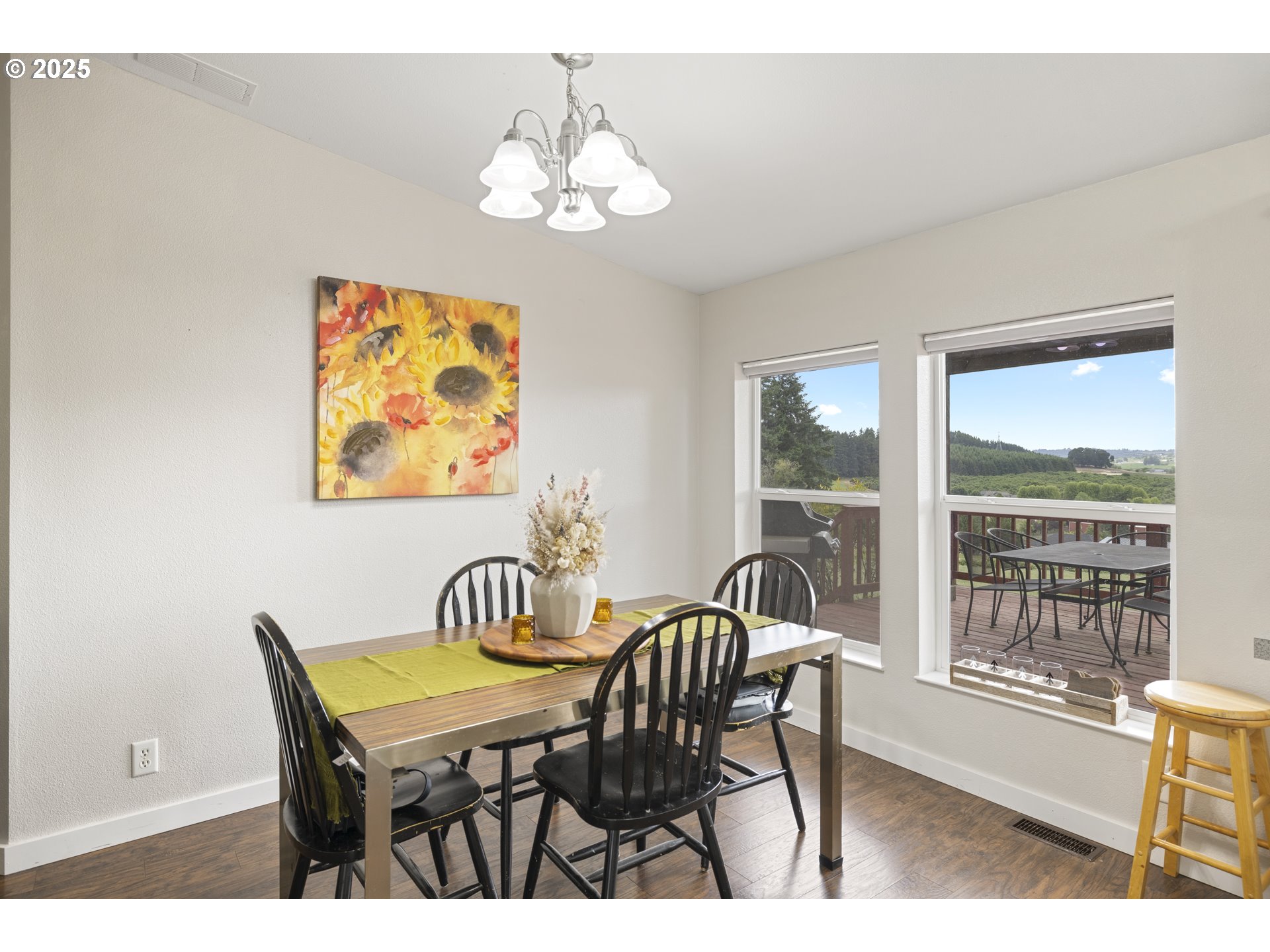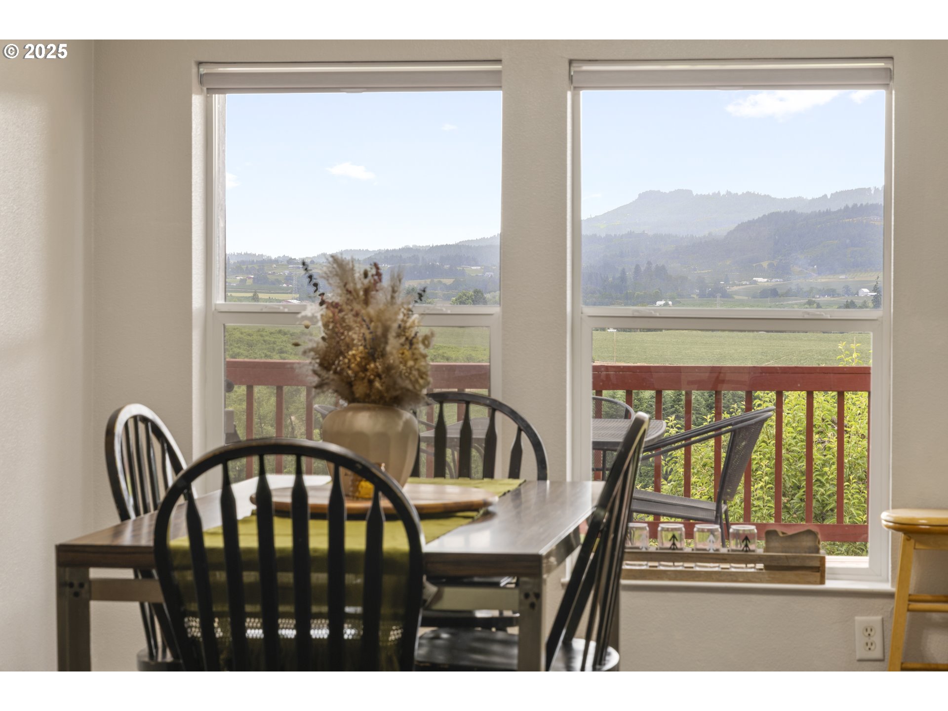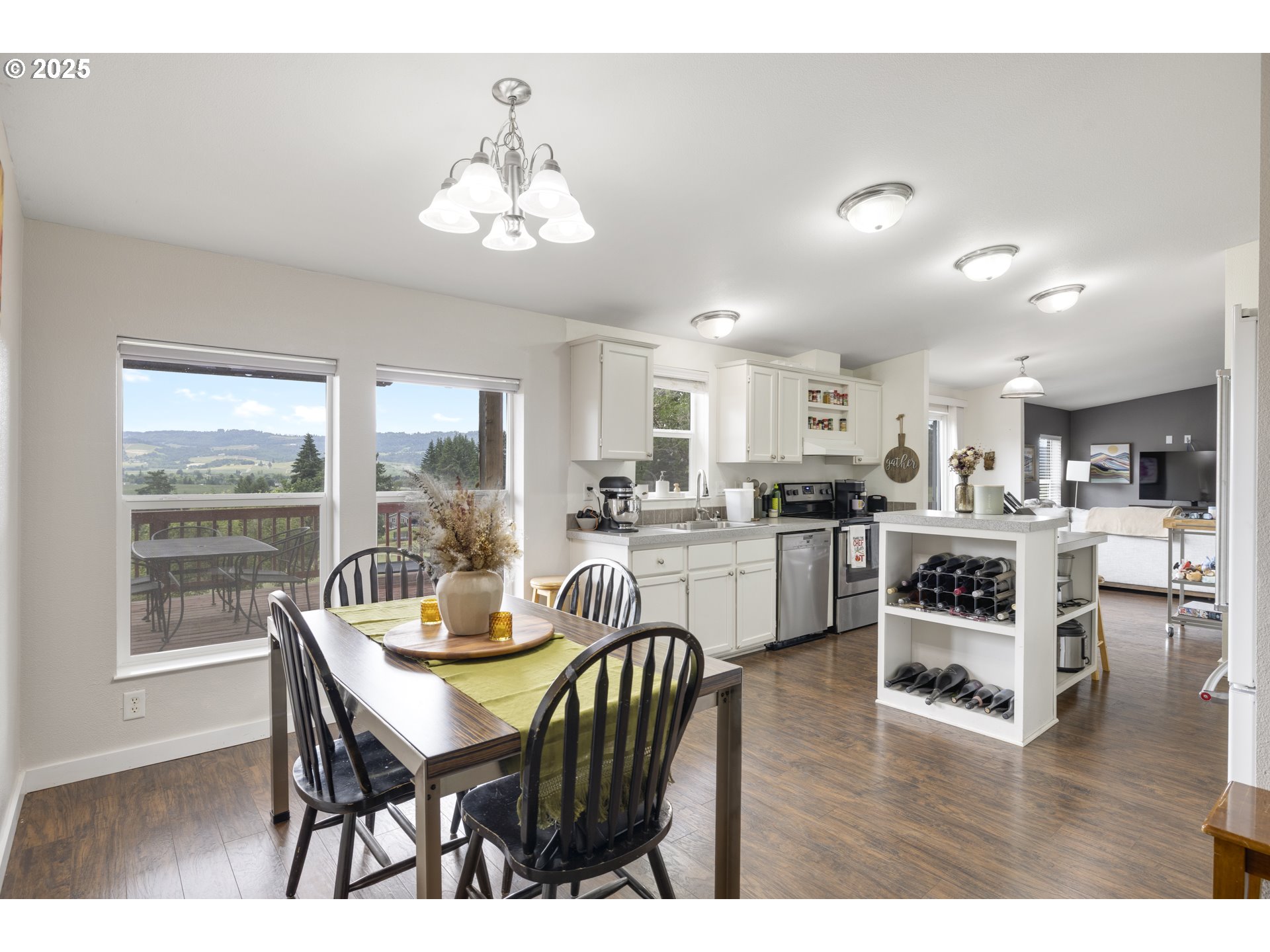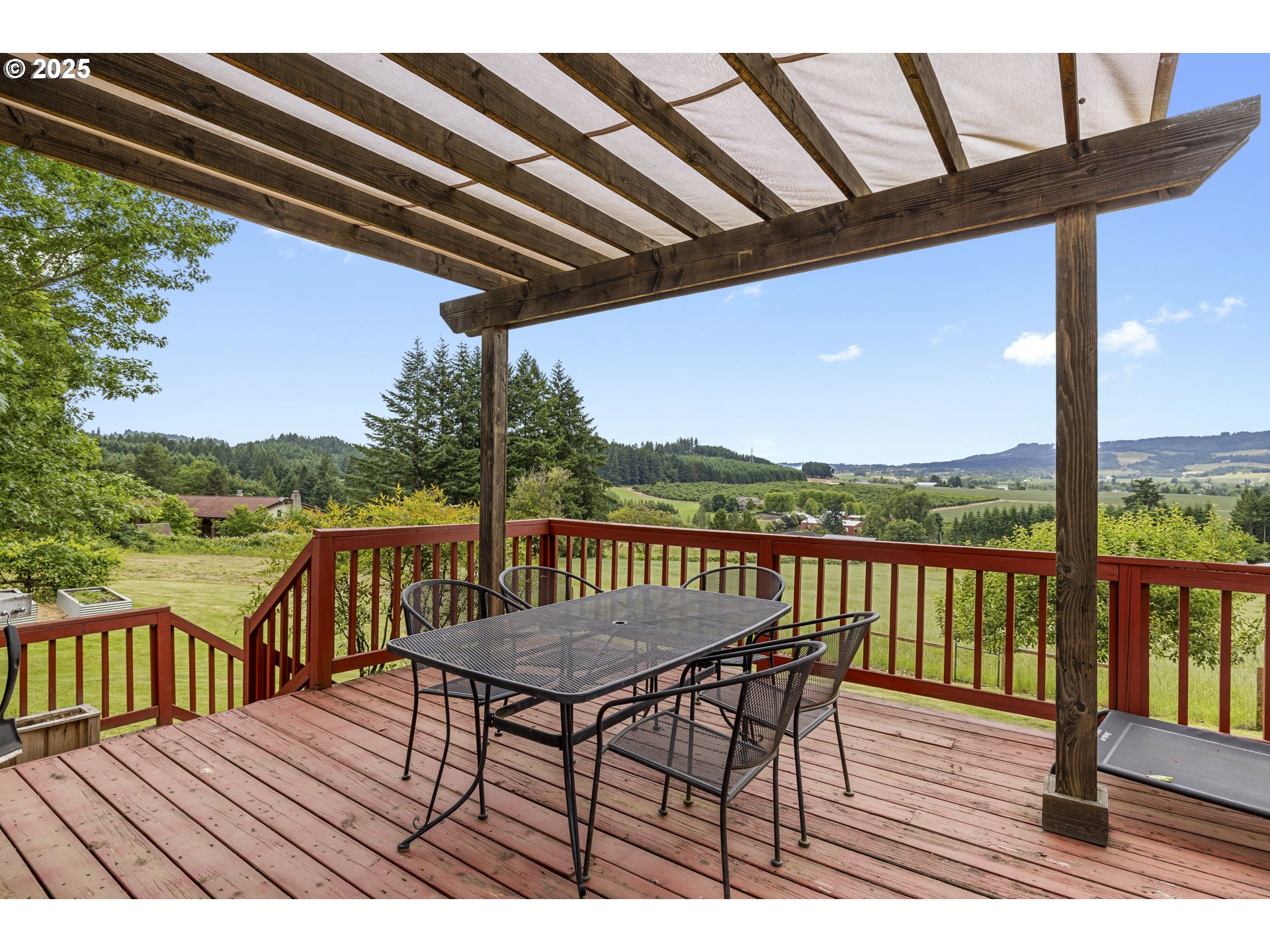 The home a "Vista Ridge" is set on 6.85 scenic acres, this property offers the space, views, and flexibility of true country living just a few miles from town. Soak in the sweeping views of the valley and Chehalem Mountain, with room to spread out and enjoy the outdoors. This well cared for home features vaulted ceilings, laminate floors, and a smart, spacious layout. There are four bedrooms plus a versatile flex room, perfect for an office, den, or workout space. You'll find both a living room and a family room, along with an open-concept kitchen that connects effortlessly to the dining area and family room for easy everyday living. The primary suite offers a large en suite bath with double sinks, a soaking tub, a walk-in shower, and a generous walk-in closet. Step outside to an expansive deck with plenty of space to relax and take in the quiet countryside. It’s the perfect spot for morning coffee or evening wildlife sightings. A large shop rounds out the property, offering room for storage, hobbies, or projects. This is a great opportunity to enjoy rural life without sacrificing convenience.
