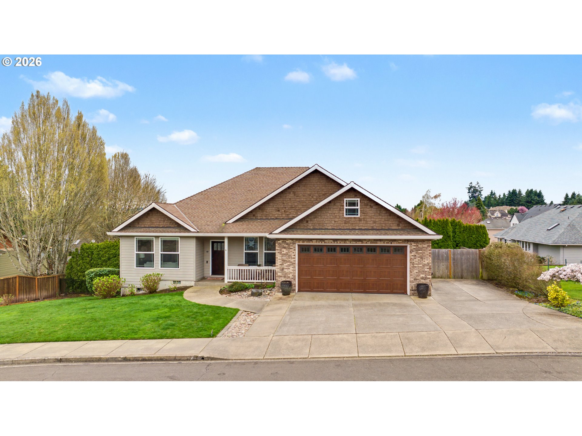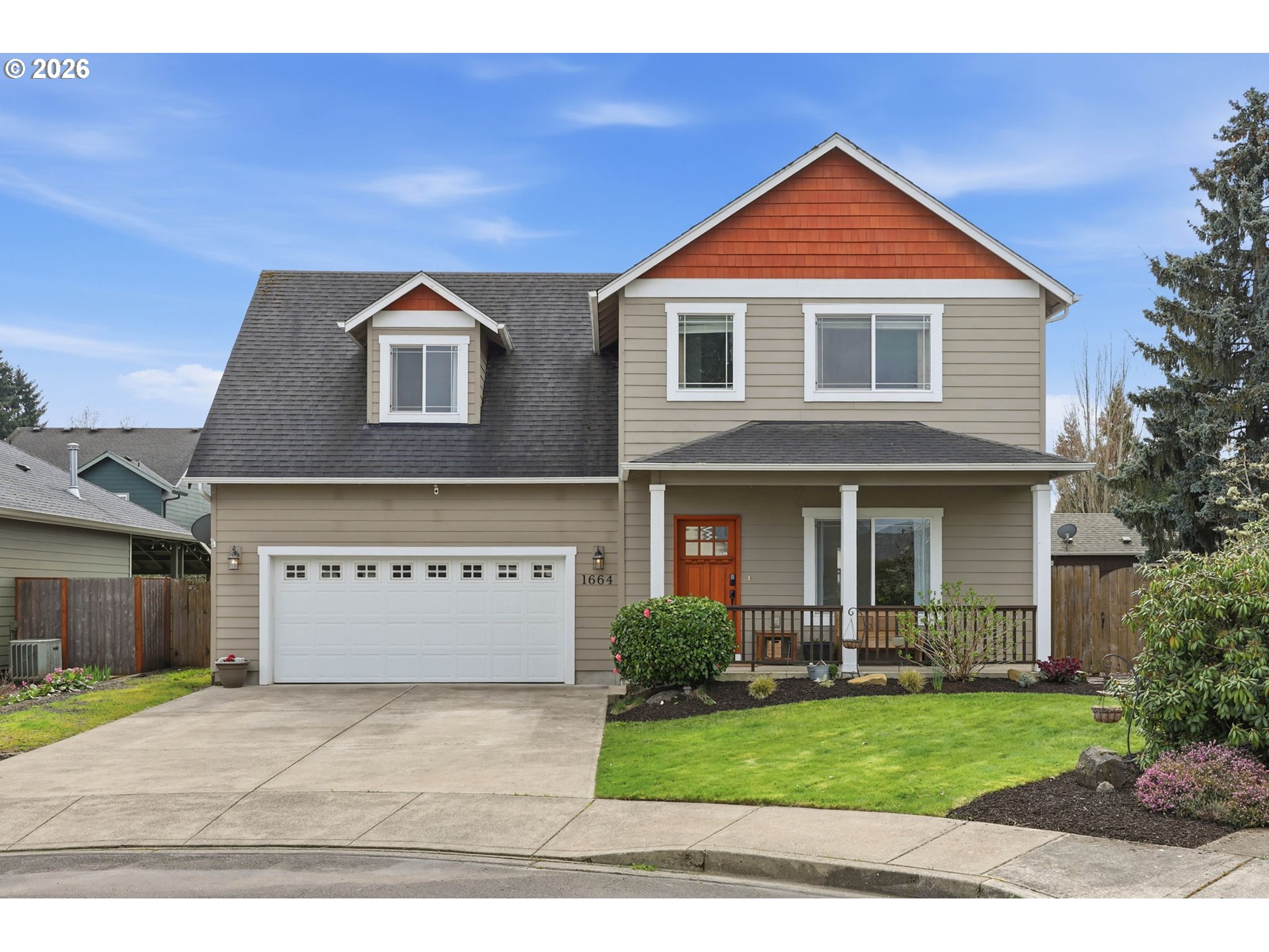 Welcome to this spacious 4-bedroom, 2.1-bath home in the highly desirable Grandhaven neighborhood! Offering 1,848 square feet of comfortable living space on a 0.17-acre corner lot, this home combines function, flexibility, and meaningful recent upgrades. The inviting great room with a cozy gas fireplace flows seamlessly into the dining area and kitchen, complete with pantry and slider access to the back patio perfect for entertaining or everyday living. Upstairs you’ll find all four bedrooms, including a generous primary suite with walk-in closet and private bath, plus a conveniently located utility room. Major improvements provide long term peace of mind, including a brand-new roof and a front porch with upgraded structural supports and new decking. These substantial updates reduce future maintenance concerns and add real value for the next owner. Outside, enjoy the wraparound porch charm, established landscaping, fenced backyard, and gated RV parking with a concrete pad and tall privacy fencing. Unwind at the end of the day in your private hot tub creating the perfect backyard retreat for relaxing evenings year round. Located near Grandhaven Elementary, parks, shopping, and all that McMinnville has to offer, this home delivers space, upgrades, and lifestyle in one complete package.