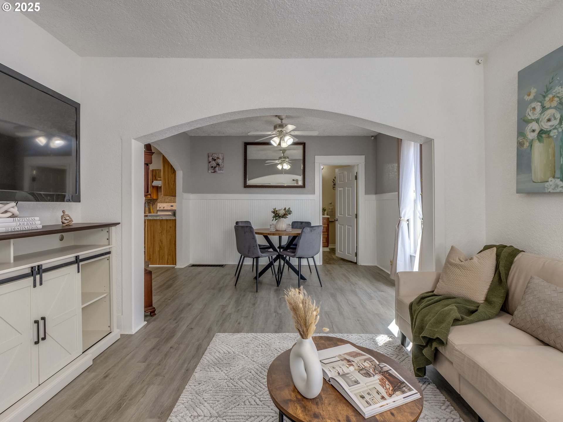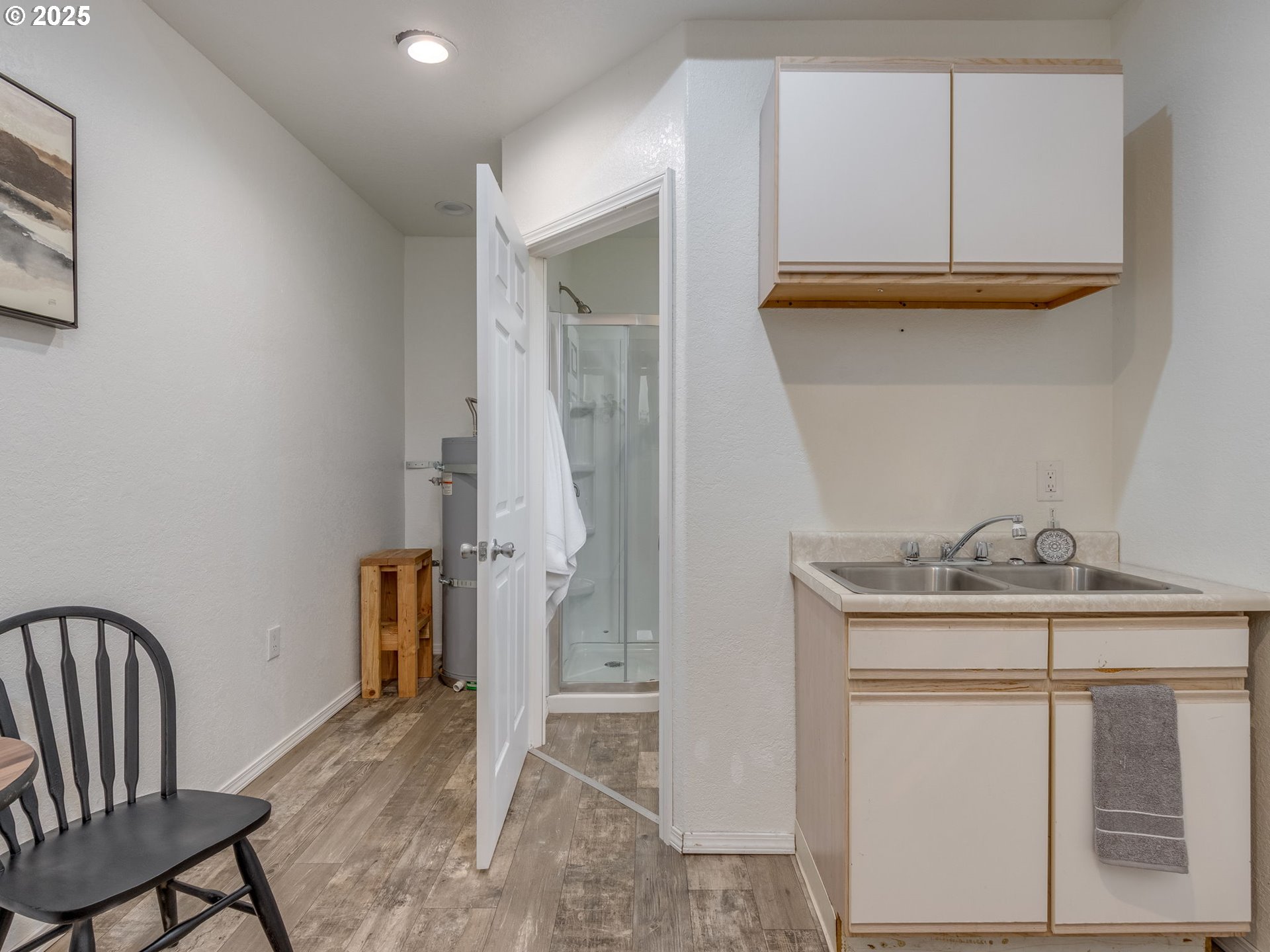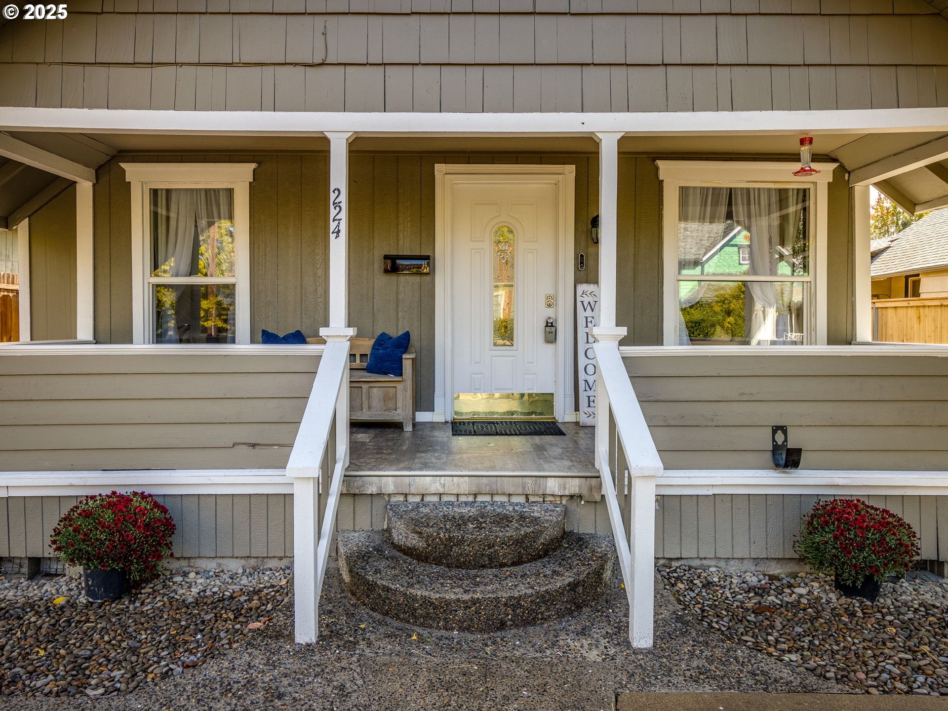 Super cute 1909 home offers vintage character with thoughtful modern touches, all nestled in a quiet neighborhood just minutes from downtown McMinnville, and 1.5 miles from Linfield University. A large covered front porch welcomes you in — perfect for relaxing or connecting with friends and family. Inside, you’ll see a bright layout with a separate utility room off the updated kitchen. Upstairs you'll find 2 more bedrooms, one featuring a cozy nook perfect for a closet or reading space. The large, flat, fully fenced backyard is a gardener’s oasis with potted tomatoes, peppers, garlic, squash, and established fruit trees, plus space to entertain. A detached backyard structure with a full bathroom and utility sink offers excellent flexibility for a home office, artists studio, craft space or storage. With a walk score of 83 and a bike score of 72, you're just a short stroll or ride from downtown McMinnville's restaurants, concerts, food carts, markets and neighborhood park. Enjoy highly rated schools and low taxes all in the heart of Oregon's wine country.