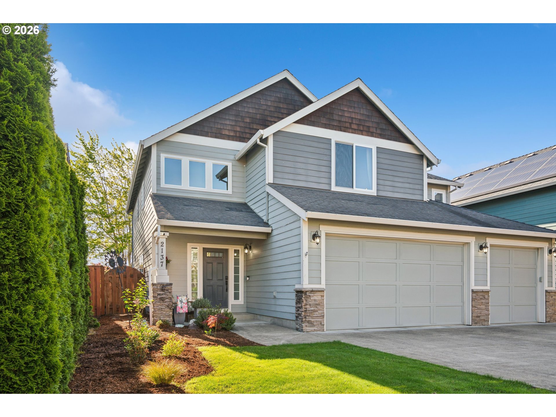 2.7 ac. in wine country w/ true dual living will not disappoint! 5283 square feet of living space each having its own separate entrance. Main house 3bd, 2 1/2ba. primary suite on main, laminate flooring, gas fireplace, bath has tile floor, shower and jetted tub. Living room with laminate flooring and charming covered front porch. The large kitchen is open to dining area with a slider to a wonderful stamped concrete covered patio with big beams, tongue and groove ceiling, ceiling fans & up-lighting for entertaining. Upper-level features 2 bedrooms, 1 full bathroom and a large room that could be used for crafting, exercising or office space and there is fabulous party/bonus rm with built-ins, wet bar, and vaulted ceilings making it a great place for family gatherings and entertaining. In 2013 a secondary living space, with a separate entrance and an elevated enclosed heated breezeway providing access between the dual living areas was added and features a covered front porch, 2bd, full bath + den with deck. Main level features primary suite, walk-in closet and full bath, full kitchen, living space, laundry and 2 car garage. Separate HVAC/cooling systems, main portion of home has gas furnace & is A/C ready. Secondary living space has gas furnace and air-conditioning. Paved driveway. Fenced garden area with raised beds, blueberries, raspberries, apples and pear trees and a water source. Gazebo on concrete pad with firepit. Front field and main portion of house have a 14-zone in ground sprinkler system. Excellent GPM well serves the home, there are 2 pressure tanks and 2 water filtration systems, 2 gas meters, 1 electric meter. 24’x38’ Outbuilding with power, two roll up doors and lower level has additional storage. Seasonal creek on property. You don't want to miss this special property! EFU Zoning means lower property taxes! Call to schedule a showing.