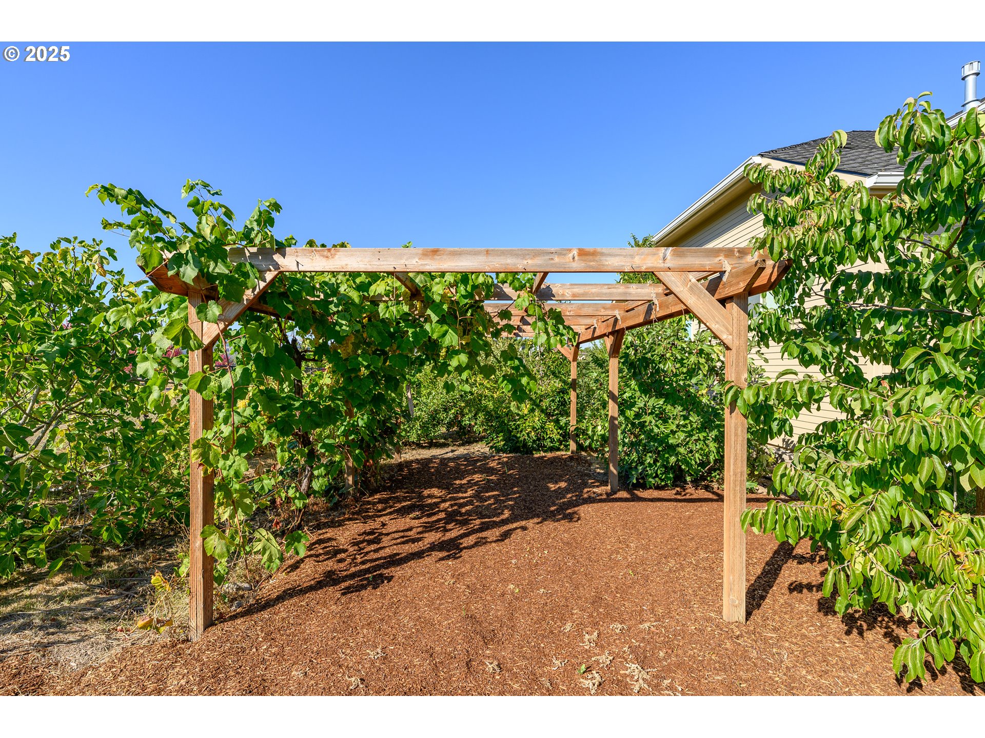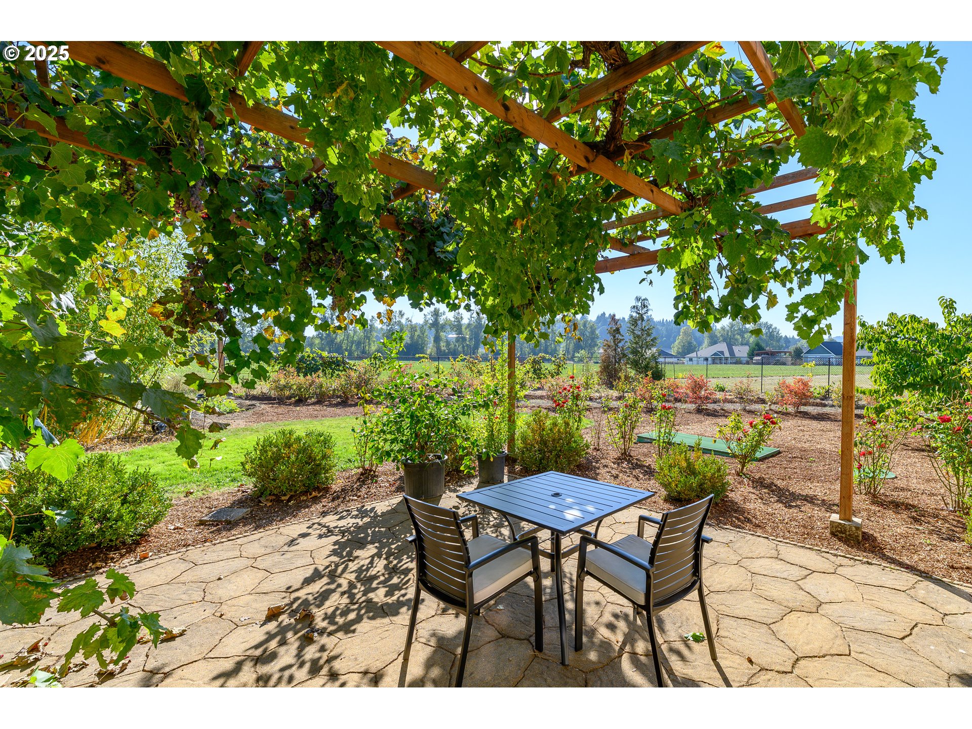 OPEN HOUSE SATURDAY NOVEMBER 29TH FROM 1-3 PM! An elegant and stately home is located in the exclusive West Wind Country Estates. The home sits on a large half-acre lot which overlooks farm fields and has views and the foothills of the Coastal Range. The home was built using top-end materials and finishes, including stunning solid Brazilian hardwood floors on the main level and double insulated walls. The large living room has 18 ft high ceilings, an impressive, cultured stone gas fireplace and a wall of windows with views of the back yard and fields. The kitchen, as part of the great room, features a cooking island with "prep" sink and eating bar. It includes top-of-the-line stainless-steel appliances and a new highly efficient oven. The main suite is on the 1st floor and features an attached bathroom with heated granite tiled flooring, a tiled walk-in shower, double sinks and a jetted tub for a spa like experience. A stunning staircase with elegant banisters leads to the 2nd level with a large landing. Upstairs there are two spacious guest bedrooms, each with an attached bathroom, an additional flex room or office which could be a 4th bedroom with an added closet. A large family or media room is ideal for games, movie night or a game of Ping Pong. There is space for your cars in the large, oversized 3-car garage with an EV-charger and additional parking in the wide driveway. Dreaming of growing your own fruits and vegetables?... Look no further... the fenced, backyard has among others, various fruit trees, blueberries, 7 grape varieties and a large greenhouse for all weather gardening.