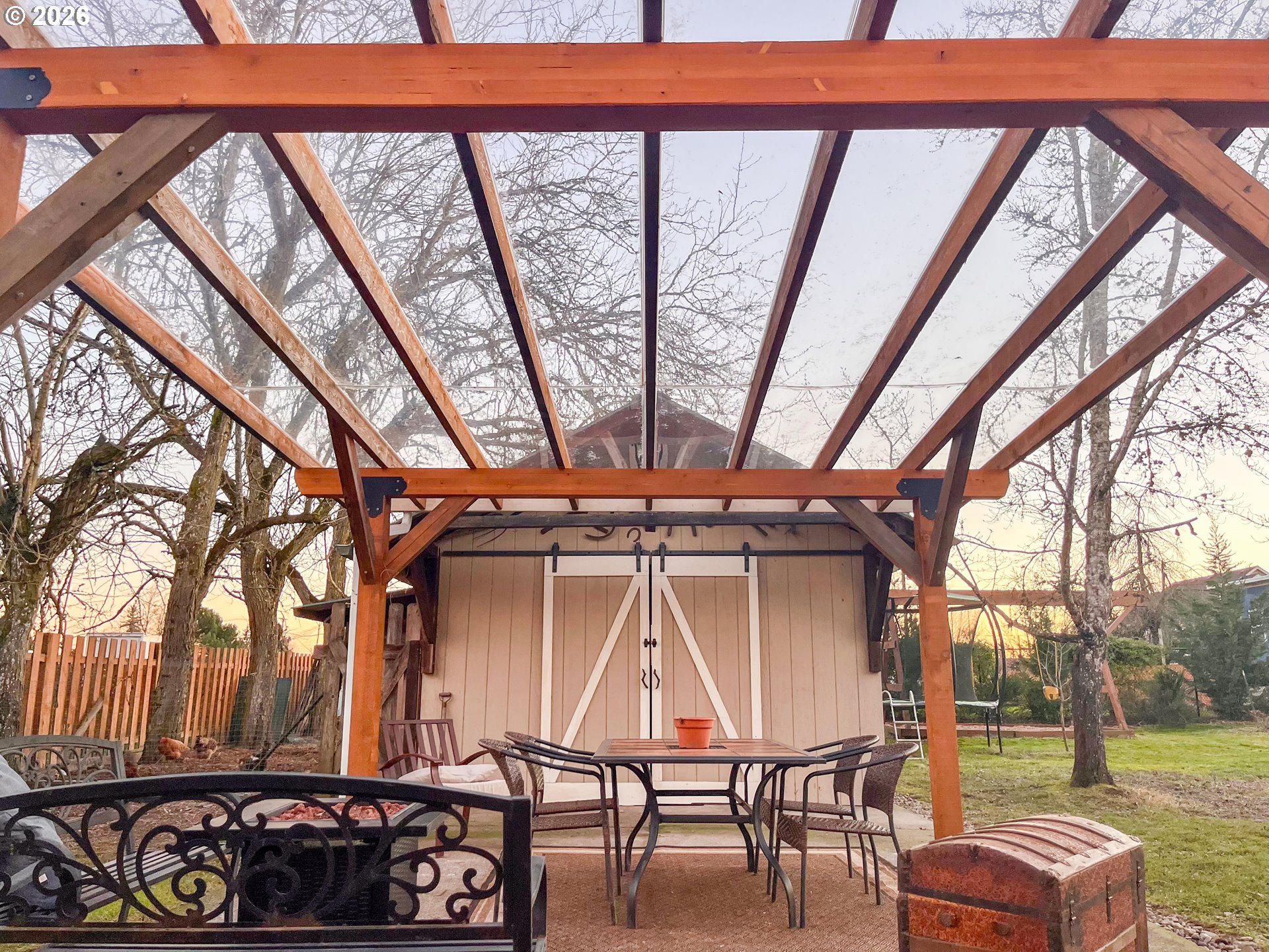 Come see this updated 4 bedroom 2 bath, 1836ft home on .31 curated acres. The property is located on a quiet dead end only steps away from a greenspace walking trail and two blocks from wineries, restaurants and a park. The home has a very open floor plan great for entertaining guests. Enjoy features such as tile showers, an infrared sauna, woodstove and pantry, The bright, large south facing windows look outside to many established fruit trees, nut trees, grape vines, herbs and blueberry bushes and much more producing hundreds of pounds of organically grown food per year. A clear covered timber framed 16x20ft patio, epic swing set, cedar decks, a large chicken coop with an automatic door, raised garden beds, 14x14ft tool shed, wood shed, fully fenced backyard and covered parking make the property a place to thrive. Ample driveway and street parking, an energy efficient ducted heat pump, a 50 year rated roof, new high end LVP flooring, and concrete fiberboard siding are here to last. No HOA. Seller is a licensed real estate broker in the state of Oregon.