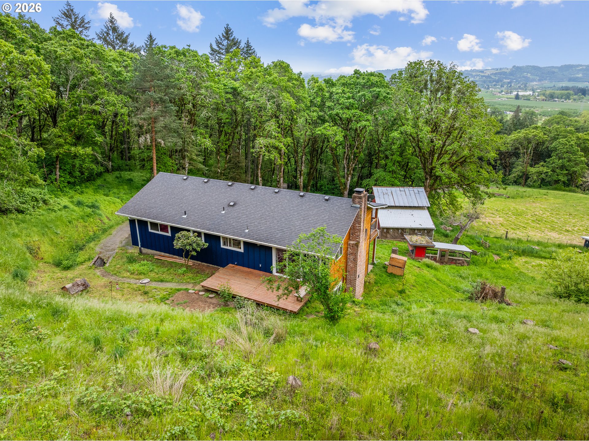 (503) 893-8874Escape to your own slice of Oregon countryside on 4.74 beautiful acres in Newberg—ideal southern sun exposure for vineyards, gardening, or a variety of agricultural uses. This inviting 4-bedroom, 2 bath home offers privacy, space, and a slower pace of life. With wood-burning fireplaces on both levels and a separate entrance, the layout is well-suited for potential multi-generational living, private guest quarters, or extended stays with added independence. Complete with a barn to add versatility for animals, storage, or hobby farming. Bring your animals, plant your dream garden, or simply enjoy quiet mornings with wide-open skies.