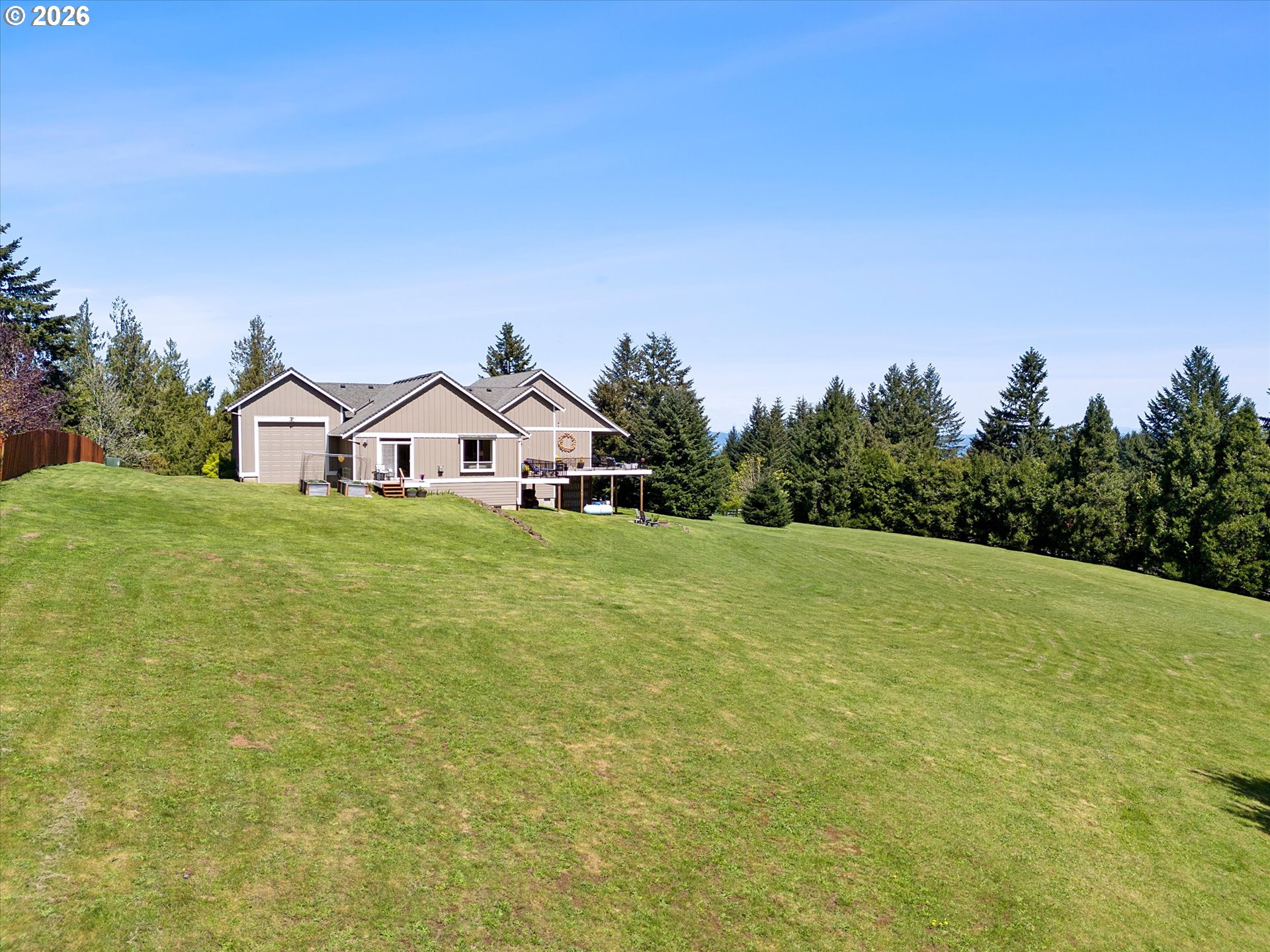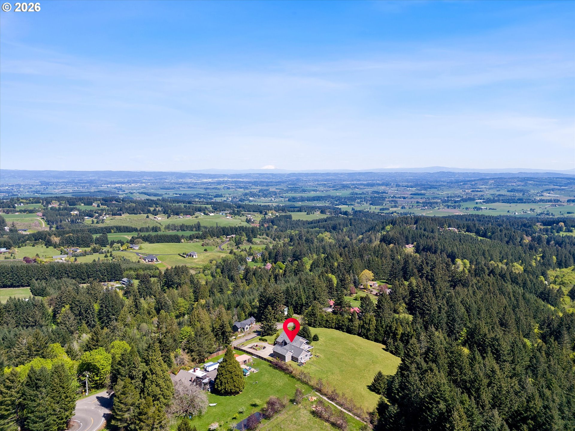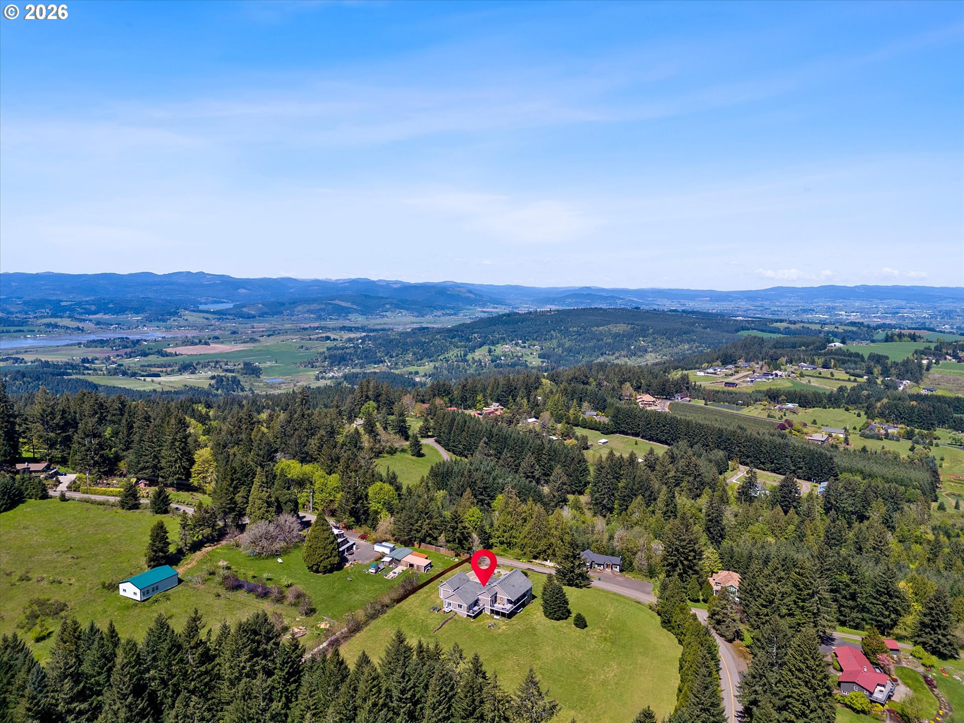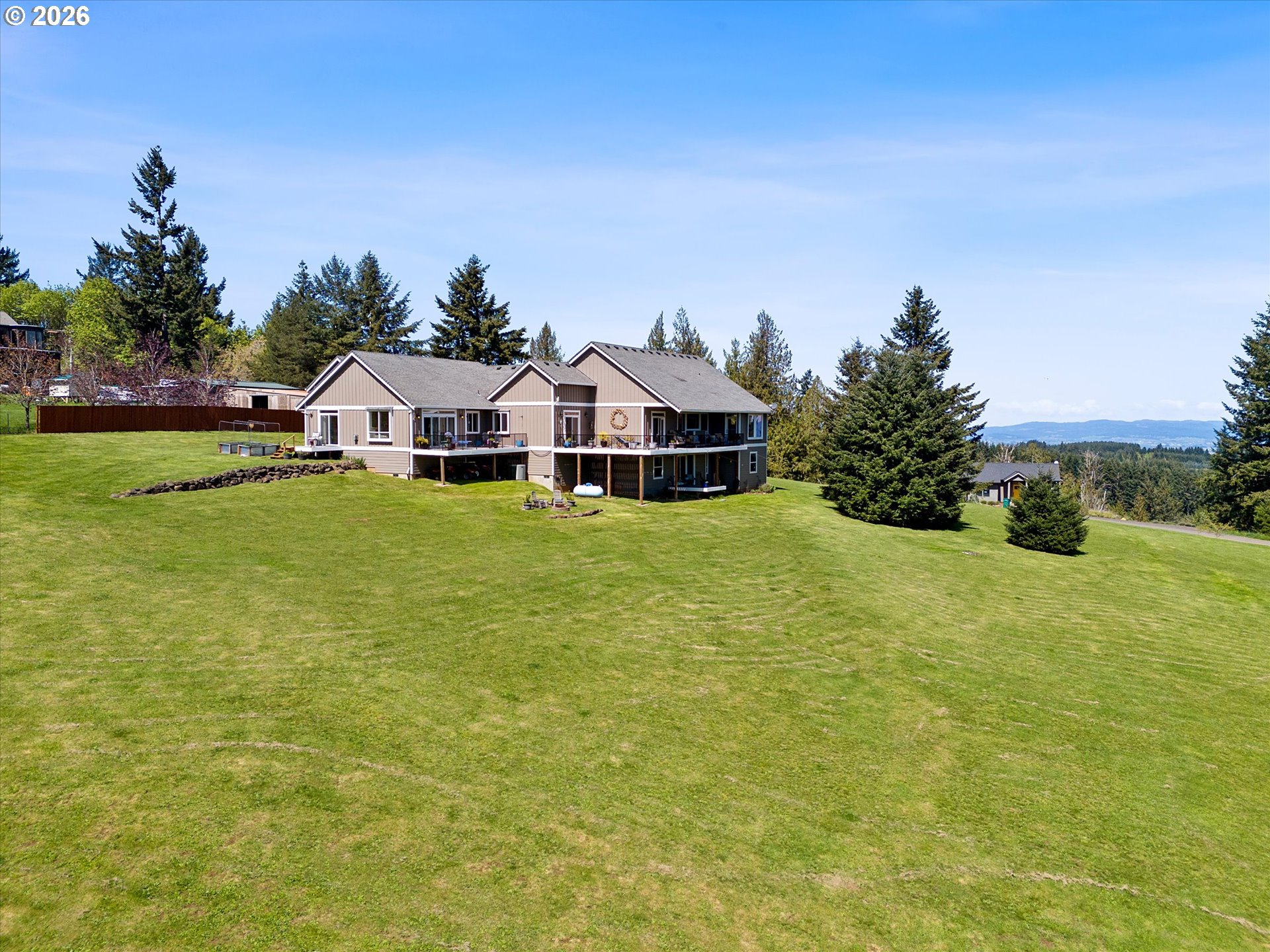 (503) 893-8874Gorgeous custom home on over 4 acres of open, beautiful land, on quiet dead end street has a full size attached ADU, and view of mountains and valley-plus small section of trees. It is a one-of-a-kind property with so many options and potential! Main house has walls of windows, extra high ceilings and vaults, formal living and dining rooms, a gorgeous gourmet kitchen great room and huge master suite, plus 3 large bedrooms and family room in daylight basement! Grand entry opens to spectacular formal living with soaring vaults, gas fireplace surrounded by windows, arches and columns. Formal dining room is open to living room has wall of windows, high ceilings, wainscotting & slider to huge deck. Gourmet kitchen is partly open to living & dining room, has huge granite cook island with eating bar, beautiful wood cabinets, wine bar, large pantry & sliding doors that go out to deck. Master suite is on the main floor and has soaring vaults, beautiful bathroom with jetted tub, shower and double sinks plus a huge walk-in closet! Large laundry room is also on the main floor with built ins and sink. The ADU is completely separate but attached, a perfect home for parents, live-in care giver, grown kids,or potentially a rental (check code)! It has a large great room with really nice kitchen, living room with gas fireplace, and slider that goes out to deck and yard. The ADU has its own full kitchen, a huge bedroom with gorgeous bathroom and walk-in closet! Oversize garage is also on the main level, and can fit 4 cars, or two cars and an RV or boat and trailer with room left over! It has an EV car charger, and an extra generator panel. The daylight basement has a big family room, 3 large bedrooms and a bathroom with slider to its own deck. The land is so awesome! Deer frequent the back yard and there are vineyards at the end of the road and all around the area. Most of the cleared acreage is covered by sprinklers. There is also a small area of trees at the far side of land.