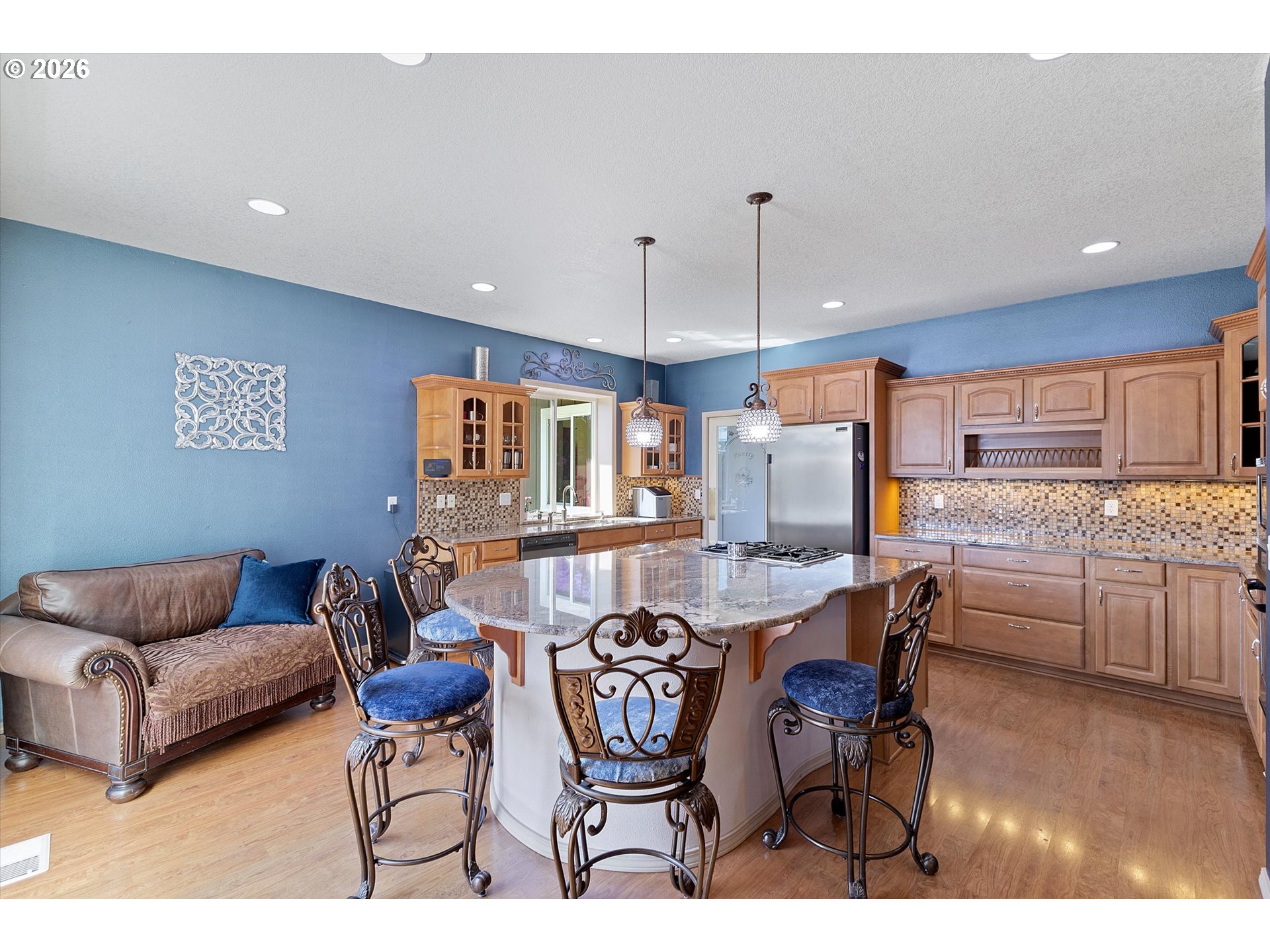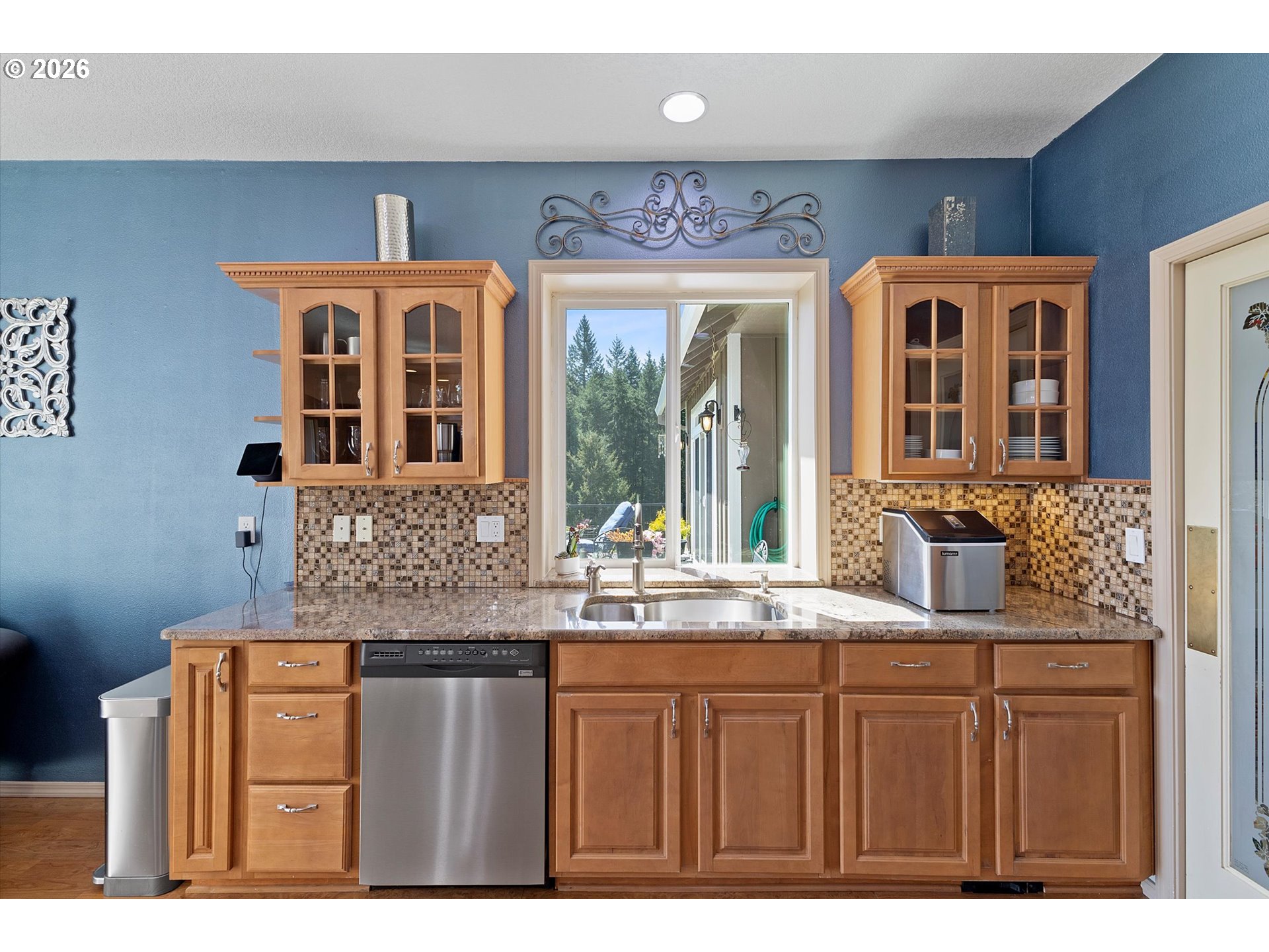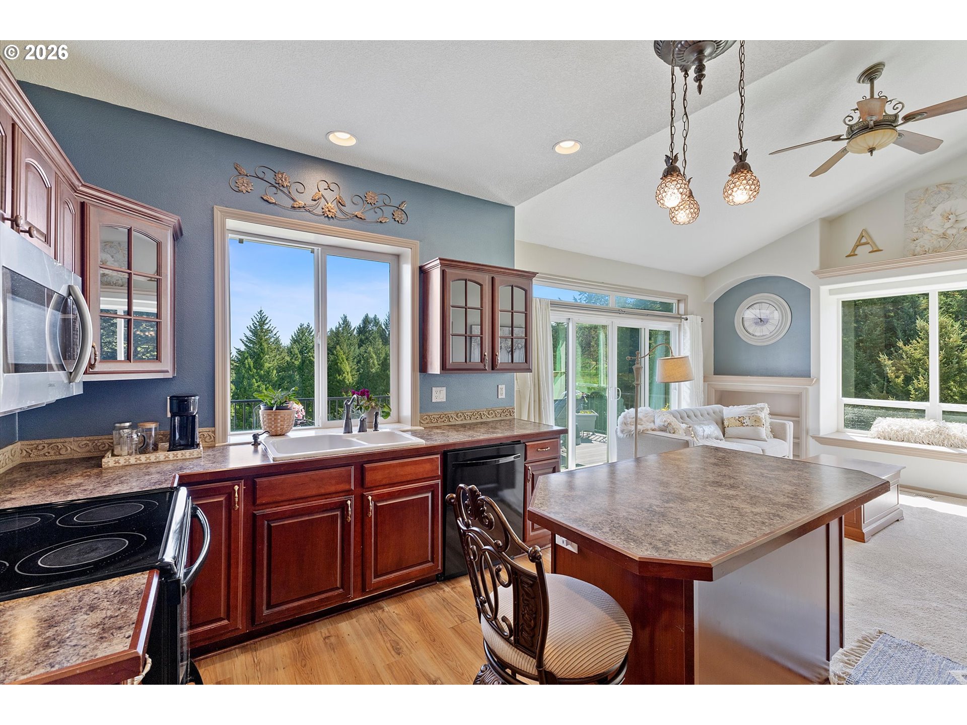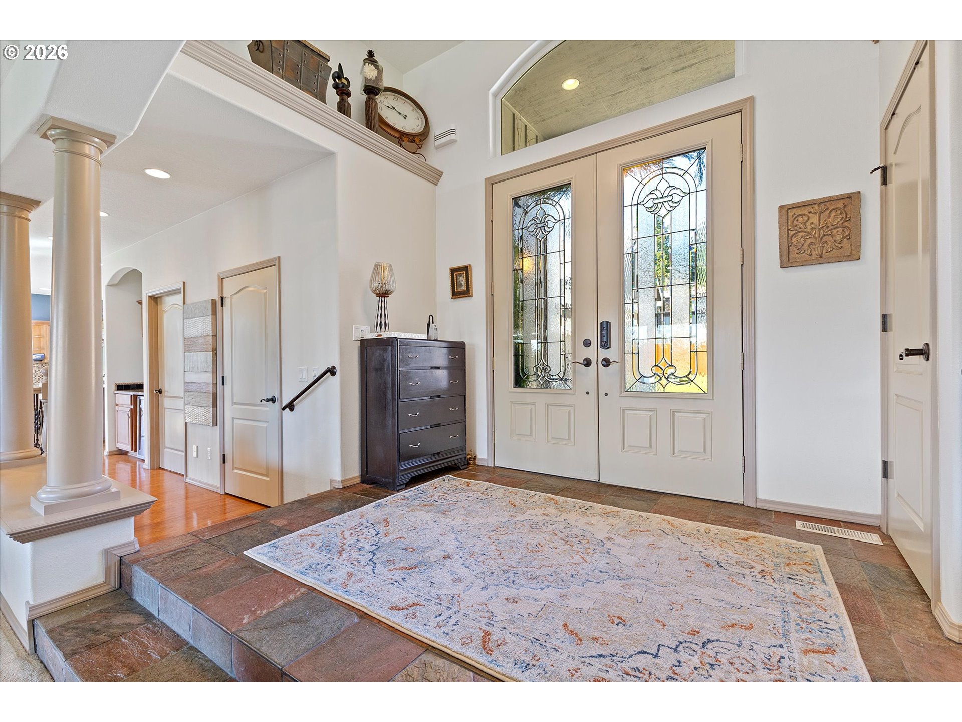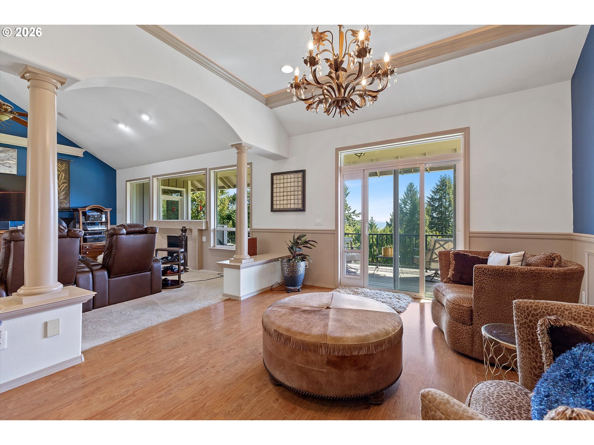 (503) 893-8874Gorgeous custom home on over 4 acres of open, beautiful land, on quiet dead end street has a full size attached ADU, and view of mountains and valley-plus small section of trees. It is a one-of-a-kind property with so many options and potential! Main house has walls of windows, extra high ceilings and vaults, formal living and dining rooms, a gorgeous gourmet kitchen great room and huge master suite, plus 3 large bedrooms and family room in daylight basement! Grand entry opens to spectacular formal living with soaring vaults, gas fireplace surrounded by windows, arches and columns. Formal dining room is open to living room has wall of windows, high ceilings, wainscotting & slider to huge deck. Gourmet kitchen is partly open to living & dining room, has huge granite cook island with eating bar, beautiful wood cabinets, wine bar, large pantry & sliding doors that go out to deck. Master suite is on the main floor and has soaring vaults, beautiful bathroom with jetted tub, shower and double sinks plus a huge walk-in closet! Large laundry room is also on the main floor with built ins and sink. The ADU is completely separate but attached, a perfect home for parents, live-in care giver, grown kids,or potentially a rental (check code)! It has a large great room with really nice kitchen, living room with gas fireplace, and slider that goes out to deck and yard. The ADU has its own full kitchen, a huge bedroom with gorgeous bathroom and walk-in closet! Oversize garage is also on the main level, and can fit 4 cars, or two cars and an RV or boat and trailer with room left over! It has an EV car charger, and an extra generator panel. The daylight basement has a big family room, 3 large bedrooms and a bathroom with slider to its own deck. The land is so awesome! Deer frequent the back yard and there are vineyards at the end of the road and all around the area. Most of the cleared acreage is covered by sprinklers. There is also a small area of trees at the far side of land.