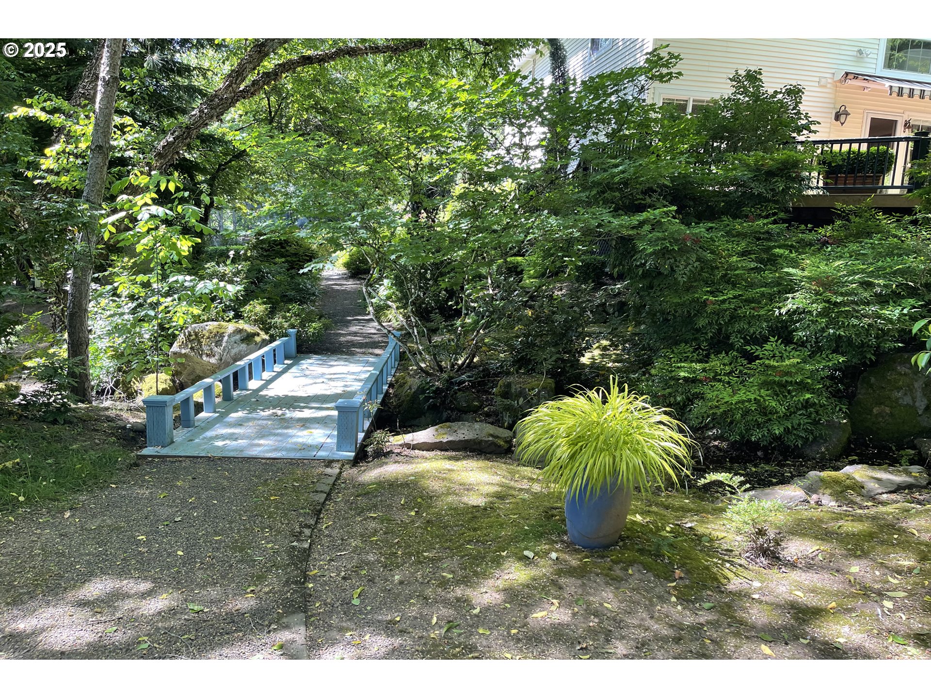 (503) 893-8874Builder's own custom beauty placed like a gem in a perfectly curated setting: 1.16-acre of scattered deciduous and evergreen trees, close-cropped hedges and flowering perennials crisscrossed by garden paths and bisected by a seasonal creek--with a footbridge, of course, and accented with a gazebo, and all close in to town. Inside: Open concept floorplan with high ceilings, gas fireplace, automated blinds, central vacuum, rich cherrywood cabinets, built-in features and hand-painted Italian tilework. In the kitchen, newer stainless appliances, cook's island with ceramic range and breakfast bar, yards of counterspace and a built-in buffet and wine rack. A front-of-the house office is vaulted, with plenty of natural window light for work...or, practicing your putting. Upstairs: Three spacious bedrooms including a full primary suite with double vanity, walk-in shower and walk-in closet. Need storage? The garage is 640 sf!!