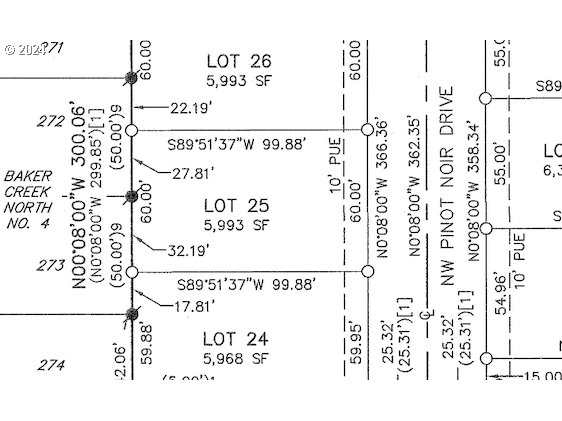 Lot 25 is 5993 sq ft. in a Brand New 108 Lot McMinnville Subdivision. See picture of lot plat map for dimensions. Lots ranging from 4,500 sq ft to 14,000 sq ft. Bring your own Builder. McMinnville Water and Light Utilities, Oak Ridge Meadows Amenities include a Nature Path, Views of Baker Creek, Wetlands and a Neighborhood Park with play structure. Listing Agent is a Member of Seller.