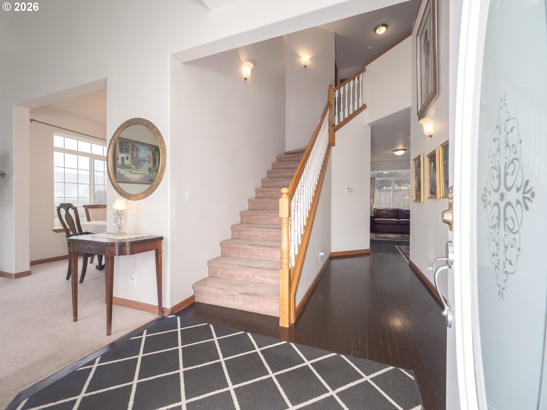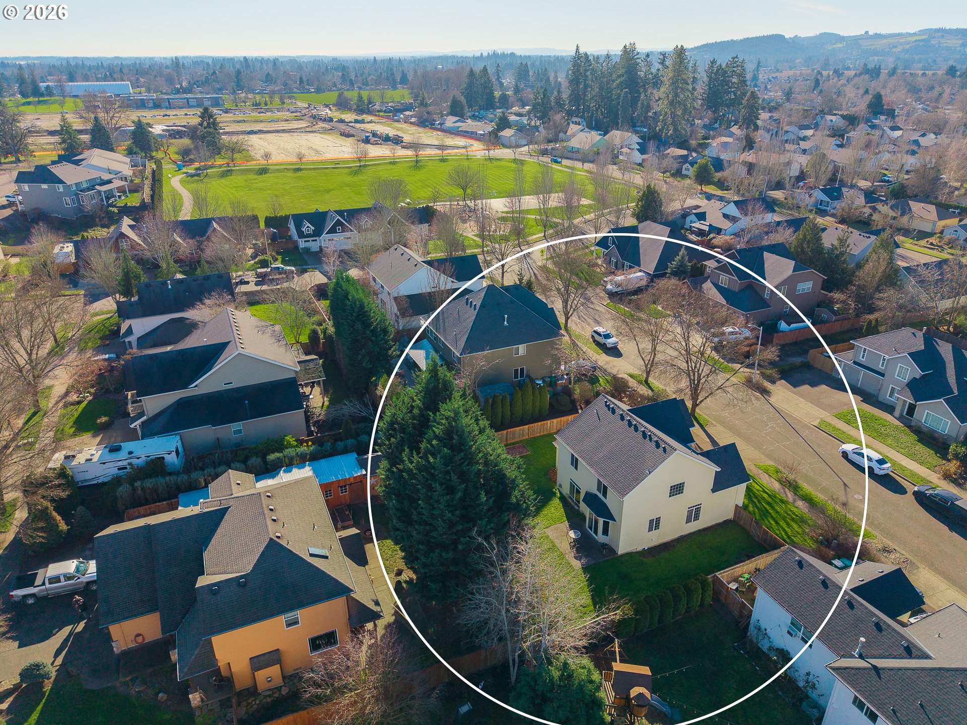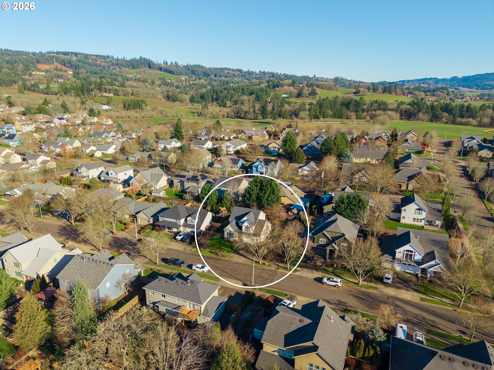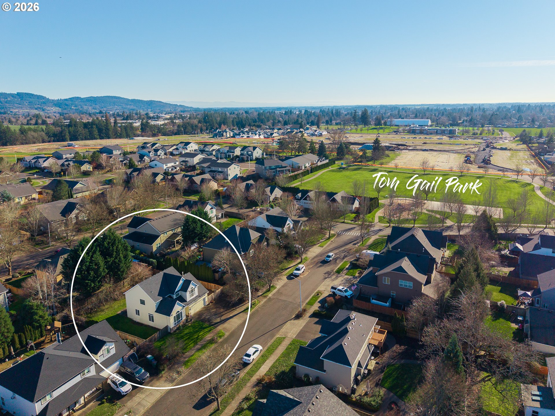Light filled, functional, and full of charm, this home checks all the boxes. From the moment you arrive, the curb appeal shines, complete with RV parking behind a wide swinging gate and a brand new roof that adds peace of mind. Step inside to a bright front living room with vaulted ceilings and a dramatic picture window that floods the space with natural light. The heart of the home features a beautifully updated kitchen with new granite countertops, newer stainless steel appliances, abundant cabinetry, and a generous island perfect for meal prep, homework, and gathering with friends. The kitchen flows seamlessly into the family room, where a cozy gas fireplace sets the scene for relaxed evenings. A sunny breakfast nook opens through sliding doors to the patio and fenced backyard, complete with raised garden beds, ideal for summer dinners and weekend projects. A main level 4th bedroom offers flexibility as a home office, playroom, or guest retreat. Upstairs, you will find three additional bedrooms, a convenient laundry room, and a primary suite with a walk-in-closet, dual sink vanity, a walk in shower, soaking tub, and peaceful views of Chehalem Mountain. All of this in a desirable neighborhood near Tom Gail Park. This is the kind of home that feels good the moment you walk in. Call today to schedule your private showing.